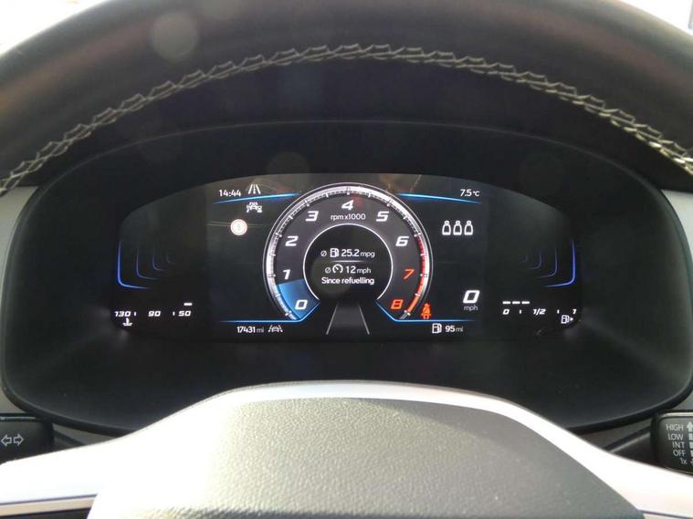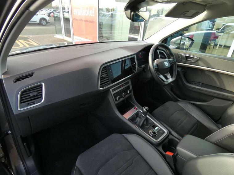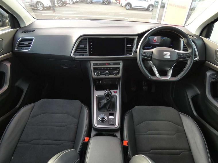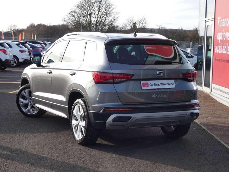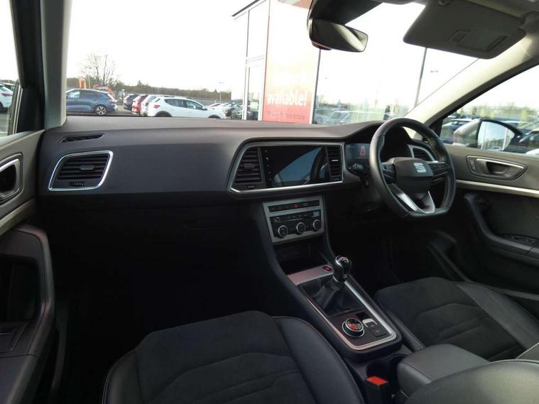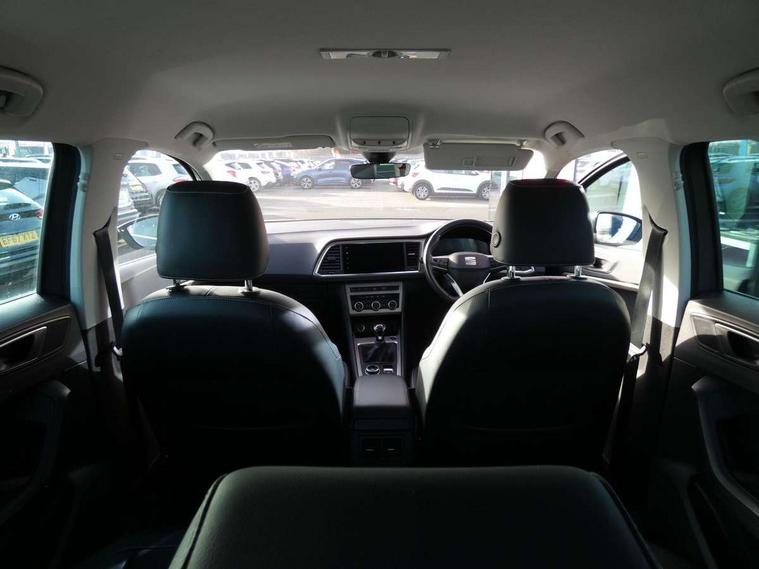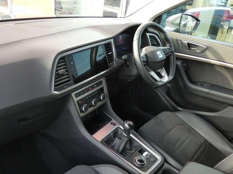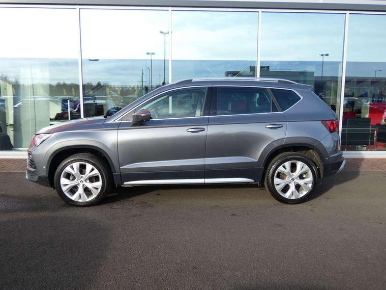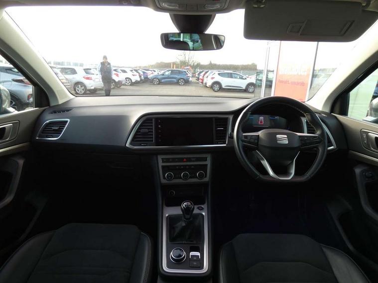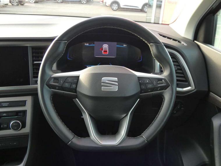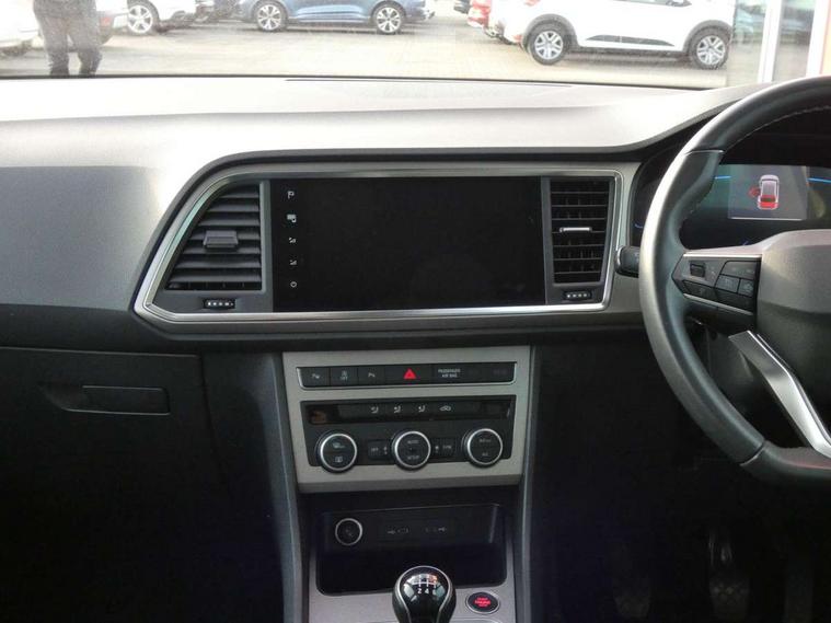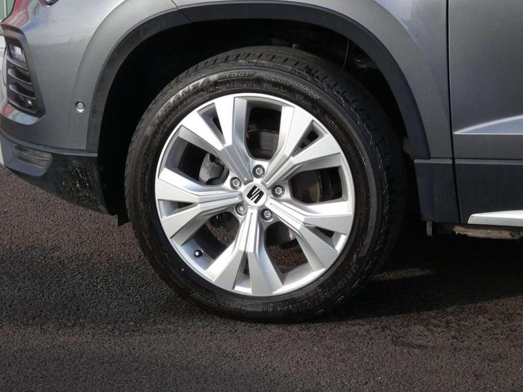 8" Digital cockpit, Colour multi-function on board computer display, E-call, Outside temperature gauge, Progressive power assisted steering, Rear view camera, SEAT drive profile with driving experience button - Normal, Sport, Eco and Individual mode, steering and throttle response, Self parking functionality (includes front and rear parking sensors), Start/stop system, Tailgate, Trip computer, Wireless full link smartphone integration, Wireless phone charger, Steering wheel mounted audio/phone controls, Black wheel arch surrounds, Body colour bumpers, Chrome front grille frame, Chrome roof rails, Chrome side window trim, Climacoat windscreen, Dark tinted rear windows, Daytime running lights, Door mirrors with welcome light silhouette, Dynamic headlight range control with self adjusting whilst driving, Electric adjustable/heated/folding door mirrors, Front and rear electric windows, Front grille hot stamping, Full LED headlamps with lens and LED front fog lamps with cornering function, Illuminated aluminium front door sill, LED 3rd brake light, LED rear tail lights with dynamic indicators, Rear exhaust tailpipe, Rear fog lights, Rear side wing doors, Rear wash/wipe, Reflex silver side mouldings, Variable front intermittent wipers, 12V socket in front, 3 seat bench in 2nd row, 60/40 split folding rear seat, Dinamica upholstery with front comfort seats, Drawer under right front seat, Dual zone climate control, Front and rear head restraints, Front centre armrest, Front seat back storage pockets, Height adjustable driver and passenger seat with lumbar adjustment, ISOFIX points in outer rear seats with top tether anchorage points, Leather sports steering wheel and gear knob, Rear armrest and easy back seat release mechanism from boot, Single front passenger seat, Convenience pack - Ateca, Interior lighting pack - Ateca, Navigation system pack with DAB - Ateca, Safety and driving pack (M) - Ateca, Safety and driving pack with attention and drowsiness assist - Ateca, 3x3 point rear seatbelts, ABS, Traction control system (TCS), Electronic stability control (ESC) and Electronic differential lock system (XDS), Airbags - Driver and front passenger airbag with deactivation, front side, two curtain and driver's knee airbags, Electric parking brake with auto hold function, Front and rear seatbelt reminder, Hill hold control, Manual rear child locks, Single tone horn, Tiredness recognition system, Tyre pressure monitoring system, Alarm, Keyless entry, Locking wheel bolts, Remote central locking, Chrome interior detailing, 18" Brillaint silver alloy wheels,