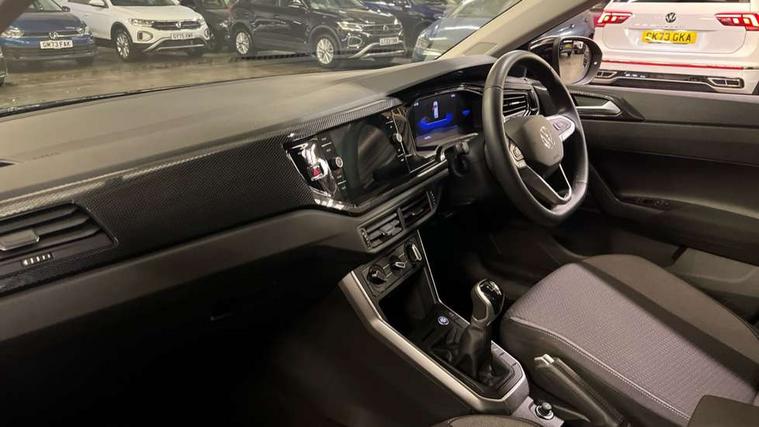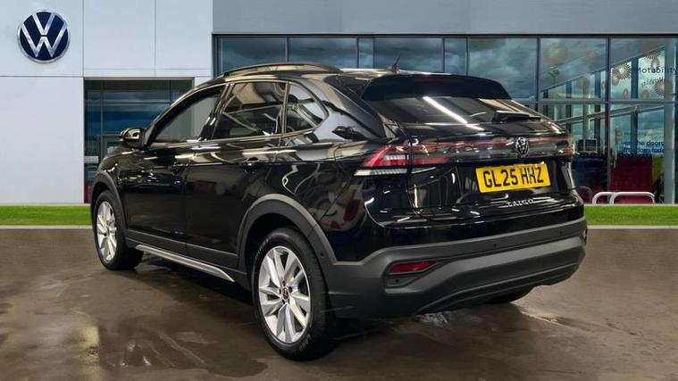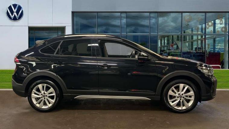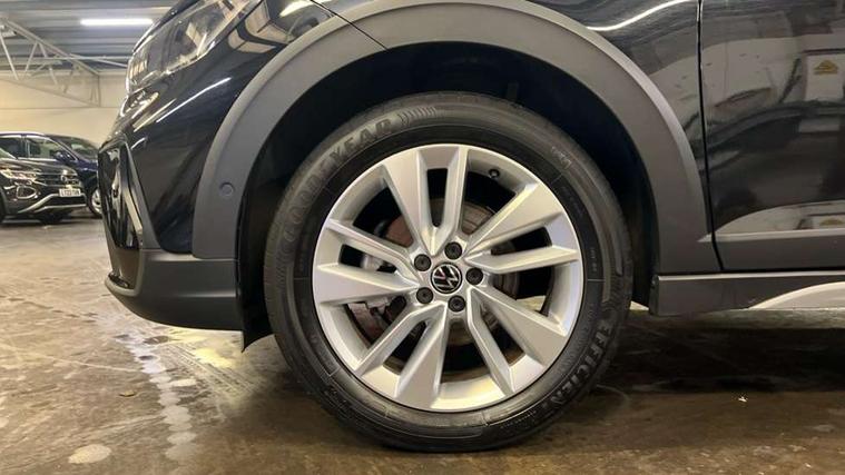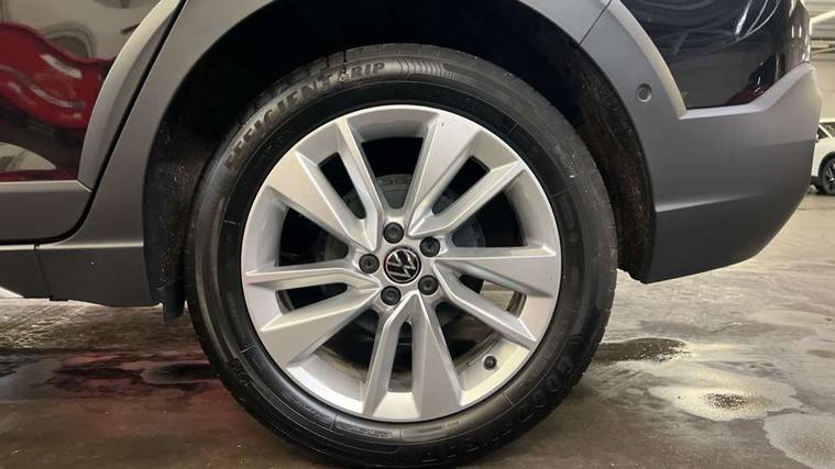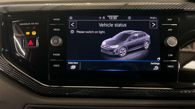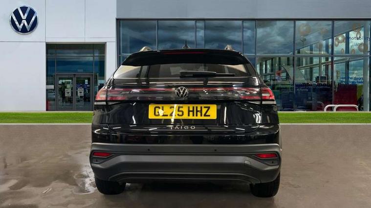 Advanced driver attention and drowsiness monitor, Dynamic road sign display, e-Call (emergency call), Power Steering, Predictive adaptive cruise control, Rear view camera, Travel assist including emergency assist, Washer fluid level indicator, Wireless Charging including Bluetooth, Start-stop system with battery regeneration (recuperation - energy recovery during braking), WeConnect plus, Ambient lighting with logo projection, Aspherical driver's exterior mirror, Body coloured bumpers, Body coloured exterior mirror housings and door handles, Electric windows, External USB type C socket and charging sockets, Heat insulating glass windscreen, LED rear combination lamp, LED third brake light, Left convex exterior mirror, Power folding adjustable/heated exterior mirrors and front passenger exterior mirror lowering function, Rear fog light on one side, reversing light on both sides, Rear side wing doors, Rear wash/wipe with intermittent wipe setting, Side windows in heat-insulating glass, from B-pillar and rear window dark tinted, 'Slash/ Austin' Cloth upholstery, 12V socket in centre console, 2 front reading lights, 3 rear head restraints, 3 seat bench in 2nd row, Black carpets, Ceramique headliner, Child seat anchor for child seat system i-Size, 2x top tether and child seat anchor in front on front passenger side, Door and side trim panels in titan black, Driver and front passenger seat height adjustment, Front centre armrest, Handbrake lever handle in leather, Height and reach adjustable steering wheel, Leather trimmed gear knob, Leather wrapped multifunction steering wheel, Luggage compartment floor, Luggage compartment light, Lumbar support for driver's and front passengers seat, Seat covers in titanium black, Single front passenger seat, Split folding backrest with centre armrest and unsplit rear seat bench, Storage compartment under front seats, Sun visors with illuminated vanity mirrors, Titanium black instrument panel, Chrome Package - Taigo, Drivers assistance package - Taigo, Light and sight pack - Taigo, 2 x 3-point seatbelts/outer rear seats with ECE label, 3-point seat belts in front with pretensioner and height adjustment, 3-point seatbelt for centre rear seat, Driver and front passenger airbag with front passenger airbag deactivation, Driver and front passenger safety-optimised head restraints, Electronic stability control, Extended and predictive pedestrian/ cyclist protection, Front and rear disc brakes, Front curtain and side airbags with center airbag, Hill start assist, Manual rear child locks, Single tone horn, Tyre pressure loss indicator, Anti-theft alarm system with interior monitoring, backup horn, and towing protection, Keyless locking and starting system keyless access with safelock, Black (slush) Dashboard, Lava stone black gloss/matt decorative inserts in dash and front door panels, Low rolling resistance tyres,
