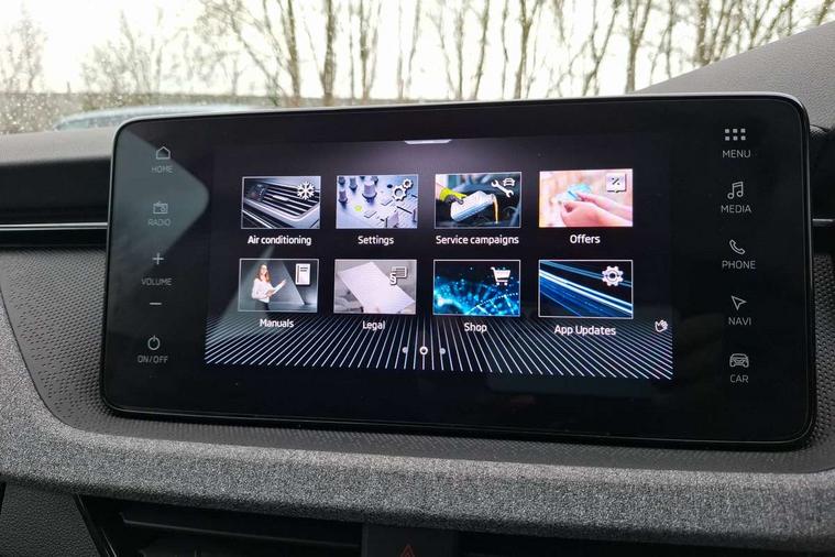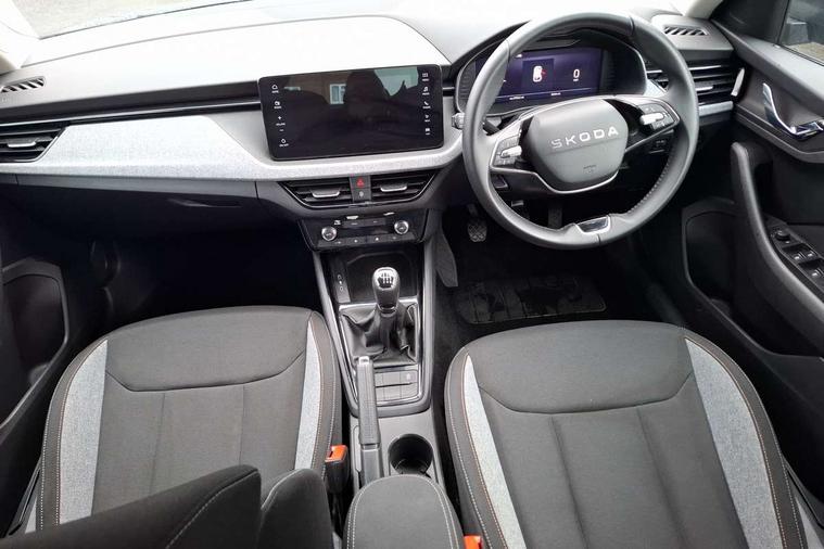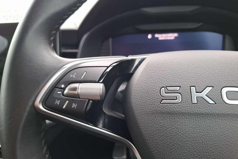 Advanced driver attention and drowsiness monitor, Bluetooth, e-Call (emergency call), Front assist system, PAS, Rear parking sensors, Rear view camera, Speed limiter, Tailgate, Traffic sign recognition, Virtual Cockpit - 10.25" digital display, Voice control system, Wireless smartlink, 4 USB C ports, 8 Speakers, 9.2" Skoda navigation display, DAB radio, Auto dimming rear view mirror, Automatic headlamp activation with Coming home and Leaving home feature, Automatic high/low beam, Body colour bumpers, Body colour door mirrors and handles, Chrome moulding around grille, Front and rear electric windows, Full LED headlights, Heated rear window, LED 3rd brake light, LED brake lights, LED daytime running lights, LED front turning lights, LED high beam, LED low beam, LED taillights, Rear LED fog light, Rear side wing doors, Rear wiper, Tinted windows, Unique dark chrome design logo on alloy wheels, 12V socket in luggage compartment, 3 seat bench in 2nd row, Black / Grey armrest stitching, Black hotstamping, Cargo elements, Chrome inner door handles, Door inserts in satin black, Driver and passenger sun visors with vanity mirror, Dual zone climate control, Front and rear roof lights, Front centre armrest, Front head restraints, Glasses storage in roof liner, Height adjustable driver seat, Height adjustable passenger seat, Ice scraper, Illuminated glove compartment, Inner circulation control with pollen filter, ISOFIX for front passenger seat, Isofix preparation for back seats, Leather gearknob and handbrake lever, Loft cloth upholstery, Luggage net under rear parcel shelf, Manual lumbar support for front seats, Net package and top tether hooks in boot space, Pearl grey ceiling, Pocket on the back of both front seats, incl. mobile phone pockets, Single front passenger seat, Skoda lettering on steering wheel, Textile floor mats, Third rear headrest, Ticket holder, Top tether for front passenger seat, Umbrella in driver's door, 3x3 point rear seatbelts, ABS, Child locks, Curtain airbags and front side airbags, Disc brakes, Driver and front passenger airbags, ESP, Hill hold control, Manual leather parking brake, One tone horn, Passenger airbag switch off function, Seatbelt reminder for driver and front passenger, Tyre pressure monitoring system, Anti theft alarm system with interior monitoring, backup horn and towing protection, Anti-theft wheel bolts, Remote central locking with 2 remote folding keys, SAFE function for remote central locking, Decord pad, door inserts Kota uni,