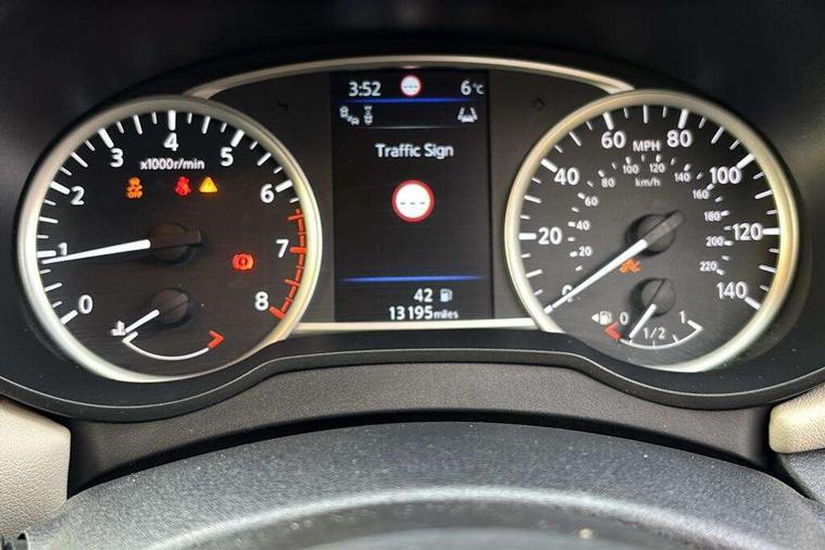 360 degree around view monitor, Adjustable speed limiter, Bluetooth system, Cruise control, Lane departure prevention, Lane departure warning system, Nissan Connect touchscreen navigation and Entertainment system, Outside temperature gauge, Power assist steering, Rear parking sensors, Rear view camera, Smartphone integration with Apple CarPlay and Android auto, Stop/start system, Traffic sign recognition, Trip computer, Audio system with MP3, BOSE sound system with 6 speakers, DAB Digital radio, USB/iPod connection, 4 pocket halogen headlights with signature finisher, Antenna, Auto dimming rear view mirror, Automatic activation of hazard warning lights, Automatic headlights, Body colour front door handles, Body coloured bumpers, Body coloured door mirrors, Concealed rear door handles, Electric folding door mirrors, Front and rear electric windows, Front fog lights, Heated door mirrors, High beam assist, High mounted stop lamp, Jacknife key type x1, LED daytime running lights, LED Headlights, Rain sensor windscreen wipers, Rear privacy glass, Rear roof spoiler, Rear wiper with reverse link, 12V power point front, 2 height adjustable rear headrests, 3 cupholders, 60/40 split folding rear seat, Automatic air conditioning, Boot compartment cover, Boot light, Chrome interior door handles, Driver's seat manual height adjust, Driver/passenger sunvisors and vanity mirrors, Front and rear door pockets with bottle holders, Front console storage box, Gear shift indicator, Height adjustable front headrests with satin sliver decoration, Illuminated electric window switch, Isofix front passenger and rear seat preparation, Leather wrapped gear shift knob, Leather wrapped parking break, Leather wrapped steering wheel, LED ambient lighting, Map reading lamp, Parcel shelf, Passenger seat back pocket, Reclining front seats, Synthetic leather front door pads, Synthetic leather instrumental panel inserts, ABS+EBD+Brake assist, Crash sensor, Driver/Front Passenger airbags, Front and rear curtain airbags, Front side airbags, Height adjustable front seatbelts with pre-tensioners and load limiters, Hill start assist, Intelligent emergency braking with pedestrian recognition, Manual passenger airbag deactivation function, Rear seatbelts with pre-tensioners and load limiters, Seatbelt warning, Three 3 point rear seatbelts, Tyre pressure monitoring system, Warning triangle and first aid kit, Anti-theft immobiliser, Intelligent key with push button ignition, Remote central locking, 17" Diamond cut alloy wheels, Tyre repair kit,
