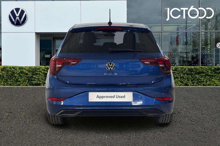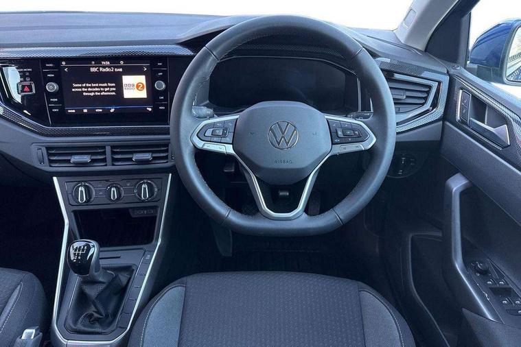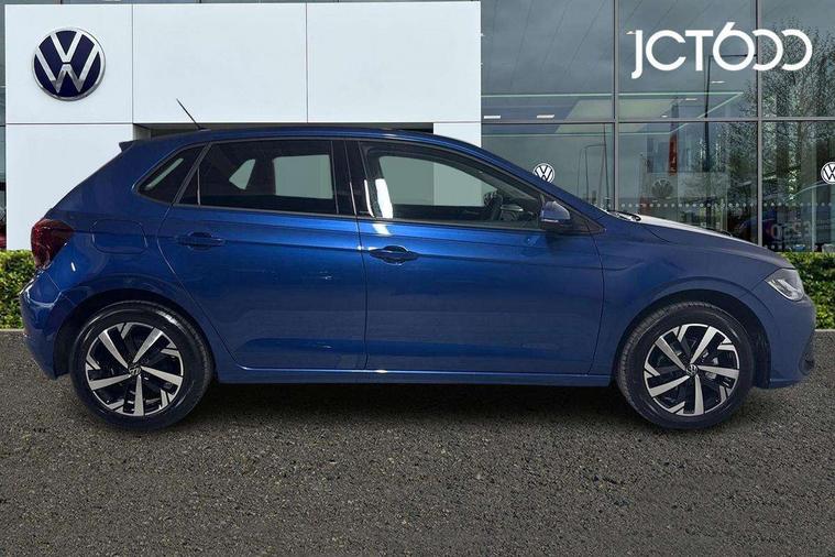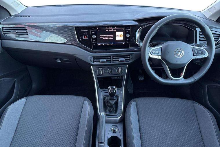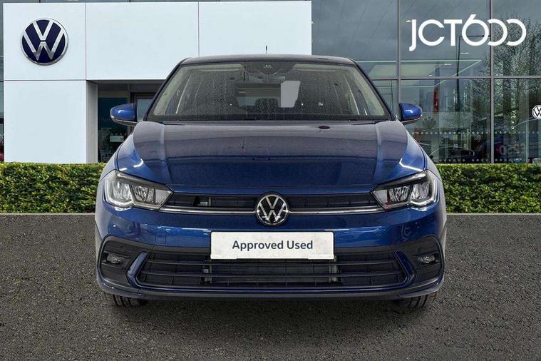 Adaptive cruise control without follow-to-stop and speed limiter, Advanced driver attention and drowsiness monitor, Bluetooth mobile phone interface, Dynamic road sign display, Emergency call service, Multifunction front facing camera for distance control, Power assisted speed sensitive steering, Preparation for navigation system with media and internet package, Preparation for We connect and We connect plus, Rear view camera, Speedo and rev counter, electronic odometer, trip, service interval display and exterior temperature gauge, Standard rear axle, Travel Assist - Lane keeping system and traffic jam assist, Travel assist including emergency assist, Trip computer, Warning signal and warning light for front and rear seatbelts not fastened, Washer fluid level indicator, Wireless app connect, Front wheel drive, Rear shock absorpion, Start-stop system with battery regeneration (recuperation - energy recovery during braking), DAB Digital radio, Diversity antenna for FM reception, Automatic dimming interior rear view mirror, Automatic headlight control with LED separate daytime running lights with coming/leaving home function, Body colour bumpers with chrome inserts, Body colour door handles, Body colour door mirrors, Electric front windows, Engine badge deletion, Headlight range adjustment, Heat insulating and laminated safety glass windshield, LED Headlights, LED rear combination lamps, Power folding adjustable/heated exterior mirrors and front passenger exterior mirror lowering function, Rain sensor, Rear electric windows, Rear fog light, Rear side wing doors, Rear tinted glass from B-pillar backwards approx 65% tinted, Rear windscreen washer and wiper with interval delay, Third brake light, 12V power socket in centre console, 2 front and 2 rear reading lights with switch off delay and dimmer, 2 USB-C ports in the front, 2 USB-C charging sockets on the center console in the rear, 3 rear head restraints, 60/40 split folding rear seat and rear seat bench not split, Ceramique roof lining, Chrome plated radiator grille inserts, air vent surrounds and light switch surrounds, Door and side trim panel, Driver and front passenger seat height adjustment, Driver/passenger sunvisors with illuminated vanity mirrors, Front centre armrest, Front seat backrest storage pockets, Front standard seats, Handbrake lever handle in leather, Hartley/Thomas cloth upholstery, Headliner in recycled material, Isofix child seat preparation easy-fit (for two outer rear seats, and front passenger seat) compatible with I-size, Leather trimmed gear knob, Luggage compartment cover, Luggage compartment lighting, Removable luggage compartment floor, Single front passenger seat, Standard climatic zones, Standard pedal cluster, Three spoke leather wrapped multifunction steering wheel, Light and vision pack - Polo, 3 point height adj front seatbelts + pretensioners, 3 point seat belt for centre rear seat, 3 point seatbelts, outer rear with ECE lable, ABS, Driver and front passenger airbag with front passenger airbag deactivation, Drivers and front passengers safety optimised head restraints, ESC (Electronic stability control) + EDL (Electronic Differntial lock) and ASR (Traction control), Extended and predictive pedestrian/ cyclist protection, Front assist with autonomous emergency braking (for Adaptive Cruise Control ACC up to 130 mph), Front curtain and side airbags with center airbag, Front disc brakes, Hill hold control, Manual child lock in rear doors, Rear drum brakes, Single tone horn, Tyre pressure loss indicator, Alarm with interior protection, Anti-theft alarm system with interior monitoring, backup horn, and towing protection, Anti-theft wheel bolts, Electronic engine immobiliser, Lava stone black gloss/matt decorative inserts in dash and front door panels, 16" Torsby alloy wheels, Low rolling resistance tyres,
