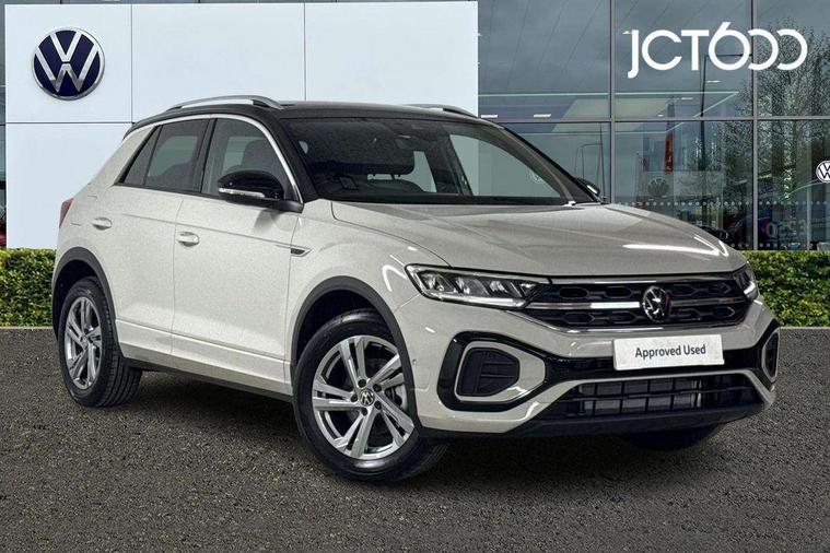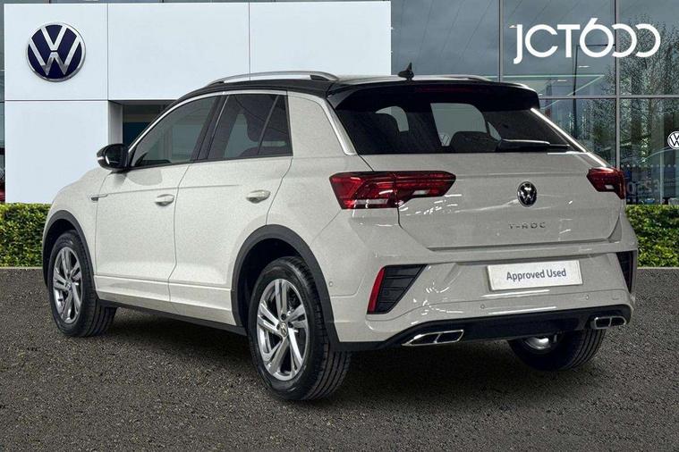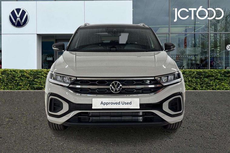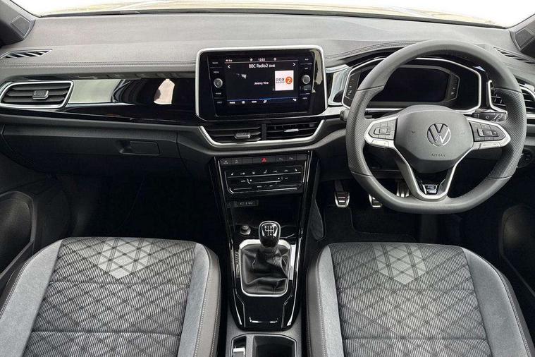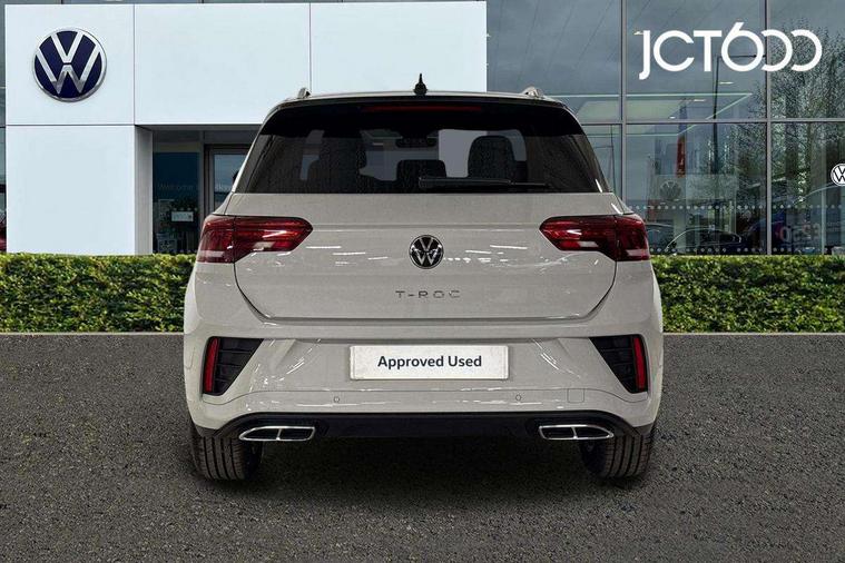 10.25" Digital cockpit pro, Advanced driver attention and drowsiness monitor, Emergency call service, Lane keeping system Lane Assist, Mobile phone interface, Modified key software - reduce switch off time for key status change to Long no motion, Online services, Park assist including front and rear parking sensors, Service interval indicator, Tailgate/trunk lid release from outside, Think blue trainer driver tips and journey analysis, Warning sound and light for front seatbelts unfastened, Wireless app connect, Battery regeneration during braking, Start/stop function with battery regeneration, DAB Digital radio, Diversity antenna for FM reception, Front and rear 6 speakers, Music playback - MP3, WMA and AAC files, Premium USB cable in choice of either Apple or Android smartphone compatibility, SD card slot, Simultaneous pairing of 2 compatible mobile devices, Title and cover art display, We Connect and We Connect Plus functionality, Auto dimming interior rear view mirror, Automatic hazard lights activation under emergency braking, Automatic headlight control with LED separate daytime running lights with coming/leaving home function, Body coloured exterior mirror housings and door handles, Electrically adjustable and heated door mirrors, Extended roof spoiler, Exterior mirrors aspherical on driver side, convex on front passenger side, External USB type C socket and charging sockets, Front windscreen wiper with intermittent wipe and 4 position delay, Heated rear window, LED 3rd brake light, LED rear combination lamps, LED rear number plate lights, Power windows with comfort operation and circuit breaker, Privacy glass for rear side windows and rear window, R-Line design body coloured bumpers, Rain sensor, Rear exhaust tailpipe, Rear fog light on one side and reversing lights on both sides, Rear side wing doors, Rear wash/wipe with intermittent wipe setting, Remote electrically foldable door mirrors, puddle lights and reverse activated passenger's door mirror, 12V power socket in centre console, 3 rear head restraints, 3 seat bench in 2nd row, 4 load lashing points in luggage compartment, Air care climatronic air conditoning system with active combination filter and 2-zone temperature control, Black roof lining, Chrome plated decorative trims, Chrome plated radiator grille inserts, air vent surrounds and light switch surrounds, Door and side trim panel with leatherette insert, Front + rear carpet mats, Front centre armrest, Front cupholders x 2, Front footwell illumination, Front reading light, Front scuff plates with R Line logo, Front seat back storage pockets, Glove compartment door with light, Instrument lighting, white adjustable panel illumination, Interior ambient lighting and surround lighting, Interior light delay, Isofix child seat preparation, Leather gearshift handle, Load-through provision with cup holder when folded down ('Unsplit rear seat bench, split folding backrest, with centre armrest), Luggage compartment lighting, Single front passenger seat, Stainless steel pedals, Storage compartment in left and right luggage area, Storage compartment in rear doors, Storage compartments in driver and front passenger doors, Sunvisors with illuminated vanity mirrors, Variable boot floor, height adjustable and removable, Driver assistance pack without proactive passenger protection - T-Roc, 3 point height adj front seatbelts + pretensioners, 3 point seatbelts in outer rear with ECE label, ABS, Child locks on rear doors, City emergency braking and pedestrian monitoring, Driver and front passenger airbag with front passenger airbag deactivation, Driver and front passenger safety-optimised head restraints, Drivers seatbelt reminder, Electronic parking brake, Electronic Stability Control (ESC) inc EDL (Electronic Differential Lock) and ASR (Traction Control), Front and rear passengers curtain airbag system including front side airbags, Hill start assist, Predictive pedestrian protection, Rear disc brakes, Two tone horn, Tyre pressure loss indicator, Volkswagen roadside assistance, Piano black decorative inserts in dashboard and front door trim panels, Trims for alloy wheels,