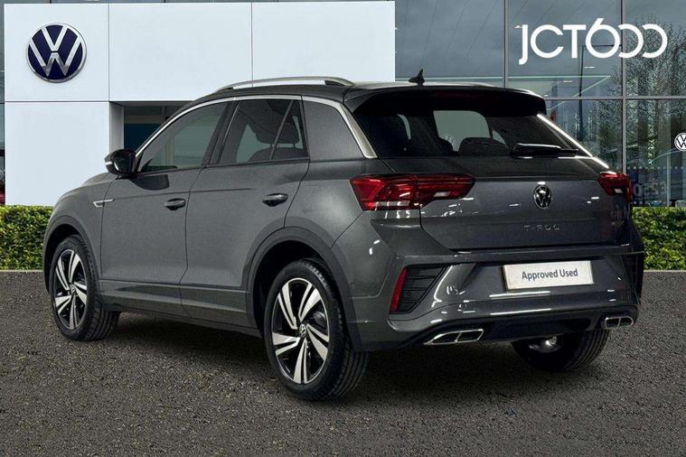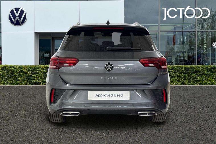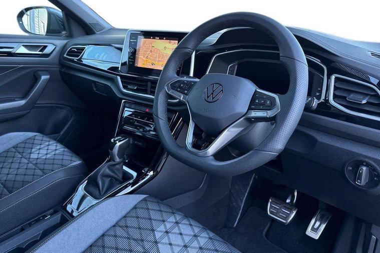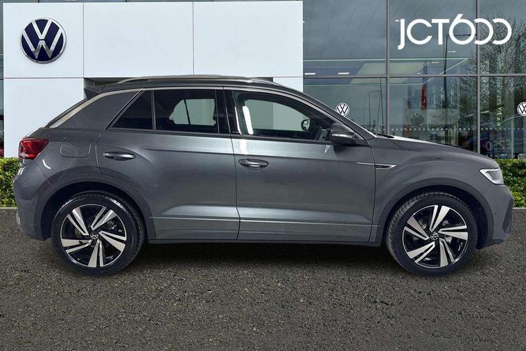 10.25" Digital cockpit pro, Advanced driver attention and drowsiness monitor, Emergency call service, Lane keeping system Lane Assist, Mobile phone interface, Modified key software - reduce switch off time for key status change to Long no motion, Online services, Park assist including front and rear parking sensors, Service interval indicator, Tailgate/trunk lid release from outside, Think blue trainer driver tips and journey analysis, Warning sound and light for front seatbelts unfastened, Wireless app connect, Battery regeneration during braking, Start/stop function with battery regeneration, DAB Digital radio, Diversity antenna for FM reception, Front and rear 6 speakers, Music playback - MP3, WMA and AAC files, Premium USB cable in choice of either Apple or Android smartphone compatibility, SD card slot, Simultaneous pairing of 2 compatible mobile devices, Title and cover art display, We Connect and We Connect Plus functionality, Auto dimming interior rear view mirror, Automatic hazard lights activation under emergency braking, Automatic headlight control with LED separate daytime running lights with coming/leaving home function, Body coloured exterior mirror housings and door handles, Electrically adjustable and heated door mirrors, Extended roof spoiler, Exterior mirrors aspherical on driver side, convex on front passenger side, External USB type C socket and charging sockets, Front windscreen wiper with intermittent wipe and 4 position delay, Heated rear window, LED 3rd brake light, LED rear combination lamps, LED rear number plate lights, Power windows with comfort operation and circuit breaker, Privacy glass for rear side windows and rear window, R-Line design body coloured bumpers, Rain sensor, Rear exhaust tailpipe, Rear fog light on one side and reversing lights on both sides, Rear side wing doors, Rear wash/wipe with intermittent wipe setting, Remote electrically foldable door mirrors, puddle lights and reverse activated passenger's door mirror, 12V power socket in centre console, 3 rear head restraints, 3 seat bench in 2nd row, 4 load lashing points in luggage compartment, Air care climatronic air conditoning system with active combination filter and 2-zone temperature control, Black roof lining, Chrome plated decorative trims, Chrome plated radiator grille inserts, air vent surrounds and light switch surrounds, Door and side trim panel with leatherette insert, Front + rear carpet mats, Front centre armrest, Front cupholders x 2, Front footwell illumination, Front reading light, Front scuff plates with R Line logo, Front seat back storage pockets, Glove compartment door with light, Instrument lighting, white adjustable panel illumination, Interior ambient lighting and surround lighting, Interior light delay, Isofix child seat preparation, Leather gearshift handle, Load-through provision with cup holder when folded down ('Unsplit rear seat bench, split folding backrest, with centre armrest), Luggage compartment lighting, Single front passenger seat, Stainless steel pedals, Storage compartment in left and right luggage area, Storage compartment in rear doors, Storage compartments in driver and front passenger doors, Sunvisors with illuminated vanity mirrors, Variable boot floor, height adjustable and removable, Driver assistance pack without proactive passenger protection - T-Roc, 3 point height adj front seatbelts + pretensioners, 3 point seatbelts in outer rear with ECE label, ABS, Child locks on rear doors, City emergency braking and pedestrian monitoring, Driver and front passenger airbag with front passenger airbag deactivation, Driver and front passenger safety-optimised head restraints, Drivers seatbelt reminder, Electronic parking brake, Electronic Stability Control (ESC) inc EDL (Electronic Differential Lock) and ASR (Traction Control), Front and rear passengers curtain airbag system including front side airbags, Hill start assist, Predictive pedestrian protection, Rear disc brakes, Two tone horn, Tyre pressure loss indicator, Volkswagen roadside assistance, Piano black decorative inserts in dashboard and front door trim panels, Trims for alloy wheels,