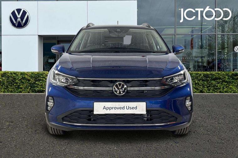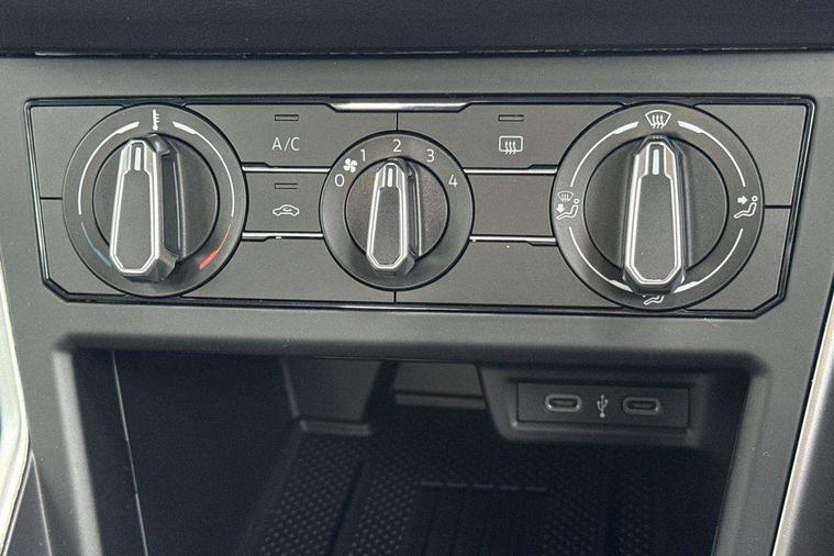 8" Digital cockpit basic display, Advanced driver attention and drowsiness monitor, Dynamic road sign display, e-Call (emergency call), Power Steering, Predictive adaptive cruise control, Travel assist including emergency assist, Washer fluid level indicator, Wireless Charging including Bluetooth, Start-stop system with battery regeneration (recuperation - energy recovery during braking), Digital radio reception (DAB+), WeConnect plus, Ambient lighting with logo projection, Aspherical driver's exterior mirror, Auto headlights, Body coloured bumpers, Body coloured exterior mirror housings and door handles, Electric windows, External USB type C socket and charging sockets, Heat insulating glass windscreen, LED rear combination lamp, LED third brake light, Left convex exterior mirror, Power folding adjustable/heated exterior mirrors and front passenger exterior mirror lowering function, Rear fog light on one side, reversing light on both sides, Rear side wing doors, Rear wash/wipe with intermittent wipe setting, 'Slash/ Austin' Cloth upholstery, 12V socket in centre console, 2 front reading lights, 3 rear head restraints, 3 seat bench in 2nd row, Black carpets, Child seat anchor for child seat system i-Size, 2x top tether and child seat anchor in front on front passenger side, Door and side trim panels in titan black, Driver and front passenger seat height adjustment, Front centre armrest, Handbrake lever handle in leather, Height and reach adjustable steering wheel, Leather trimmed gear knob, Leather wrapped multifunction steering wheel, Luggage compartment floor, Luggage compartment light, Lumbar support for driver's and front passengers seat, Seat covers in titanium black, Single front passenger seat, Split folding backrest with centre armrest and unsplit rear seat bench, Storage compartment under front seats, Sun visors with illuminated vanity mirrors, Chrome Package - Taigo, Drivers assistance pack - Taigo, Light and Sight pack including High beam assist - Taigo, 2 x 3-point seatbelts/outer rear seats with ECE label, 3-point seat belts in front with pretensioner and height adjustment, 3-point seatbelt for centre rear seat, Adaptive driver and front passenger airbags with passenger airbag deactivation function, Driver and front passenger airbags with front passenger airbag de-activation, front side and curtain airbags, Driver and front passenger safety-optimised head restraints, Electronic stability control, Extended and predictive pedestrian/ cyclist protection, Front and rear disc brakes, Front curtain and side airbags with center airbag, Hill start assist, Manual rear child locks, Single tone horn, Tyre pressure loss indicator, Anti-theft alarm system with interior monitoring, backup horn, and towing protection, Lava stone black gloss/matt decorative inserts in dash and front door panels, Low rolling resistance tyres,