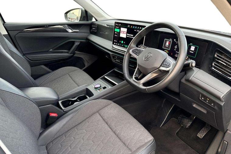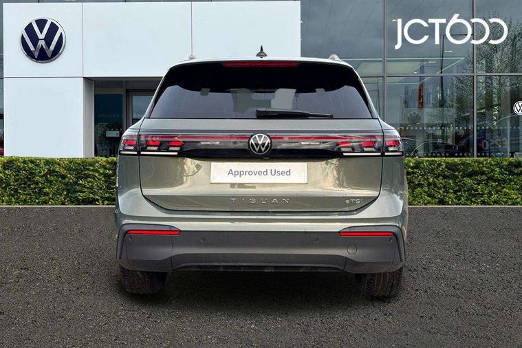 Adaptive cruise control (ACC), Advanced driver attention and drowsiness monitor, Bluetooth mobile phone interface, Car2X technology, Digital Cockpit Pro - 10.25" high resolution dash display screen with customisable menus and information, Dynamic road sign display, E-Sim card for online connectivity, eCall emergency call service, Front Assist - Autonomous emergency braking with pedestrian and cyclist monitoring, Lane change system, Side assist, Rear traffic alert and Exit warning system, Lane keeping system Lane Assist, Multifunction front facing camera, Oncoming vehicle braking when turning including swerve support, Park assistance plus with front and rear parking sensors, Power assisted steering with speed sensitive, Start/stop system with regenerative braking, Warning signal and warning light for front and rear seatbelts not fastened, Wireless App-Connect, Front wheel drive, Digital radio reception (DAB), Diversity antenna for FM reception, Ambient lighting with logo projection, Auto dimming interior rear view mirror, Automatic headlight control system, Body coloured bumpers and air intake with chrome trim, Body coloured door handles, Body-coloured exterior mirror housings, Coming/leaving home lighting function, Heat insulating glass in side and rear windows, Heat insulating windshield, Heated rear window, High level 3rd brake light, Illuminated door handle recesses, Illuminated lightline between headlamps, Rain sensor windscreen wipers, Rear fog light on one side, reversing light on both sides, Rear side wing doors, Rear wiper, 12V outlet in center console rear and in luggage compartment, 12V socket in centre console, 3 bench rear seats in 2nd row, Air care climatronic 3 zone air conditioning system with rear air conditioning control panel, Carpet mats, front and rear, Centre console with illuminated storage compartment with sliding cover and two drinks holders, Ceramique headlining, Door and side trim panel in foam film and woven fabric, Front centre armrest, ISOFIX anchors for child seats on outer rear seats and front passenger seat compatible with i-Size, Mechanical rear seat release, Power adjustable lumbar support in front, Rear bench seat, split folding, longitudinally movable and folding with load-through hatch and centre armrest, Safety optimised front head restraints, Single front passenger seat, Sun visors with illuminated vanity mirrors, Three rear head restraints, Variable luggage compartment floor, Comfort package with park assist pro - Tiguan, Design package - Tiguan, 3 point seat belt for centre rear seats, 3 Point seat belts in front with pretensioners, 3 point seatbelts in outer rear with ECE label, Driver and front passenger airbag with front passenger airbag deactivation, Electronic parking brake with auto hold, Front and rear curtain airbags, Front and rear side airbags, Front centre airbag, Front disc brakes, Manual child proof rear door locks, Rear disc brakes, Two tone horn, Warning triangle, Anti theft wheel bolts, Soul instrument panel,