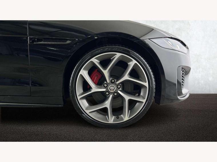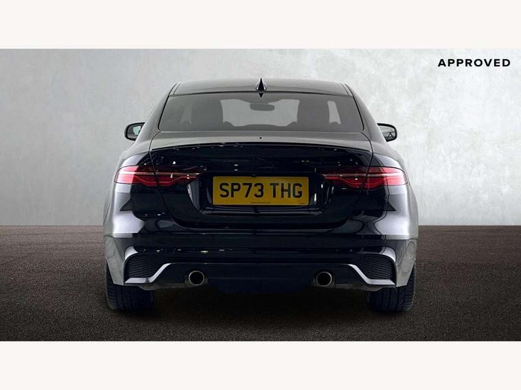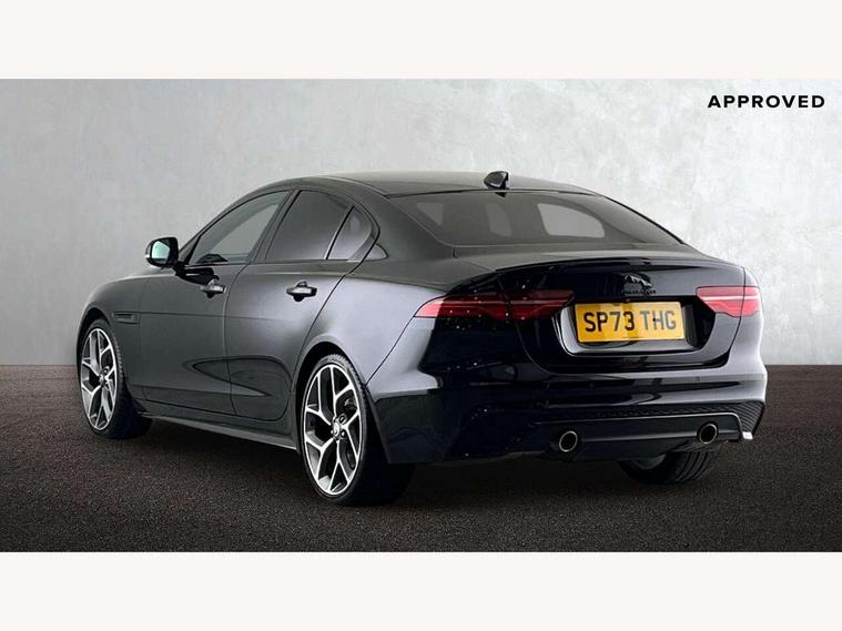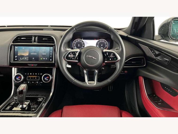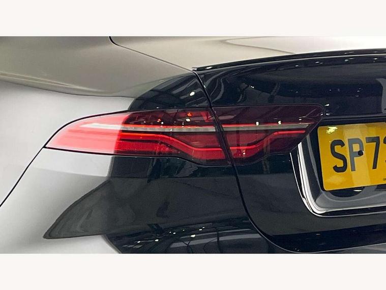 Adaptive cruise control, Android Auto, Apple car play, Blind spot assist, Bluetooth connectivity, Driver condition monitor, E-call, Electric power assisted steering (EPAS), Front and rear parking aid, InControl remote premium, Jaguar drive control adaptive surface response, Lane keep assist, Navigation pro system, Outside temperature gauge, Powered tailgate/boot lid, Pro services and wifi hotspot, Push button starter, Rear collision monitor, Rear traffic monitor, Service interval indicator, Speed proportional steering, Traffic sign recognition with adaptive speed limiter, Trip computer, Voice control system, Adaptive dynamics, Configurable dynamics, DAB digital audio broadcast, Dynamic volume control, InControl apps, InControl protect, Pivi pro connected, Animated directional indicators, Approach lamps, Automatic headlamps, Automatic headlight levelling, Body colour bumpers, Body colour front and rear bumper inserts, Electric heated/power fold memory door mirrors with approach lights and auto dimming driver side, Electric windows with one touch open/close and anti-trap, Grained black lower mesh, Green tinted heat insulating glass, Heated rear windscreen, Heated windscreen + heated windscreen washer jets, Jaguar script and leaper, Privacy glass, Rain sensing windscreen wipers, Rear boot, Rear side wing doors, Tailgate/boot lid spoiler, Third brake light, Trailer stability assist, Variable front intermittent wipers, 12V socket in front and rear, 3 rear seats, 40:20:40 folding rear seats with centre armrest, Bright metal pedals, Chrome seat switches, Ebony morzine headlining, Electrically adjustable steering column, Front and rear reading lights, Front centre armrest with storage compartment, Front passenger seat, Heated steering wheel, Illuminated glovebox, Illuminated trunk, Interior front door handles with separate locking switches, Isofix child seat mountings in rear, Leather steering wheel, Lockable glovebox, Luggage tie-down hooks, Passive front headrests, Premium carpet mats, Rear air vents, Rear head restraints, Satin chrome gearshift paddles, Shopping hook in boot, Sliding cover on front cupholder, Storage space in front and rear doors, Sunvisors with illuminated vanity mirrors, Twin front cupholders, Two zone climate control, Black exterior pack with side sills - XE, Online pack with data plan - XE, 355mm front brakes and 325mm rear brakes, ABS, All surface progress control (ASPC), Brake pad warning light, DSC - Dynamic Stability Control, Emergency braking, Front airbags with passenger seat occupant detector, Front and rear seatbelt reminder, Front side airbags, Full length side window curtain airbag, Hill start assist, Pedestrian contact sensing and deployable bonnet, Power child locks, Three 3 point rear seatbelts, Torque vectoring brake, Traction control, Tyre pressure monitoring system, Driver's central locking switch, Immobiliser, Keyless entry, Locking wheel nuts, Perimeter alarm, Remote central locking with deadlocks and drive-away locking, Smart key start system, Reduced section alloy spare wheel,