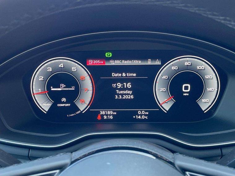 Audi connect safety and service (e-call), Audi connect with Amazon Alexa Integration, Audi drive select, Audi parking system plus with front and rear sensors, Audi smartphone interface, Audi virtual cockpit, Automatic start-stop system with coasting functionality and efficiency programme, Bluetooth interface, Cruise control system with speed limiter, Electric boot lid release, Electromechanical power steering, Email, calendar and text messages displayed via MMI, MMI Navigation plus with MMI touch includes 10.1" high resolution colour MMI display, 3D map, Rear view camera, Voice control system, 54 litre fuel tank, Comfort dynamic suspension, 2 USB charging ports, 8 passive loudspeakers, DAB digital radio reception, Auto dimming rear view mirror, Body coloured door mirrors, Electrically folding auto dimming/adjustable/heated door mirrors with LED side indicators and kerb view function for passenger side, LED headlights and rear lights with LED daytime running lights, LED third brake light, New design rear diffuser, Rain and light sensors, Rear boot, Rear side wing doors, Windscreen with acoustic glazing, 3 spoke high multi-function leather sport steering wheel with height and reach adjustable, 4 way electric lumbar support for driver and front passenger, 40/20/40 split folding 3 rear seat bench in 3 parts with rear centre armrest, Deluxe 3 zone electronic climate control, Door sill trims with aluminium inlay, Front and rear head restraints, Front centre armrest, Heated front seats, Interior lighting, ISOFIX child seat mounting and top tether, Manual seat adjustment, Single front passenger seat, High gloss package - A4, 3 rear seatbelts, 6 airbags - Driver, front passenger, curtain and side windows, Electronic Stabilisation Control (ESC) including ABS, ASR and EDL, Hill hold assist, Multi collision brake assist, Pop-up bonnet for pedestrian protection, Pre sense city, Rear door child safety locks, Seatbelt monitoring, Warning triangle and first aid kit, Anti theft alarm, Anti theft wheel bolts, Keyless Go, Tool kit, Tyre repair kit,