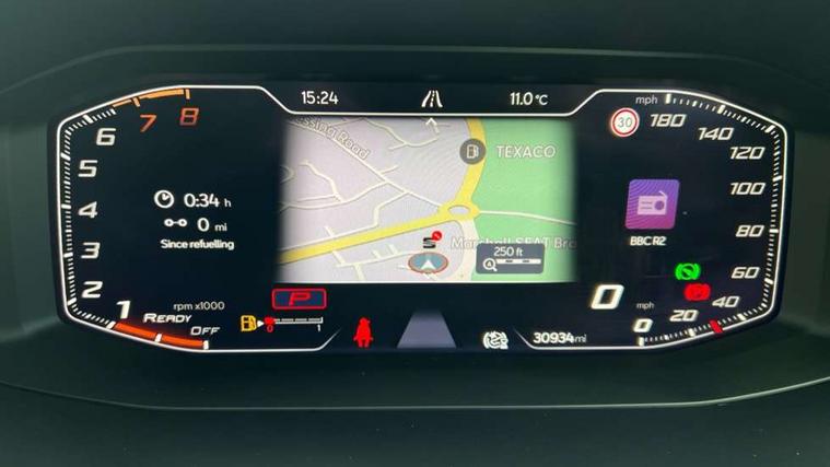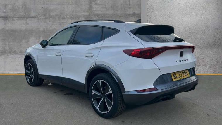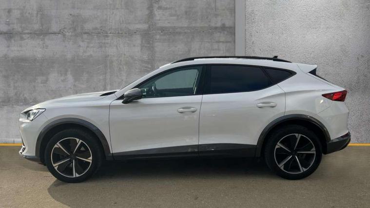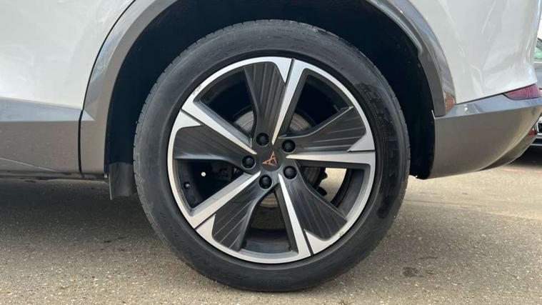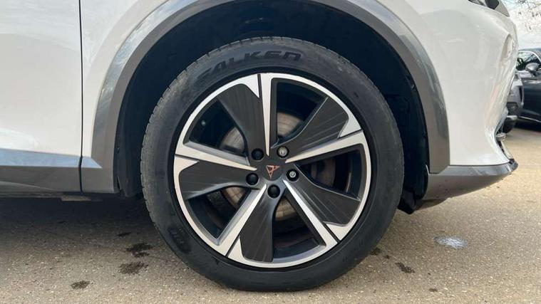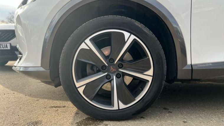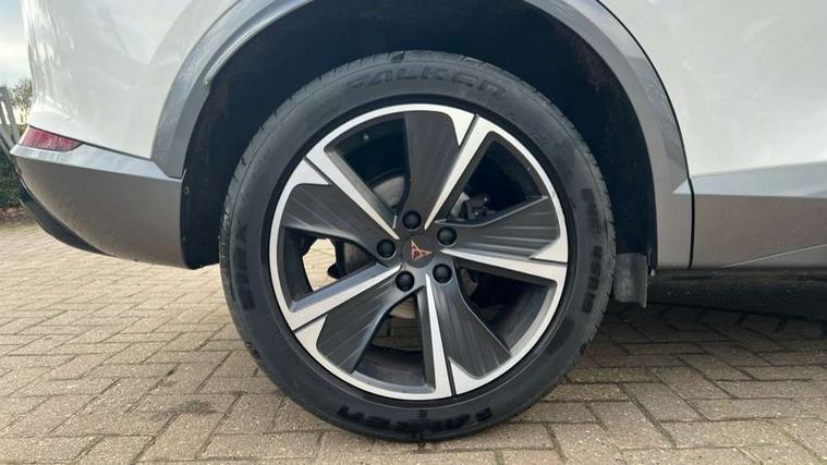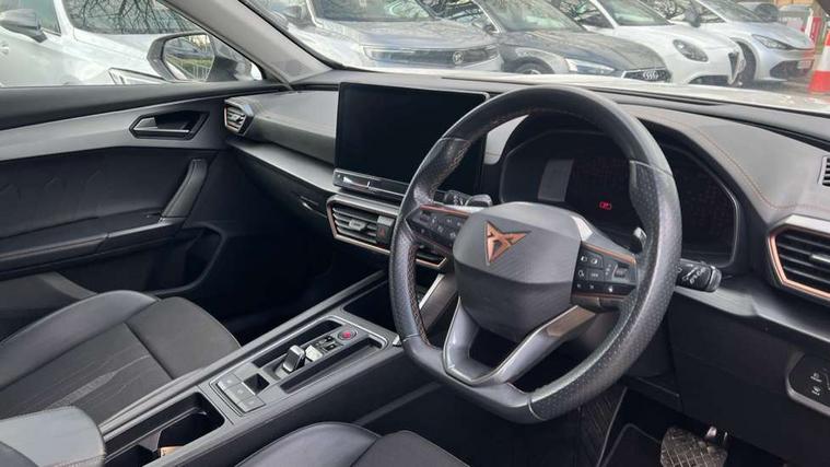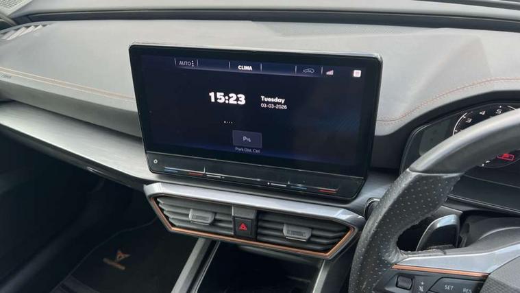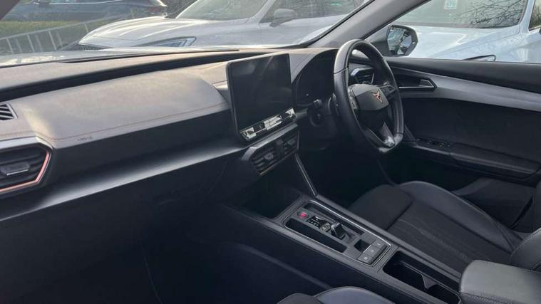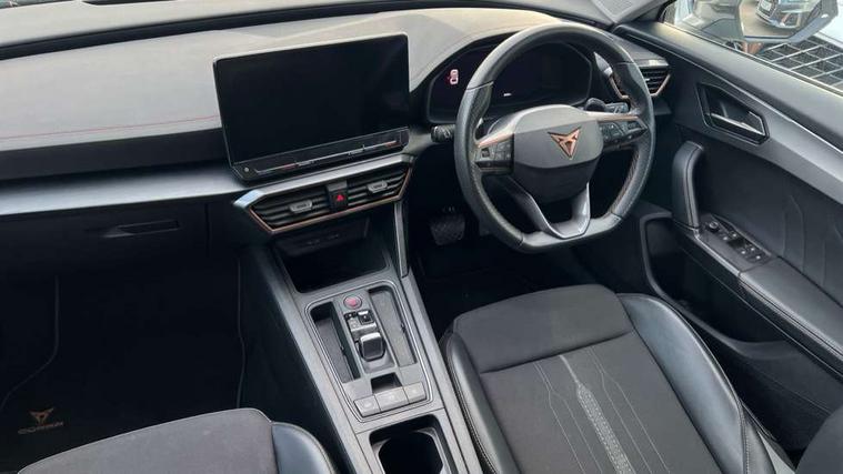 Digital cockpit and configurable dashboard, Driver alert system, Driving profile selection, Forward collision warning with automatic braking, Lane assist, Navigation system with 12'' Touchscreen Display, PAS, Predictive adaptive cruise control with speed limiter, Rear parking sensors, RPM, trip computer, outside temp gauge, instrument light brightness, low fuel warning light, lights on reminder, gearshift indicator, Service interval indicator, Start/stop system with regenerative braking, Voice control system, Wireless apple carplay, Wireless phone charger, Electronic locking differential and dynamic traction support, Standard suspension, 2 front and 2 rear USB type C sockets, Auxiliary input socket, DAB radio, Auto dimming rear view mirror, Body colour door handles, Body coloured bumpers, Dark grey wing mirror, Daytime running light with automatic headlight control and coming home feature, Dynamic headlight range control, Electric front/rear windows, Electrically adjustable, heated and folding door mirrors, Front fog lamps with cornering function, Gloss black roof rails and window surrounds, LED Headlights, LED Taillights with dynamic indicator, Rain sensing wipers, Rear diffuser with black simulated exhaust pipes, Rear side wing doors, Rear wash/wipe, Third brake light, Tinted rear windows, Welcome lights, 12v power supply in centre console, 12V socket, 12v socket in loadspace, 2 front and 2 rear reading lights, 230V socket, 3 seat bench in 2nd row, 60/40 split rear bench seat with armrest and mechanical seat release, Dust/pollen filter, Front and rear head restraints, Front centre armrest, Height/reach adjust steering wheel, Illuminated interior front door sills, Illuminated sunvisor with mirror, Interior ambient lighting, Isofix, Leather multi function heated steering wheel with gear shift paddles, Luggage tie-down hooks, Manually adjustable height and lumbar support for front seats, PVC/Cloth upholstery with copper stitching + Sport seats, Single front passenger seat, Three zone climate control with control panel in rear, Variable luggage/load compartment floor, Safety and driving pack (M) - Formentor, 3 point seatbelts on all rear seats, ABS, Brake control system - ESC and brake booster, Child proof door locks, Driver and front passenger airbags with front passenger airbag de-activation, Electronic parking brake, Front and rear disc brakes, Front side curtain airbags, Hill hold control, Public e-call, Seat belt reminder for front and rear seats, Tyre pressure monitoring system, Anti theft alarm system, Keyless entry and start system (KESSY), Locking wheel bolts, Copper and aluminium interior detailing,