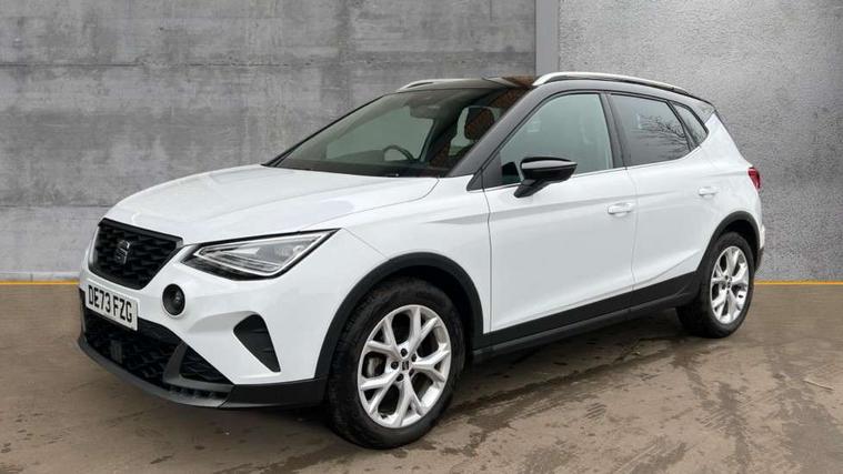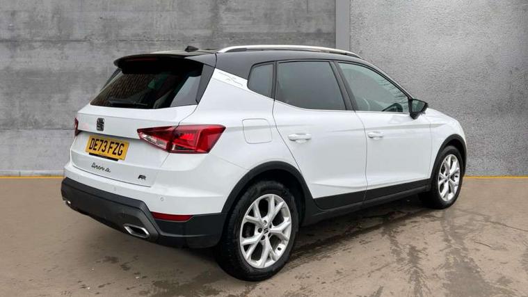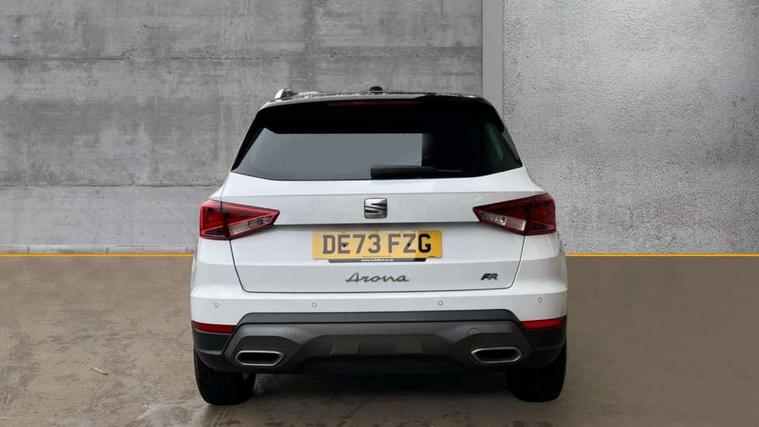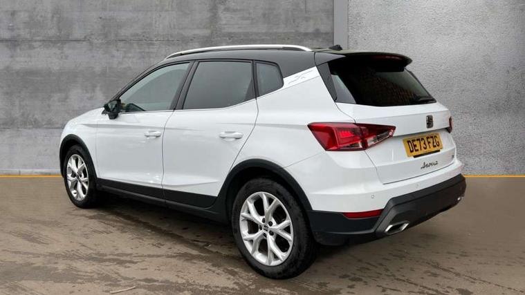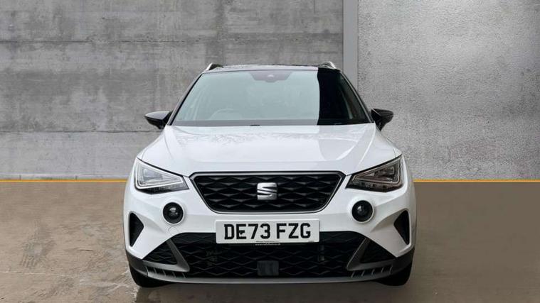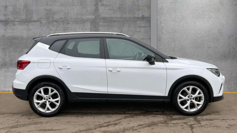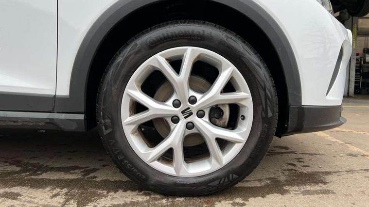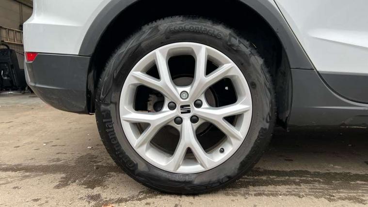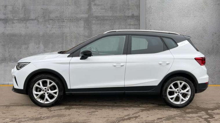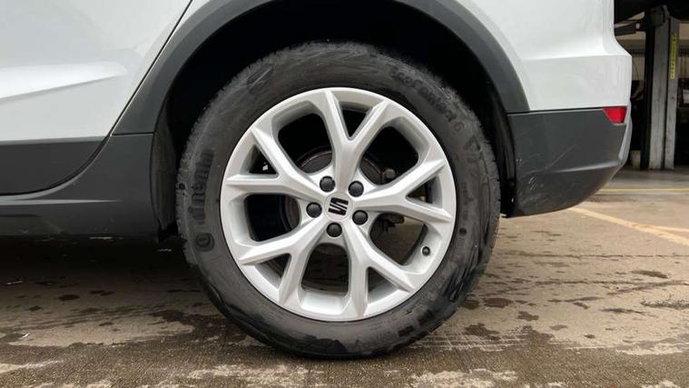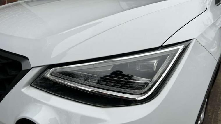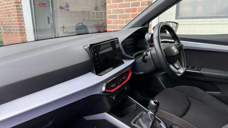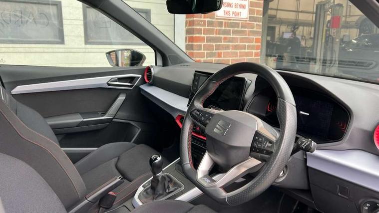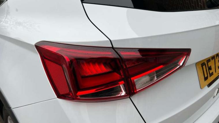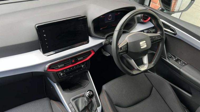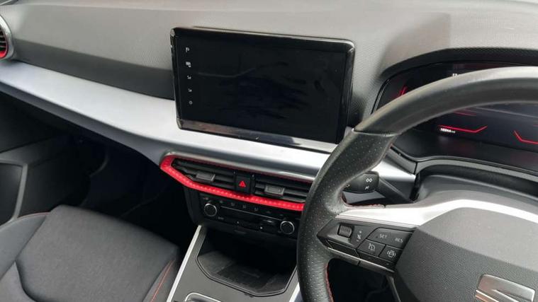 'Lights On' Reminder warning buzzer, 8" Digital cockpit, Digital clock, E-call, Electric speed sensitive power steering, Full Link Smartphone Integration with Mirror Link, Apple Car Play, Google Android Auto with USB Type C cable for Apple and Android compatibility, Lane keeping system, Low fuel warning light, Outside temperature display, Rear parking sensor, RPM counter, Seat connect with safety, service, remote and online, SEAT Drive profile - Four different models normal-sport-eco-individual, steering response, throttle response, Trip computer, Wireless phone charger, 9.2" colour touchscreen with navigation system, voice control and USB port (type c), Bluetooth interface for hands free and audio streaming, DAB digital radio and AM/FM radio, Steering wheel mounted audio controls, Anti theft roof antenna, Auto dimming interior rear view mirror, Automatic activation of hazard warning lights, Body coloured bumpers, Body coloured door handle inserts, Chrome roof rails and window surrounds, Dark tinted rear windows, Electric front/rear windows, Electrically adjustable, heated and folding door mirrors, Front fog lights with cornering function and rear fog light, FULL LED automatic headlights with dynamic headlight range control, coming and leaving home, LED daytime running lights, LED rear tail lights and licence plate lights, Protective side mouldings, Rain sensing wipers, Rear side wing doors, Rear spoiler, Rear window wash/wipe, Roof colour door mirrors, Third brake light, Twin exhaust pipe styling hidden exhaust pipe, Visible VIN plate, Windshield wiper with intermittent control and potentiometer, 2 cupholders, 3 seat bench in 2nd row, 60/40 split folding rear seat, Aircare filter, Black interior roof, Cloth upholstery, Double boot floor, Driver sunvisor with covered mirror + card holder, Dual zone climate control, Front courtesy light with front reading lights, Front sport seats, Gear shift indicator, Height adjustable front seats, Height/reach adjustable steering column, Illuminated boot, Instrument lighting with brightness control, Interior ambient lighting, Interior light in footwell, central console and door panel, ISOFIX points in outer rear seats with top tether anchorage points, Passenger sunvisor with vanity mirror, Perforated flat bottomed leather steering wheel/gear knob/handbrake with red stitching and FR logo, Single front passenger seat, Two front and three rear height adjustable headrests, Interior chrome pack - Arona, 3 point seatbelts on all rear seats, ABS, Active front headrests, Child locks on rear doors, Driver and front passenger airbags with front passenger airbag de activation, front side and curtain airbags, Electronic stability control, Emergency Brake Assist (EBA) and front assist, Front and rear seatbelt reminder, Hill hold control, Multi-Collision braking, Tiredness recognition system, Traction control, Tyre pressure monitoring system, Alarm with back-up horn, Electronic engine immobiliser, Locking wheel bolts, Remote central locking + deadlocks, Tow away protection, Titan black dashboard, 17" Dynamic alloy wheels,