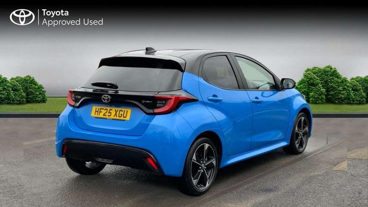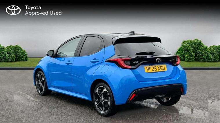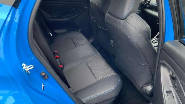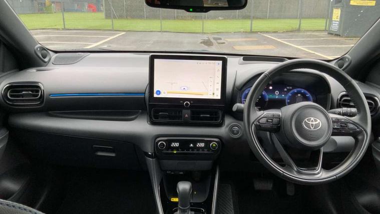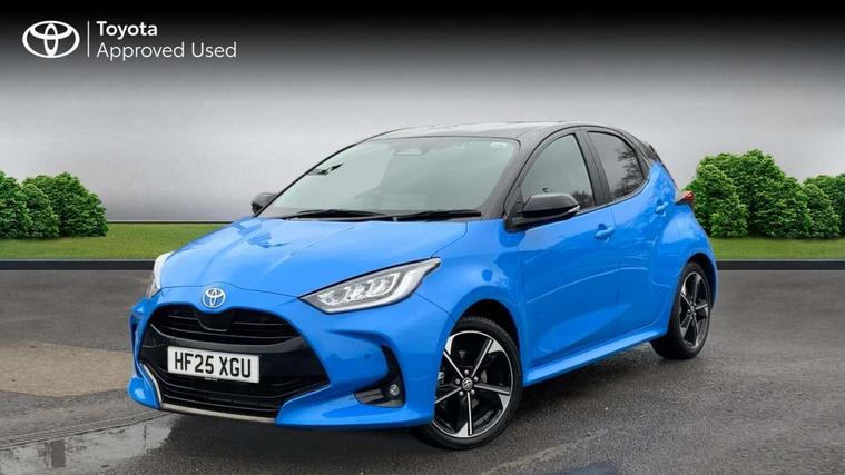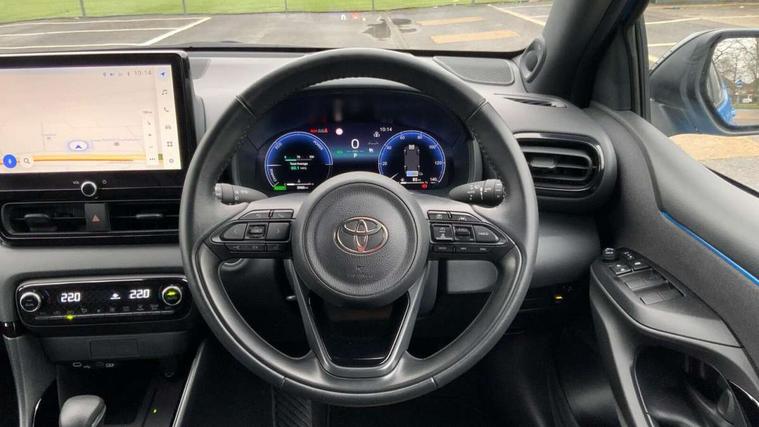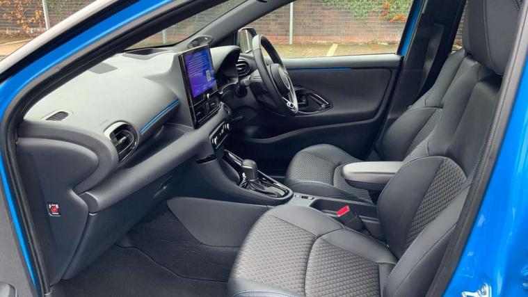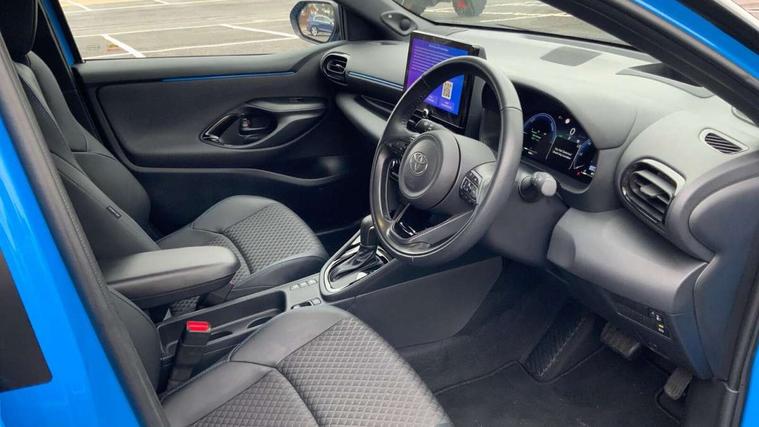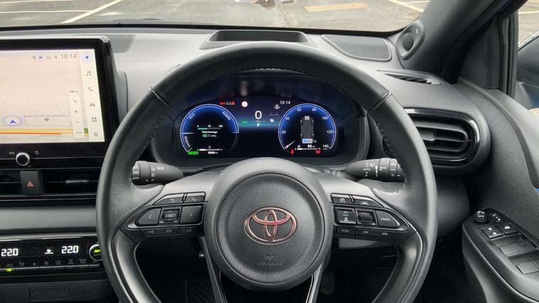 12.3" Digital Combimeter, Adaptive cruise control, Adjustable speed limit with speed warning, Bluetooth connectivity, Colour binocular inspired displays with digital speedometer, E-call, Electric power steering, Head up Display, Hybrid energy display, Multi information display switches on steering wheel, Reversing camera, Tailgate, Voice recognition, Wireless charger, Vehicle Stability Control (VSC), 10.5" Toyota smart connect multimedia with wireless smartphone integration incl apple car play and cloud Navigation, 6 speakers, 8 Speakers, JBL speaker system, Toyota Touch 3 system with DAB radio, USB connection, Acoustic windscreen glass, Auto windscreen wipers, Automatic headlights, Body coloured door mirrors, Dark chrome lower meshed front grille, Electric adjustable heated door mirrors, Follow me home headlights, Front auto power windows with anti jam protection, Full LED rear lights, LED daytime running lights, LED front fog lights, LED front light guide, LED Headlights, LED High mounted stop lamp, LED Indicators, LED rear light guide, Manual headlight levelling, Painted chequered front grille with hot stamp in mesh design, Rain sensor, Rear auto power windows with anti jam protection, Rear privacy glass, Rear roof spoiler, Rear side wing doors, Rear wiper, Shark fin antenna, Turning signal integrated indicators in door mirrors, Variable front intermittent wipers, 3 adjustable rear headrests, 3 seat bench in 2nd row, 3 spoke leather steering wheel, 60/40 split folding rear seat, Active headrests, Adjustable boot height, Black roof lining, Coat hooks in rear grab handles, Cup holders (2 front & door), Data Communication Module (DCM) connected services, Dual zone automatic air conditioning, Front armrest, Front sport seats, Glovebox, Height adjustable driver's seat, Height adjustable passenger seat, Isofix seat fixing, Leather gearshift, Map pockets on the backs of the front seats, Nanoe-X air purifier, Partial leather upholstery, Pollen filter, Shopping bag hooks, Single front passenger seat, Tilt/telescopic steering column, Safety pack - Yaris, 3 point seatbelts on all rear seats, ABS+EBD+Brake assist, Electronic parking brake, Emergency brake light system (EBS), Front passenger airbag on/off switch, Front seatbelt reminder, Hill start assist control (HAC), Rear child proof door locks, Rear seat belt reminder, Supplemental Restraint System (SRS) 8 airbags: Driver & passenger's airbags, dual side curtain airbags, side impact airbags, front centre airbag, Toyota Safety Sense 3 with over the air updates, Tyre pressure warning system, 2x Master key, Alarm/immobiliser, Keyless smart entry with push button start, Remote AC via MyT, Remote locking via MyT, Remote powered central double locking doors, Smart digital key, Piano black interior trim, Soft touch instrument panel, 17" Black Machined-face, 5 double spoke alloys wheels, Space saver spare wheel,