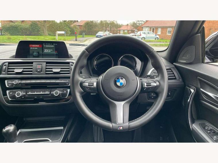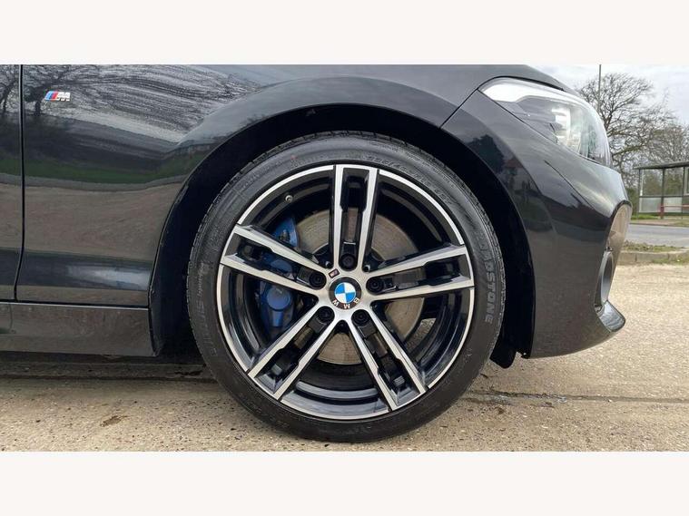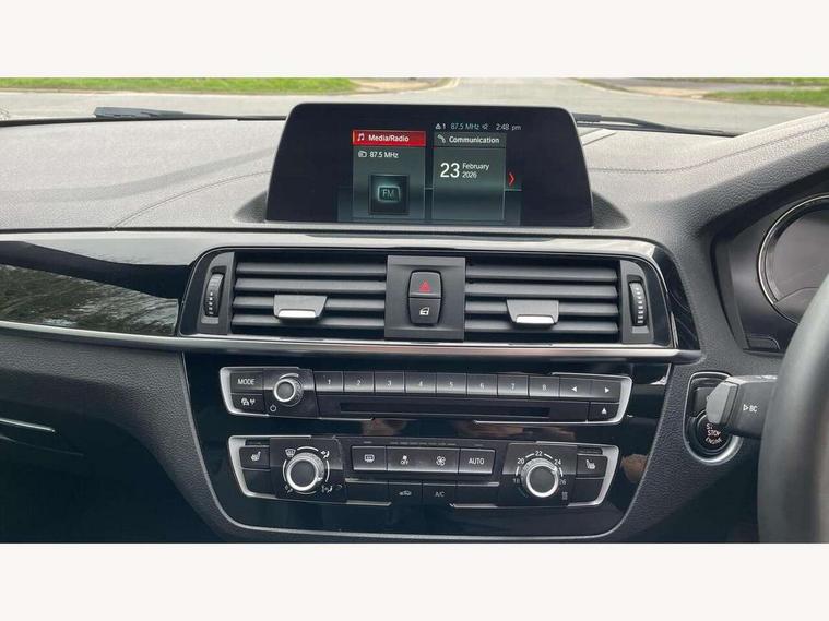 Automatic start/stop system, BMW Online services, BMW remote services, BMW Teleservices, Brake force display, Brake pad wear indicator in front and rear, Check Control warning system for monitoring of lights and door/luggage compartment open warning, Cruise control with brake assist, Eco pro mode, Instrument cluster with speedometer with miles per hour read out, tachometer and fuel gauge, Lights on warning by audio warning signal when ignition is switched off, Oil temperature display via on board computer in instrument cluster, On board computer - average speed+fuel consumption, service interval, clock/date, odometer/trip meter, outside temperature display and ice warning, On board diagnostics, Optimum shift indicator, Personal Profile, Real time traffic information, Servotronic PAS, Speed limiter, Battery age recognition function, Drive Performance Control, BMW professional radio with CD player, DAB Digital radio, Harman/Kardon loudspeaker system, Body colour door handles, Body colour front and rear bumpers, Body colour mirror caps, Body colour roof mouldings, Clear lenses direction indicator lights, Dark chrome exhaust tailpipe, Darkened rear lights with LED light bars, Daytime driving lights, Direction indicator side lights in exterior mirrors, Dynamic brake lights, Electrically adjustable heated door mirrors and washer jets, Follow me home headlights, Front and rear bumper system with replaceable deformation elements, Front electric windows with open and close fingertip control, anti trap facility and comfort closing, Green tinted heat protection glazing, Headlight beam throw control, Heated windscreen washer jets, High gloss black kidney grille with black slats, High level third brake light, Lightweight engineering, M aerodynamic bodystyling, Nearside reverse light in rear light cluster, Offside rear fog lights, Rain sensor including auto headlights activation, Rear window aerial, Rear window wiper, Shark fin antenna, Sun protection glass, Visible VIN plate, Welcome lighting, 12V power socket in centre console, 12V power socket in passenger footwell, 60/40 split folding rear seat, Ambient lighting - switchable BMW classic orange/ cold white LED, Anthracite headlining, Anthracite Velour front floor mats, Conditioned based service, Door sill finishers with illuminated M designation, Front and rear side armrest integrated into door trim, Front folding sliding armrest with storage compartment, Front head restraints, Front sports seats with electric side bolster adjustment, Front storage compartment in centre console and in door trim, Front/rear courtesy lights with soft on/off dimming, Gearshift lever with M designation, Glove box handle with chrome surround, Glovebox, Interior light in front centre interior mirrors and rear centre auto interior light activation when door is opened when ignition switched off, Isofix child seat for two outer rear seats, Leather gear knob and handbrake grip, Luggage compartment access via BMW roundel, Luggage compartment lighting, M sports multi function leather steering wheel, Manually adjustable steering column, Multi-function controls for steering wheel, Rear folding head restraints, Sunvisors with vanity mirrors and ticket pocket, Two cupholders with sliding cover and inlay mat, Two grab handles integrated in roof lining, Two sills lashing eyes in the luggage compartment, 3 point seatbelts on all seats, front pyrotechnic belt tensioners, stopper and belt force limiters, rear coded belt buckles, Active differential brake (ADB), electronic differential lock in DSC-OFF mode, Airbags - Front driver and passenger, front and rear head, front side, curtain head protection, Anti lock braking system (ABS) with brake assist, Automatic Stability Control (ASC), Battery safety cut-off, BMW emergency call, Brake drying, Brake energy regeneration, Braking readiness, Cornering brake control (CBC), Crash sensor activating central locking release, hazard warning lights, Driver and front passenger seat belt security check, DSC+, Dynamic brake control, Dynamic Traction Control - DTC, Front passenger manual airbag deactivation, Front ventilated brake disc, Hill start assist, M Sport braking system, Rear brake discs, Rear child proof door locks, Side impact protection, Twin horns, Tyre pressure monitoring system, Warning triangle and first aid kit, Automatic drive away locking facility, Central locking switch for all doors, fuel filler cap and luggage compartment, Locking wheel bolts, Remote central locking with two Integrate key, one button for opening and closing all lock, open and close window, button for open luggage compartment, Remote control integrated key with blue inset, Start/stop button with comfort go keyless engine start and auto start stop deactivation button, Thatcham Cat.1 alarm and immobiliser, Reduced rolling resistance tyres, Run flat tyres,