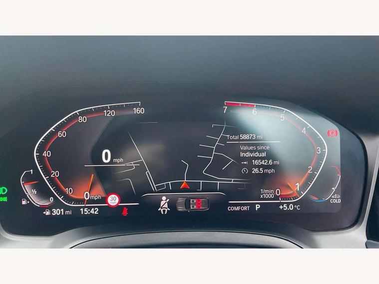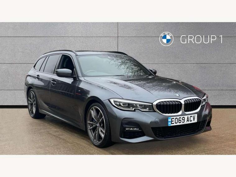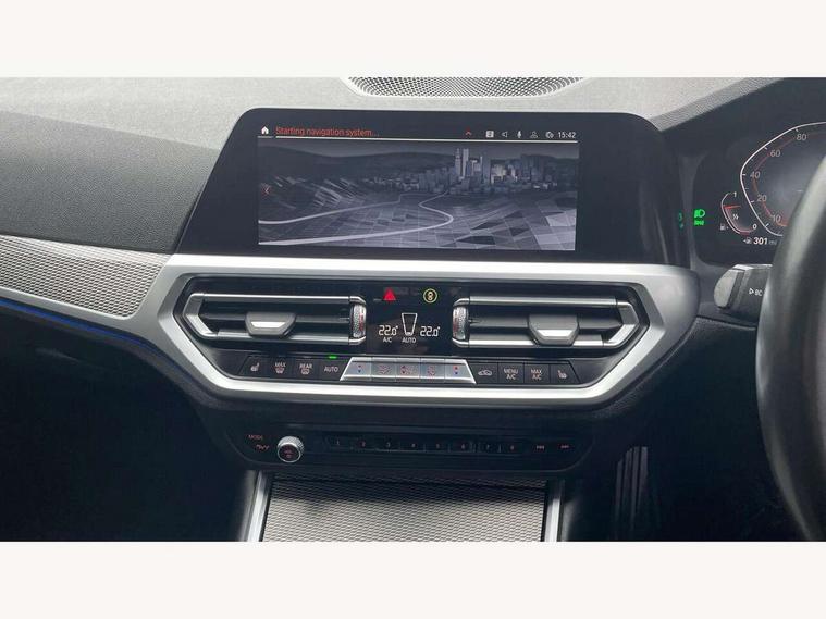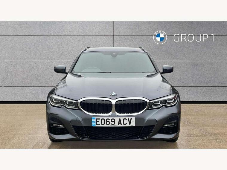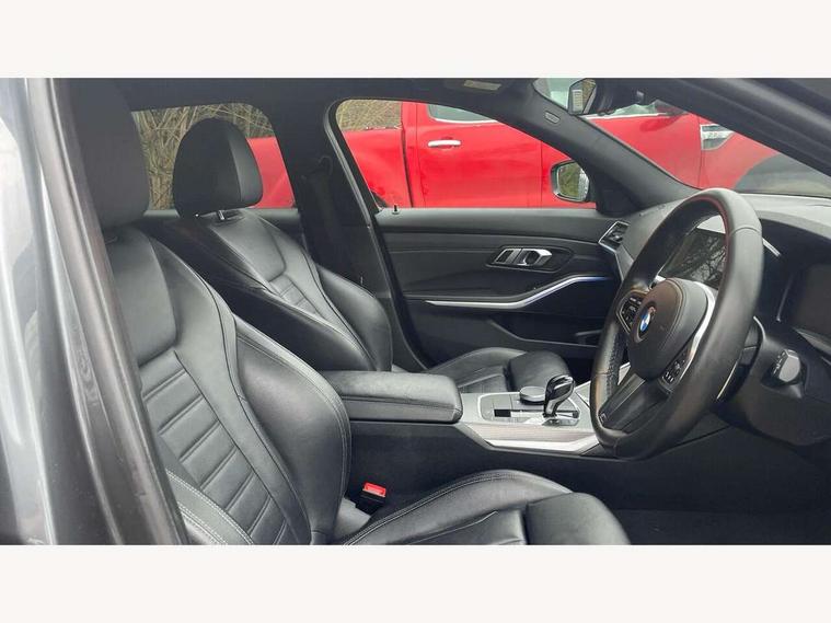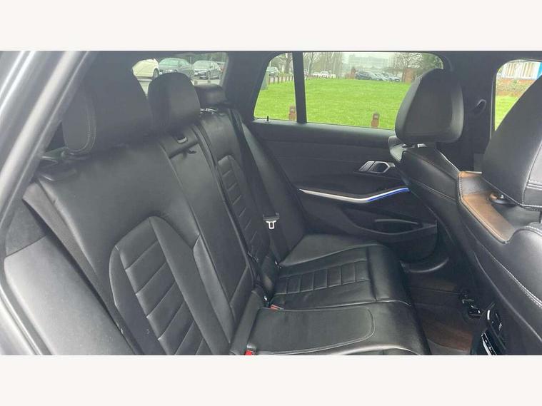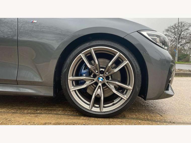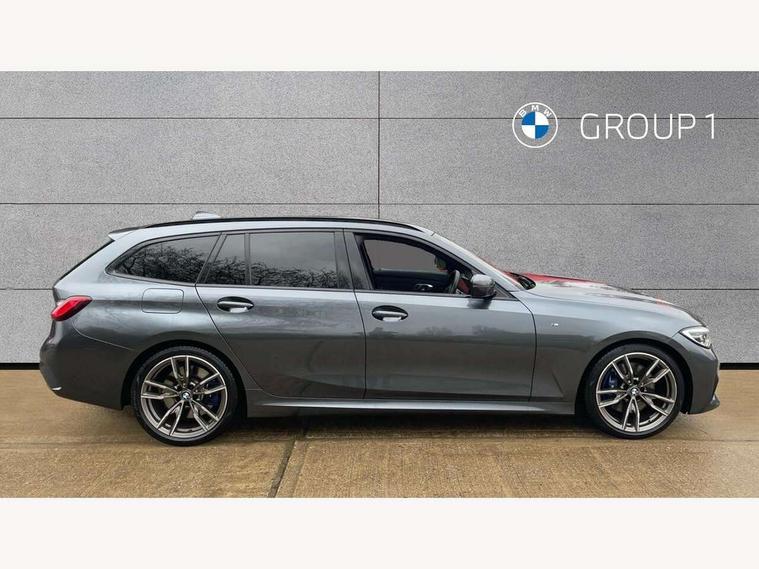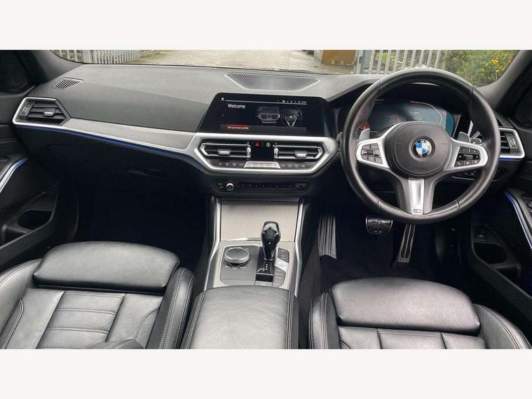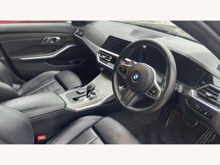 Active guard plus, Attentiveness assist, Auto start-stop, BMW iDrive controller on centre console, BMW Live Cockpit Professional sat nav system including 10.25" high resolution display and Intelligent Voice Assistant, BMW Online services, BMW Teleservices, Brake pad wear indicator in front and rear, Check Control warning system for monitoring of lights and door/luggage compartment open warning, Condition based service, Electric power steering with Servotronic steering optimised at all speed ranges, Instrument cluster with speedometer with mph readout, tachometer, fuel gauge and oil temperature gauge, Oil sensor for level and grade, warning by check control system, On board computer - average speed+fuel consumption, service interval, clock/date, odometer/trip meter, outside temperature display and ice warning, Optimum shift indicator, Variable sport steering, Balanced 50/50 weight distribution, Battery cut-out switch, Double VANOS, Drive performance control with ECO PRO comfort and Sport+ mode, Electronic differential lock, High precision injection, Larger capacity fuel tank, M sport suspension, Petrol Particulate Filter, Sport automatic transmission with steering-wheel mounted gearshift paddles and launch control, Stroke dependent dampers, DAB tuner, Acoustic glazing, Active airstream chrome frame kidney grille with 8 high gloss black vertical slats, Black roof mouldings, BMW Individual high gloss black shadow line roof rails, Body colour - fuel filler flap, front and rear bumpers, door handles and mirror caps with integrated turn indicator + bottom segment in matt black, Dynamic brake lights, Electric windows - front and rear, with open/close fingertip control, anti-trap facility and comfort closing, Exhaust tailpipe - split left and right, Exterior mirrors - electrically folding with anti-dazzle, Exterior parts in body colour, Fading support, Front and rear bumper system with replaceable deformation elements, Front black door sill finishers with BMW designation, Green tinted heat protection glazing, High gloss shadow line exterior trim, Interior rear view electrochromatic mirror with automatic anti dazzle function, LED fog lights, LED tail lights, Lightweight engineering, M designation on front side panels, left and right, Matt black exterior B pillar, Model designation in right tailgate, Rain sensor with automatic headlight activation, Rear wiper, Shark fin antenna, Visible VIN plate, Welcome light carpet, Welcome lights in interior and door handle area, Windscreen wipers with integrated washing jets, 12V power socket in front storage compartment, 2 front cupholder in centre console with clamping elements and matt black inlay, 3 rear seats with non folding headrests with 3 point seat belts, 3 zone automatic air conditioning, 4 pieces lashing eyelets in luggage compartment, 40:20:40 split folding rear seat with loading system, Ambient lighting, Anthracite headlining, Armrest integrated in front and rear door trim + front centre console armrest, Centred top Luggage compartment lights, Driver and front passenger heated seats, Four grab handles integrated in roof lining, Front and rear door exit lights, Front and rear door pockets, Front and rear reading lights, Front and rear velour floor mats, Front head restraints, Front sports seats with electric side bolster adjustment, Glove compartment lighting, Height adjustable mechanically and infinitely variable steering column, Illuminated armrest storage compartment, Illuminated glove compartment with separate small compartment, Interior lighting - front centre over interior mirror with soft light, rear centre and front and rear footwell lighting, Luggage compartment lighting, M Sport multifunction leather steering wheel, Make-up mirror lights, Rear centre armrest with 2 cupholders, Rear centre console with storage compartment and ventilation grille, Steering column length adjustment lever, Sunvisors with vanity mirrors and ticket pocket, Toolkit located in luggage compartment, Connected pack professional - 3 Series Saloon/Touring, M Aerodynamics pack - 3 Series Saloon/Touring, 2 tone horn, Anti-lock braking system (ABS) with brake assist, Automatic Stability Control (ASC), BMW emergency call, Brake energy regeneration, Braking pre-tensioning, Child proof locking system in rear door, Child seat ISOFIX attachment rear outer seats, Coasting in idle in ECO PRO mode, Cornering brake control (CBC), Crash sensor activating of airbags, Unlocking doors, hazard warning lights, interior light, safety battery terminal, Driver and front passenger side airbags, integrated in the door side seat backrest bolsters for all seat variants, Driver and passenger airbags, Dry braking, Dynamic brake control, Dynamic stability control + (DSC+), Dynamic Traction Control - DTC, Electric parking brake including automatic hold function and automatic release of the parking brake when driving off, Front passenger manual airbag deactivation, Head airbags for all 4 outer seats, Hill start assist, M Sport braking system, Seatbelt security check for driver and front passenger, Side impact protection, Three 3 point seat belts on all seats including front belt stopper, pyrotechnic belt tensioners and belt force limiters, Tyre pressure monitoring with three level warning strategy, Ventilated front and rear disc brakes, Warning triangle and first aid kit, Alarm system (Thatcham 1) with remote control and electronic engine immobiliser, Central locking switch for all doors, fuel filler cap and luggage compartment, Remote control including integrated key, Selectable automatic lock when driving away, Start/stop button with comfort go keyless engine start and auto start stop deactivation button, Vehicle key with M specific designation, Reduced rolling resistance tyres,