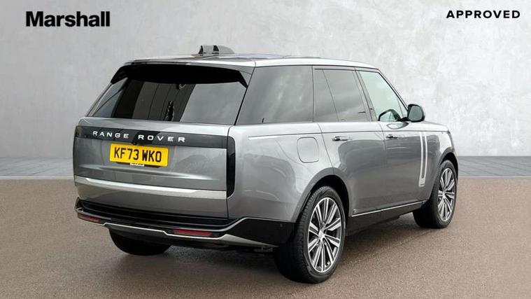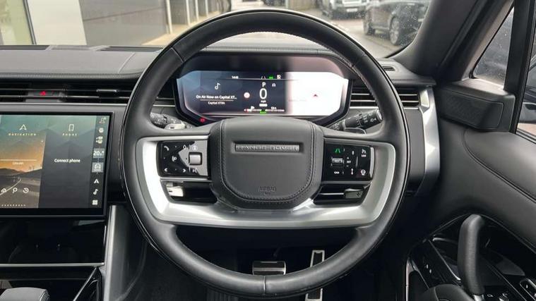 13.1" Touchscreen, 3D surround camera inc frwd traffic detection, vehicle clearance guidance, 3D view, clearsight ground view, manoevure light, 360 parking aid, wade sensing, All Terrain Info Centre, All wheel steering, Android Auto, Apple car play, Blind spot assist, Bluetooth connectivity streaming, Configurable programs, Driver condition response, Eco mode, Electric power assisted steering (EPAS), Emergency call service, Front and rear parking aid, Head up Display, Interactive driver display, Lane keep assist, Rear collision monitor, Rear traffic monitor, Remote, Traffic sign recognition with adaptive speed limiter, Wi-Fi Enabled with data plan, Wireless device charging with phone signal booster, 7 kW onboard charger, 8 speed automatic transmission, Active damper technology system, Adaptive dynamics, Adaptive off-road cruise control, All Wheel Drive (AWD), Automatic access height, Electronic active differential with torque vectoring by braking, Home charging cable 5m Mode 2 including plugs, Public charging cable 5m Mode 2 including plugs, Terrain Response 2 Auto, Twin speed transfer box, Digital Audio Broadcast radio-DAB, Pivi pro including smart settings, Connected navigation pro, nuance speech, USB socket, Acoustic laminated windscreen, Animated directional indicators, Automatic headlights, Automatic levelling headlights, Centre high mounted stop light, ClearSight interior rear view mirror, Electric windows with one touch open/close and anti trap, Engine cover, Flush deployable exterior door handles, Front and rear recovery eyes, Front fog lights, Headlamp power wash, Heated rear window, Heated washer jets, Illuminated metal treadplates with Autobiography script, Laminated front and rear side glass, LED tail lights, Power fold, auto-dimming, heated door mirrors with approach lights, Rain sensing windscreen wipers, Rear boot, Rear fog lights, Rear side wing doors, Side repeater indicators in mirror, Solar attenuating windscreen, Trailer stability assist, Winter wiper park position, 12V power sockets, 3 seat bench in 2nd row, Air quality sensor, Auto folding loadspace cover, Bright metal pedals, Cabin air purification pro, Cabin lighting, Customer configurable single point entry, Driver and passenger front seat armrests, Easy boot loading, Ebony Carpet, Electric rear side window sunblinds, Front and rear cupholders, Front and rear grab handles, Front head restraints, Gearshift paddles, Heated steering wheel, Hook in load space, Loadspace light, Luggage tie down in loadspace, Multifunction steering wheel, Rear centre armrest, Rear head restraints, Rear ISOFIX, Single front passenger seat, SV bespoke carpet mats, Twin blade sunvisors with Illuminated vanity mirrors, Upper and lower glovebox, Versatile loadspace floor in tailgate, Online pack with data plan - Range Rover, 3x3 point rear seat belts, Anti-lock braking system (ABS), Black brake calipers, Brake hold function, Cornering brake control (CBC), Customer configurable autolock, DSC - Dynamic Stability Control, Electronic brake force distribution, Electronic parking brake, Electronic traction control, Emergency brake assist, Emergency braking, Front airbags with passenger seat occupant detector, Front side airbags, Hill descent control, Hill launch assist, Illuminated seat belt buckles, Low traction launch, Occupant protection assist, Power operated child locks, Roll stability control, Tyre pressure monitoring system (TPMS), Immobiliser, Intrusion sensor and alarm, Keyless entry, Locking wheel nuts, Remote central locking, Noble chrome controls,