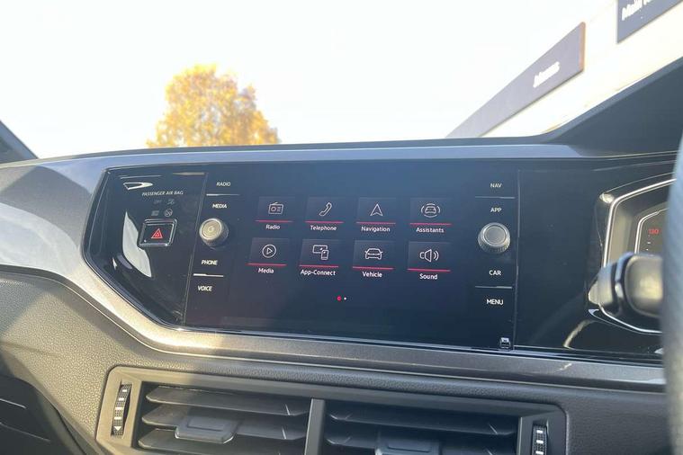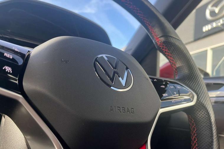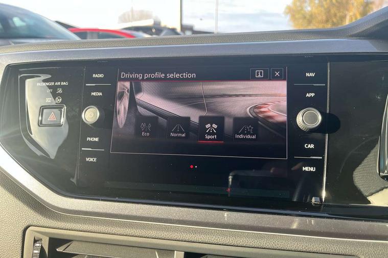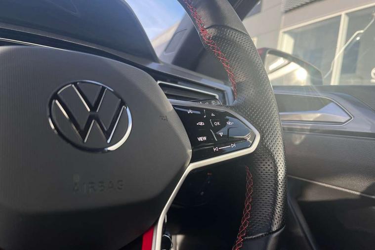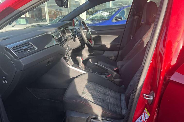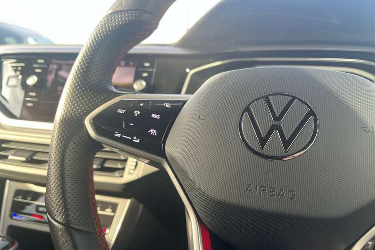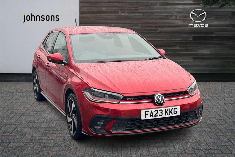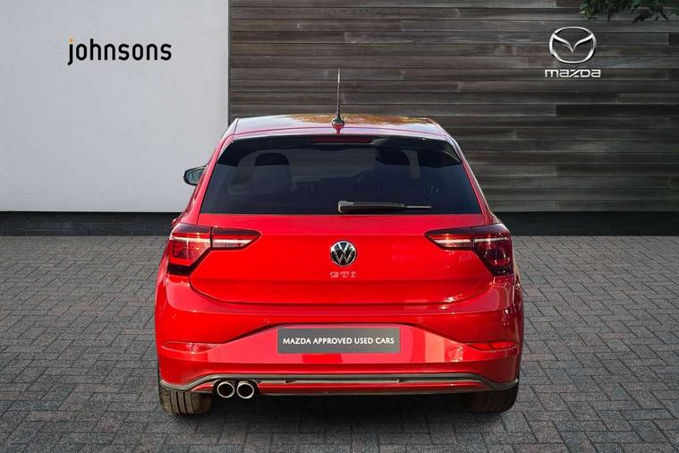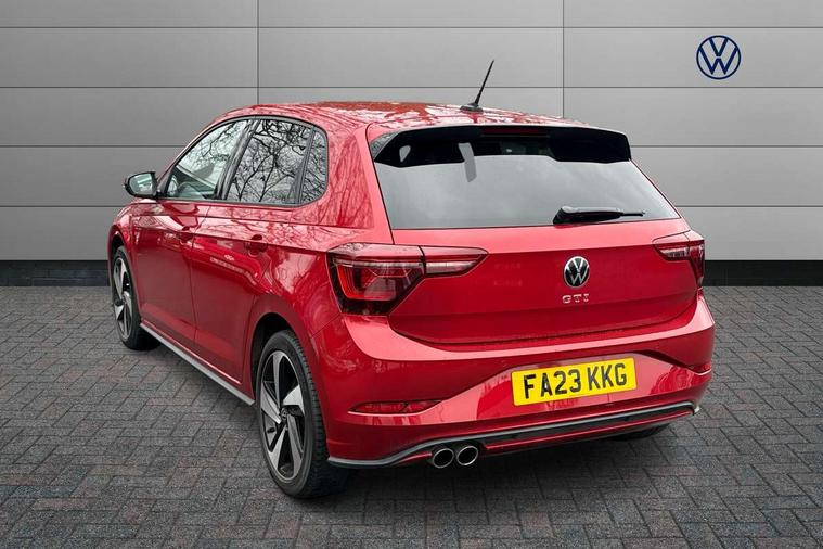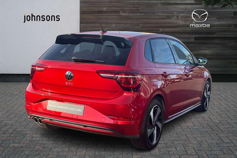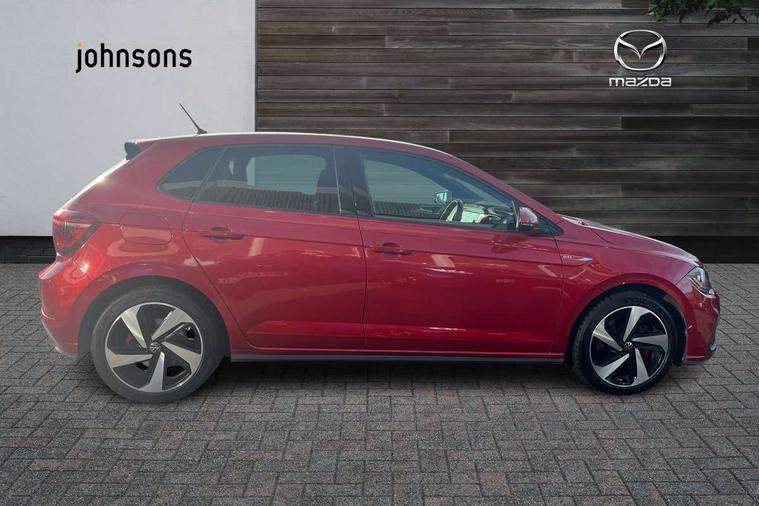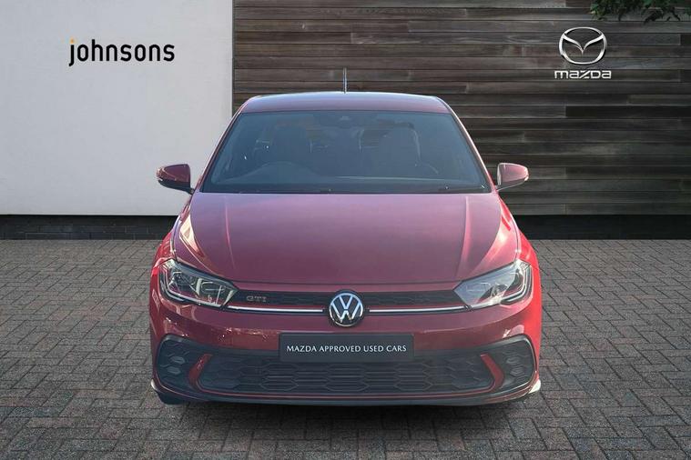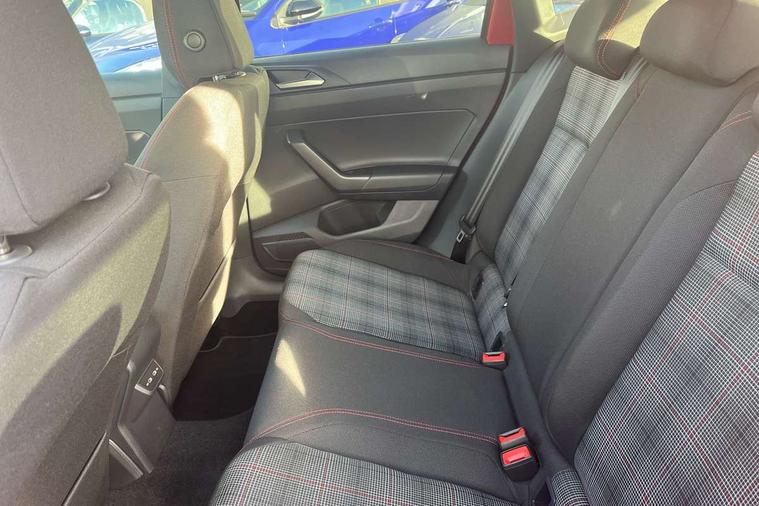 Adaptive cruise control with follow-to-stop and speed limiter, Bluetooth mobile phone interface, Digital Cockpit Pro with 10.25" Display, Driver alert system, Dynamic road sign display, Eco mode, Emergency call service, Power assisted speed sensitive steering, Preparation for We connect and We connect plus, Speedo and rev counter, electronic odometer, trip, service interval display and fuel gauge, Travel Assist - Lane keeping system and traffic jam assist, Travel assist including emergency assist, Trip computer, Warning signal and warning light for front and rear seatbelts not fastened, Washer fluid level indicator, Wireless app connect, Adaptive chassis control, Front wheel drive, Heavy duty rear axle, Rear shock absorpion sports version, Sports select suspension lowered by 15mm, Start-stop system with battery regeneration (recuperation - energy recovery during braking), DAB Digital radio, Diversity antenna for FM reception, Front and rear 6 speakers, Body colour bumpers, Body colour door handles, Electric front windows, Front scuff plates in aluminium with GTI logo, Heat insulating darkened glass in side and rear windows, Heat insulating glass windscreen, Power folding adjustable/heated exterior mirrors and front passenger exterior mirror lowering function, Rear electric windows, Rear fog light, Rear side wing doors, Rear windscreen washer and wiper with interval delay, Sport bumpers with air intakes with honeycomb structure, Third brake light, Twin chrome exhaust tailpipes, 12V power socket in centre console, 2 USB-C ports in the front, 2 USB-C charging sockets on the center console in the rear, 3 rear head restraints, 60/40 split folding rear seat and rear seat bench not split, Air care climatronic air conditoning system with active combination filter and 2-zone temperature control, Black roof lining, Chrome plated radiator grille inserts, air vent surrounds and light switch surrounds, Door and side trim panel, Driver and front passenger seat height adjustment, Driver/passenger sunvisors with illuminated vanity mirrors, Front + rear carpet mats in recycled material, Front centre armrest, Front footwell illumination, Front seat backrest storage pockets, GTI sports gearshift knob in aluminium leather, Handbrake lever handle in leather, Headliner in recycled material, Isofix child seat preparation easy-fit (for two outer rear seats, and front passenger seat) compatible with I-size, LED interior light with switch off delay and dimmer, 2 reading lights front and rear, Luggage compartment cover, Luggage compartment floor, Luggage compartment lighting, Single front passenger seat, Stainless steel pedals, Standard pedal cluster, Three spoke leather wrapped multifunction sports steering wheel with shifting paddles, IQ LED matrix headlights pack - Polo, Light and sight pack - Polo GTI, Sports suspension pack - Polo, 3 point height adj front seatbelts + pretensioners, 3x3 point rear seatbelts, ABS, Driver and front passenger airbag with front passenger airbag deactivation, Drivers and front passengers safety optimised head restraints, ESC (Electronic stability control) + EDL (Electronic Differntial lock) and ASR (Traction control), Extended and predictive pedestrian/ cyclist protection, Front and rear disc brakes with red brake calipers, Front curtain and side airbags with center airbag, Hill hold control, Manual child lock in rear doors, Two tone horn, Tyre pressure loss indicator, Alarm with interior protection, Anti-theft alarm system with interior monitoring, backup horn, and towing protection, Anti-theft wheel bolts, Electronic engine immobiliser, Chrome applications on rotary light, mirror adjustment, window regulator switches, outlet with frame in black, Low rolling resistance tyres,