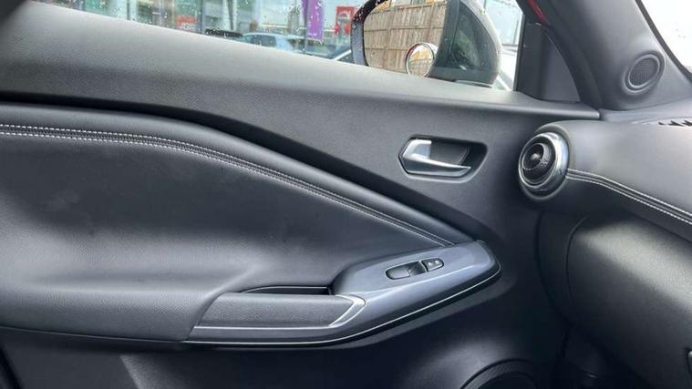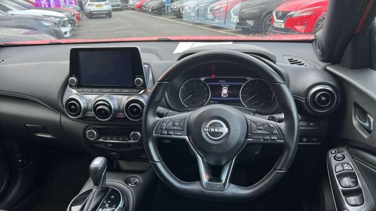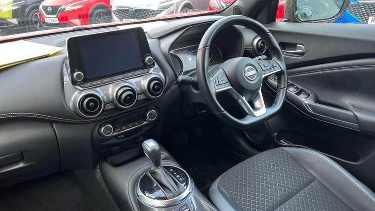 7" full colour TFT screen combimeter, Apple CarPlay and Google Android auto, Drive modes select (Eco, normal and sport), Emergency and breakdown call, Front parking sensor, Idle start/stop system, Intelligent lane intervention, Lane departure warning system, Nissan connect 8" touch screen entertainment system, Nissan connect nav with TomTom traffic, Nissan connect services and Wifi connection, Outside temperature sensor, Power Steering, Rear parking sensor, Traffic sign recognition, Trip computer, Voice recognition, Gasoline particulate filter, 6 speakers, Bluetooth system, USB, Aux-in and 12V socket, DAB Digital radio, Rear console USB port, Auto dimming interior rear view mirror, Auto headlights, Automatic hazard signal with emergency stop signal, Body colour bumpers, Body colour door handles, Electrically adjustable door mirrors with integrated indicators, Follow me home headlights, Front and rear electric window with one touch driver window, Heated and auto folding door mirrors, High beam assist, LED daytime running lights, LED headlamps, LED rear fog lamp, LED rear lamps, Rain sensor windscreen wipers, Rear privacy glass, Rear side wing doors, Rear wiper, Shark fin roof antenna in Pearl Black, Three blink turn signal, 3 height adjustable rear headrests, 3 seat bench in 2nd row, 60/40 split folding rear seat, Automatic climate control, Card holder on driver sunvisor, Cloth upholstery with black and metallic grey syntech leather inserts, Driver and passenger sliding and reclining seats, Driver side rear coat hanger, Driver/passenger sunvisors and vanity mirrors, Front and rear cabin lights, Front armrest, Front door pockets with bottle holders, Front head restraints, Front/rear passenger grab handles, Grey synthetic leather kneepad, Height adjustable driver's seat, Internal chrome door handles, Leather gearshift knob, Leather steering wheel, Luggage board, Luggage space lighting, Monoform sporty seats, Multifunction steering wheel, Rear door bottle holders, Single front passenger seat, Steering wheel mounted gearshift paddles, Telescopic steering wheel adjustment, Two cupholders in front centre console, Two rear isofix child seat anchorage points with top tether, Welcome light and console tray ambient lighting, ABS with EBD and brake assist, Active ride control, Active Trace Control, Driver and passenger airbags, Driver and passenger side airbags, Electric handbrake with auto hold function, Electronic Stability Programme (ESP), Front and rear curtain airbags, Height adjustable seatbelts, Hill start assist, Intelligent emergency braking with pedestrian and cyclist recognition, Rear door child safety locks, Seatbelt reminder for driver/front passenger and rear seats, Single tone horn, Three 3 point rear seatbelts, Traction control, Tyre pressure monitoring system, VDC Dynamic Vehicle Control, Ventilated rear brake discs, Alarm, Immobiliser, Intelligent key and start push button with walk away lock and approach unlock functions, Remote central locking,