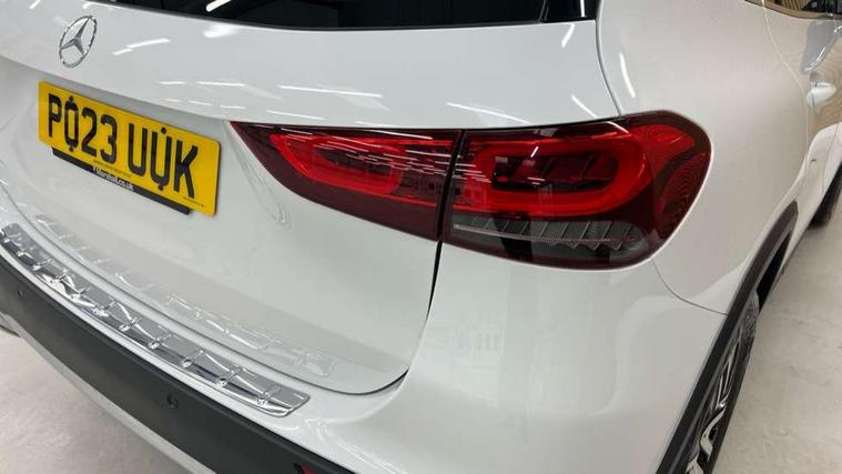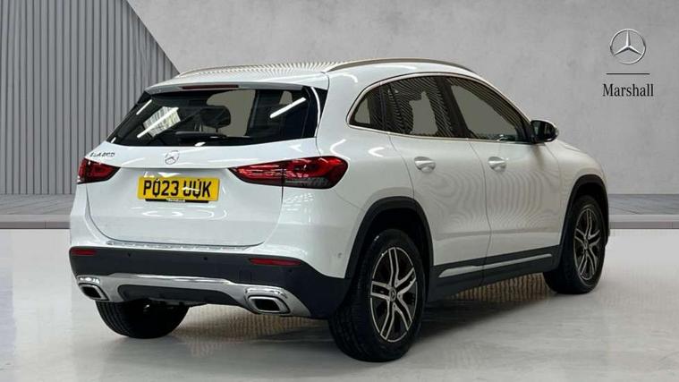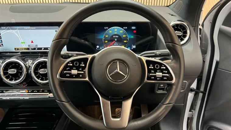 10.25 inch touchscreen central media display, 7 inch digital instrument cluster display, Active lane keeping assist, Attention assist, Cruise control + speed limiter, DYNAMIC SELECT with a choice of driving modes (ECO, Comfort, Sport and Individual), ECO start/stop function, Fluid level warning indicator for fuel, oil, coolant and washer fluid, Hard-disk navigation, Hey Mercedes Voice activation, Lamp failure indicator, Mercedes me connect including emergency call system, accident recovery, breakdown and maintenance management, Mercedes me remote services, Multi function trip computer, Outside temperature gauge, Owners manual and service booklet in English, Pre-installation of private car share, Radio aerial integrated into front and rear windshields, Service indicator (ASSYST), Smartphone integration with Apple CarPlay and Android auto, Speed limit assist, Speed sensitive power steering, Status display for rear seat belts in instrument cluster, Comfort suspension, Rear axle multi-link, 2 USB ports (type C) in rear stowage compartment and one in front of center console, Bluetooth connectivity including audio streaming, DAB Digital radio, MBUX multimedia system, Media interface, Mercedes-Benz sound system - 100W, Adaptive brake lights, Aerial for GPS, Aluminium roof rails, Automatic headlamp activation, Beltline strips and weather strip in chrome, Black grained claddings with chrome parts, Body colour bumpers, Body colour door handles, Body colour door mirrors, Car wash function, Dark chrome front and rear apron trim, Electric front windows, Electric rear windows, Electrically adjustable and heated door mirrors with integrated LED indicators, Exhaust system with dual flow exhaust pipes in chrome (non-functional), Front bumper with underride guard in high gloss chrome, Front door sills with Mercedes-Benz lettering, Heated glass rear windscreen + timer control, Heated windscreen wash system, Interior mirror with black reading lamps and frameless, LED high performance headlamps with integrated LED daytime running lights, LED tail lights in two piece design, LED third brake light, Rain sensor windscreen wipers, Rear fog lights, Rear side wing doors, Rear wiper, Roof spoiler, Simulated body styling underguard in matt chrome, Single lamella radiator grille painted in silver matt with chrome inlay and black dots, 12V power socket in centre console, 3 seat bench in 2nd row, 3 spoke leather multifunction sports steering wheel with chrome elements, 40:20:40 split folding rear seat backrests, Adjustable head restraints, Air conditioning - Two zone thermotronic luxury automatic climate control with display, Artico man-made leather/Bertrix fabric upholstery, Auto Mercedes-Benz child seat recognition sensor, Black roof lining, Comfort seats, Courtesy light in boot, Floor mats in velour, Front centre armrest with stowage, Gearshift paddles, Heated front seats, Illuminated glovebox, Leather trimmed gearknob, Luggage net on driver/front passenger seat backrest, Manually height and reach adjustable steering column, Multi-gesture touchpad control on center console, Single front passenger seat, Stowage compartment in centre console, Stowage compartment with retractable cover, Sunvisors with illuminated vanity mirrors, Twin front cup holders, Two outer rear seat isofix and top tether child seat fixing points, Comfort seat pack - GLA Class, Interior lighting with light and sight pack - GLA, Load compartment pack - GLA, Mirror pack - GLA Class, Parking pack - GLA, 3 rear 3 point seatbelts, ABS with Brake Assist, Active bonnet pedestrain safety measure which detects an impact and raises bonnet by 65mm, Active brake assist includes forward collision warning system with autonomous braking, Adaptive brake assist with hold function and hill start assist, Bonnet with power domes, Brake pad wear warning indicator, Childproof locks manually operated for rear doors and electrically operated for rear power windows, Crash responsive emergency lighting, Driver and passenger head and side airbags, Drivers knee airbag, Dual stage driver/passenger airbags, Electronic parking brake, ESP curve dynamic assist, ESP with ASR, Front and rear seatbelt reminder, Front passenger seat occupancy sensor, Tyre pressure monitoring system, Warning triangle and first aid kit, Window airbags, Alarm system with immobiliser and interior protection -Thatcham category 1, Keyless Go starting function, Remote central locking and crash sensor with emergency opening function, Urban guard vehicle protection, Vehicle key with decorative surround in chrome, Chrome air vent surrounds, Spiral look trim, 18" 5 twin spoke light alloy wheels aerodynamically optimised painted in black with a high sheen finish, Summer tyres, Tirefit tyre sealant kit,