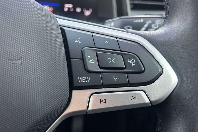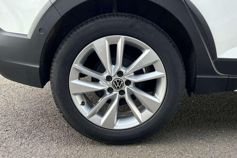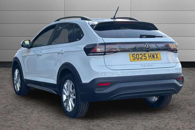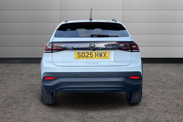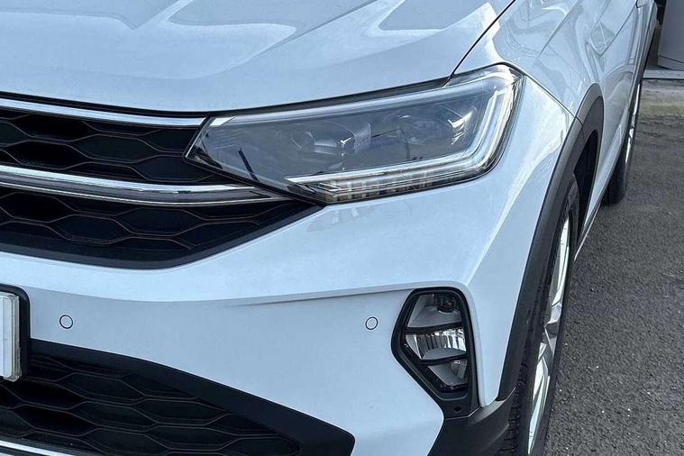 8" Digital cockpit basic display, Advanced driver attention and drowsiness monitor, Dynamic road sign display, e-Call (emergency call), Power Steering, Predictive adaptive cruise control, Rear view camera, Travel assist including emergency assist, Washer fluid level indicator, Wireless Charging including Bluetooth, Start-stop system with battery regeneration (recuperation - energy recovery during braking), Digital radio reception (DAB+), WeConnect plus, Ambient lighting with logo projection, Aspherical driver's exterior mirror, Body coloured bumpers, Body coloured exterior mirror housings and door handles, Electric windows, External USB type C socket and charging sockets, Heat insulating glass windscreen, LED rear combination lamp, LED third brake light, Left convex exterior mirror, Power folding adjustable/heated exterior mirrors and front passenger exterior mirror lowering function, Rear fog light on one side, reversing light on both sides, Rear side wing doors, Rear wash/wipe with intermittent wipe setting, Side windows in heat-insulating glass, from B-pillar and rear window dark tinted, 'Slash/ Austin' Cloth upholstery, 12V socket in centre console, 2 front reading lights, 3 rear head restraints, 3 seat bench in 2nd row, Black carpets, Ceramique headliner, Child seat anchor for child seat system i-Size, 2x top tether and child seat anchor in front on front passenger side, Door and side trim panels in titan black, Driver and front passenger seat height adjustment, Front centre armrest, Handbrake lever handle in leather, Height and reach adjustable steering wheel, Leather trimmed gear knob, Leather wrapped multifunction steering wheel, Luggage compartment floor, Luggage compartment light, Lumbar support for driver's and front passengers seat, Seat covers in titanium black, Single front passenger seat, Split folding backrest with centre armrest and unsplit rear seat bench, Storage compartment under front seats, Sun visors with illuminated vanity mirrors, Titanium black instrument panel, Chrome Package - Taigo, Drivers assistance package - Taigo, Light and sight pack - Taigo, 2 x 3-point seatbelts/outer rear seats with ECE label, 3-point seat belts in front with pretensioner and height adjustment, 3-point seatbelt for centre rear seat, Driver and front passenger airbag with front passenger airbag deactivation, Driver and front passenger safety-optimised head restraints, Electronic stability control, Extended and predictive pedestrian/ cyclist protection, Front and rear disc brakes, Front curtain and side airbags with center airbag, Hill start assist, Manual rear child locks, Single tone horn, Tyre pressure loss indicator, Anti-theft alarm system with interior monitoring, backup horn, and towing protection, Keyless locking and starting system keyless access with safelock, Black (slush) Dashboard, Lava stone black gloss/matt decorative inserts in dash and front door panels, Low rolling resistance tyres,
