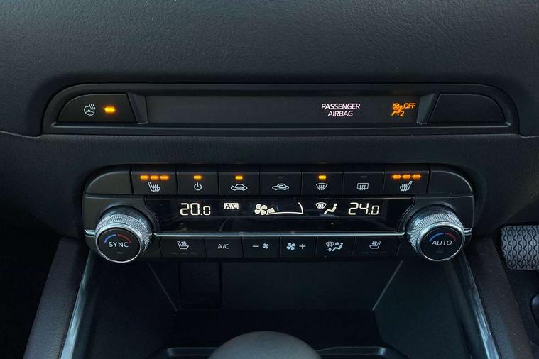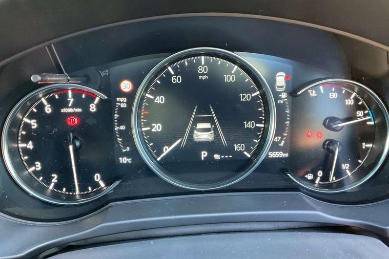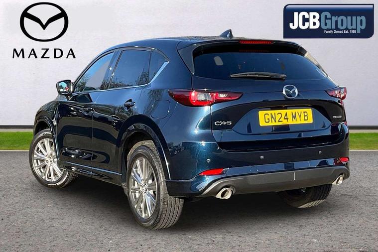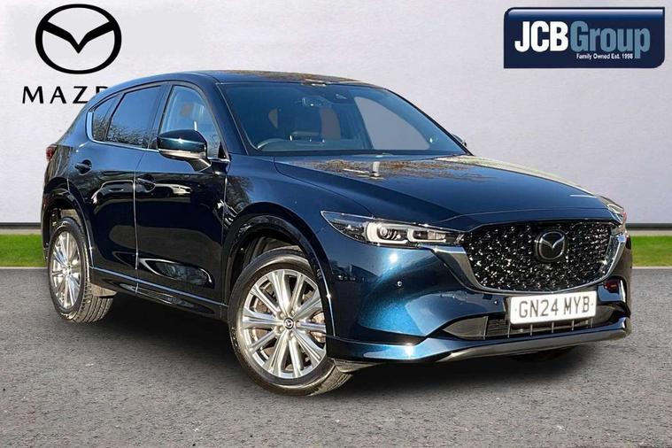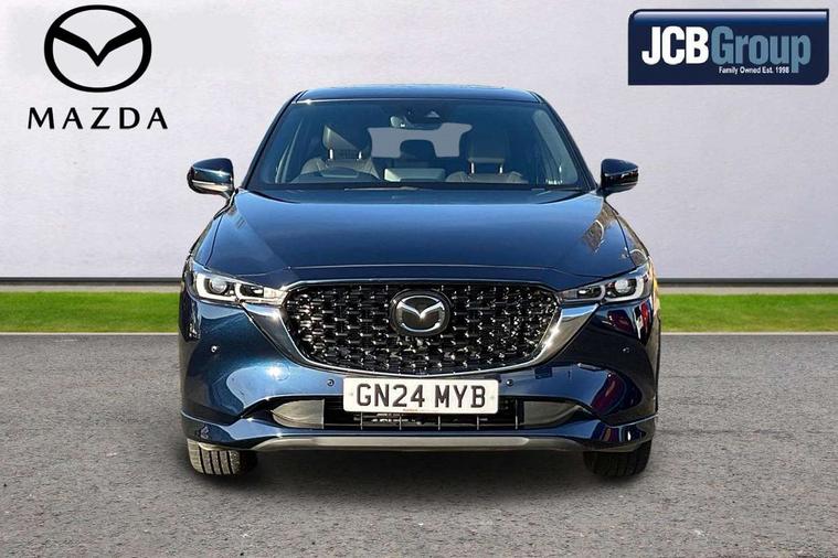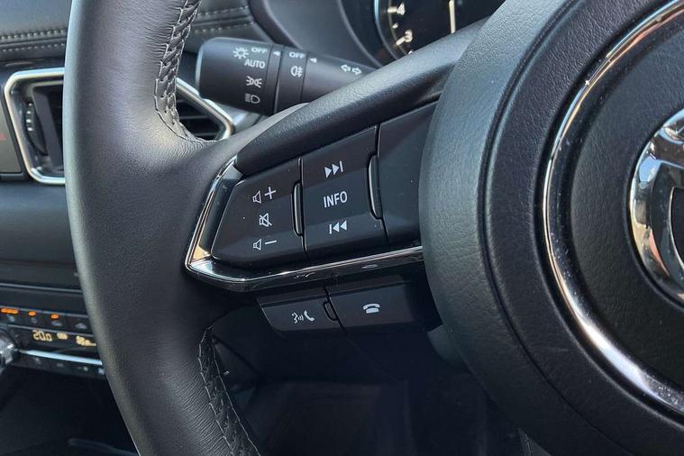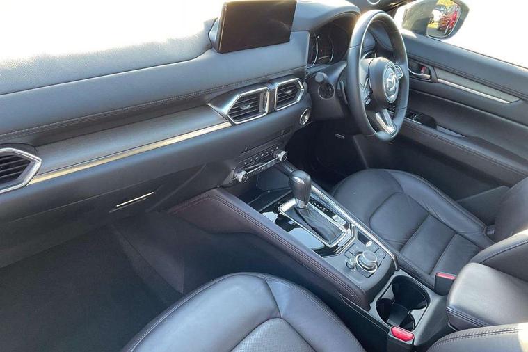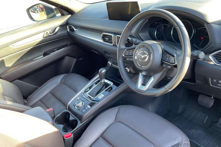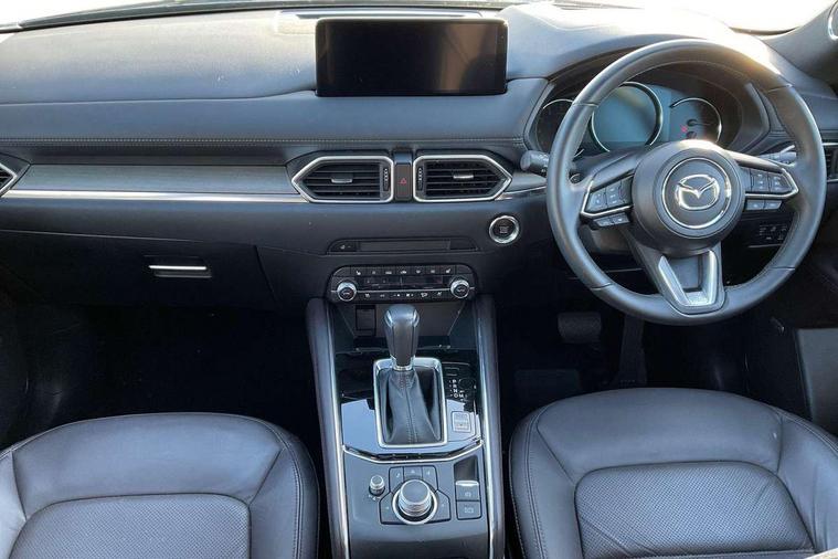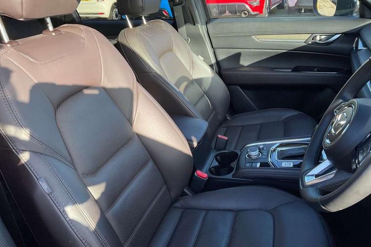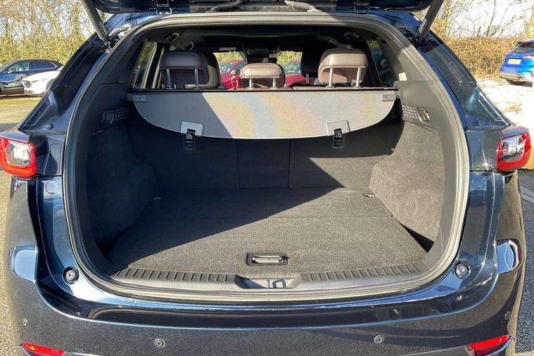 10.25" display with Mazda Connect infotainment, 360 degree surround camera, 7" colour TFT display, Advanced blind spot monitoring, Bluetooth connectivity with voice control, Collision prevention assist, Connected services, Cruising Traffic Support, Drive mode selector, Driver attention alert system, Electric power steering, Emergency stop signalling system, Engine start/stop button, Forward collision warning, Front and rear parking sensors, Integrated navigation system, Intelligent speed assist, Lane departure warning system, Lane keep assist, Power liftgate, Qi wireless phone charging, Radar cruise control with Stop and Go, Rear cross traffic alert, Service indicator, Traffic sign recognition (TSR), Trip computer, Windscreen projected colour active driving display (HUD) with memory, Wireless apple car play/android Auto, Cylinder Deactivation, i-stop, AM/FM radio, Bluetooth audio streaming, Bose premium sound system with 10 speakers, DAB Digital radio, Multimedia Commander including separate volume dial, Steering wheel mounted audio controls, Adaptive LED Headlights, Automatic headlights, Body colour door mirrors, Body colour roof spoiler, Body coloured front and rear lower bumper mouldings, Body coloured tire arch and side mouldings, Coming/leaving home lighting function, Door mirror integrated indicators, Dual large chrome tailpipes, Dusk sensitive headlamps, Electric front/rear windows with one touch auto up/down, Frameless auto dimming interior rear view mirror, Front grille in gloss black finish, Front grille in gloss black with black accent + chrome signature wing, Gloss black B and C pillars garnish, Gloss black front grille accent, Intermittent rear wash/wipe, LED auto levelling, LED daytime running lights, LED front fog lights, LED third brake light, Power folding and heated door mirrors, Power tilt/slide sunroof, Privacy glass (rear side windows only), Rain sensing front wipers, Real wood inlay dashboard panel, Rear side wing doors, Scuff plates, Shark fin antenna, Signature LED rear combination lights, Variable intermittent front wash/wipe, Vinyl with real wood inlay door trim panel, Windscreen wiper de-icer, 12v electrical power outlet, 3 seat bench in 2nd row, 3 stage heated front seats, 40:20:40 Karakuri fold-flat seat system, 6 way electric adjustable passenger seat, 8 way electric driver seat with lumbar support + memory, Black roof lining, Cargo room flat floor board with waterproof undertray, Driver seat power slide, recline and height adjustment, Driver, Front passenger and two rear grab handles with coat hooks, Driver/passenger front seatback pockets, Driver/passenger sunvisors + illuminated vanity mirrors (drivers with ticket holder), Dual zone climate control, Folding centre armrest with 2 cup holders, Front and rear door pockets, Front centre storage with two cupholders, Front passenger seat power slide, recline and height adjustment, Front seat ventilation, Heated outer rear seats, Heated steering wheel, Humidity sensor, Illuminated glovebox, Interior dome light with integral spotlight, ISOFIX child seat anchorage points attached on outer rear seats, Karakuri tonneau cover, Leather gear knob, Leather steering wheel with unique stitching and chrome centre bezel, Luggage compartment LED lighting, Luggage compartment power outlet, Nappa leather upholstery, Paddle shifts, Rear air vents, Rear headrests, Rear seat recline, Roof mounted sunglasses holder, Single front passenger seat, Three height adjustable head restraints, Tilt/height adjustable steering wheel, USB Connectivity (2x front Type-C, 2x rear Type-B), White interior LED illumination lighting, 3 point front seatbelts with pre-tensioners, 3 rear 3 point seatbelts, ABS, Advanced Smart City Brake Support - SCBS, Child locks on rear doors, Driver and front passenger side airbags, DSTC-Dynamic Stability and Traction Control, Dual front airbags, Electronic brake force distribution, Electronic parking brake with auto hold, ESP, Front and rear curtain airbags, Front passenger airbag deactivation, G-Vectoring control, Hill hold assist, Rear smart city brake support, Seatbelt reminder front and rear, Single stage passenger airbags, Smart brake support with forward obstruction warning, Tyre pressure monitoring system, Automatic door locking when moving off, Deadlock, Immobiliser, Power door locks, Remote central locking, Smart keyless entry, Thatcham Cat.1 alarm, Upper dashboard and door cards wood trim, 19" exclusive design bright alloy wheels, Tyre repair kit,