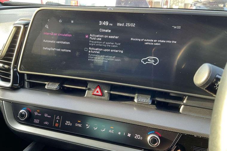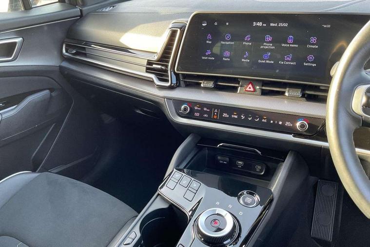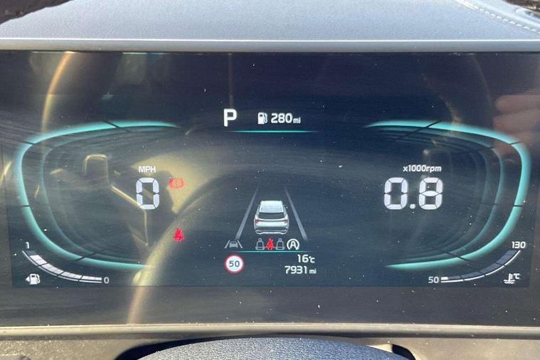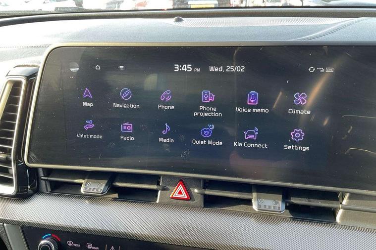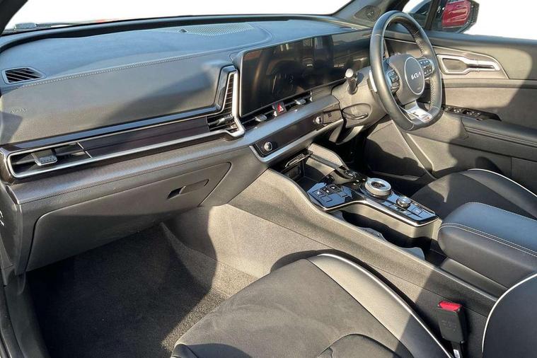 12.3" Touchscreen navigation system, 2 rear USB-C ports, 4.2" driver display screen, Apple car play/Android Auto, Drive mode selector, Driver attention warning, E-call, Emergency stop signalling system, Forward collision avoidance assist (FCA) - city/pedestrian/cyclist/junction covering, Front and rear parking sensors, Highway Driving Assist (HDA), Intelligent speed limit assist, Kia Connect (UVO), Lane Following Assist (LFA), Lane keep assist, Low washer fluid warning, Motor driven power steering, Rear view monitor, Reversing camera system integrated into centre fascia screen, Smart cruise control with stop and go functionality, Speed limiter, Tailgate, Trip computer, Windscreen washer level indicator, 1x USB-C port in front, 6 speaker audio system, Bluetooth audio streaming, DAB Radio with MP3, Steering wheel mounted audio controls, USB C type charging ports on centre console, USB port for connection of a media device, All round electric windows with drivers and front passenger auto up/down function, Auto dimming rear view mirror, Automatic headlight control system, Automatic window defogger, Black and body coloured bumpers, Body colour exterior door handles, Body colour radiator upper garnish and door garnish, Electrically adjustable/heated/folding door mirrors with LED indicators, Front and rear chrome skid plates, Gloss black door mirrors, Gloss black radiator grille, Gloss black side sill and wheel arch body mouldings, Glossy black roof rack, GT-Line exterior styling, Heated rear window, High beam assist, Interior electrochromic mirror, LED daytime running lights, LED front fog lamps, LED headlamps (low and high beam - MFR type), LED High mounted stop light, LED rear combination lamp, Rain sensing wipers with aero blades, Rear fog lamp, Rear privacy glass, Rear side wing doors, Rear spoiler, Rear wiper, Satin finished beltline, Silver window surround, Tinted rear glass, Trailer stability assist, 12V power socket in front centre fascia and luggage compartment, 2nd row personal lamps, 3 seat bench in 2nd row, 3 x passenger assist grips, 40/20/40 split folding rear seat, All-round height adjustable headrests, Alloy pedals, Automatic air conditioning, Black headlining, Centre console storage box, Cupholders in rear armrest, Door courtesy lamps, Drink holder at centre armrest, Driver and front passenger side sunvisors with illuminated vanity mirrors, Driver's seat manual height adjust, Drivers seat power lumbar support, Front and rear door storage, Front cabin, rear & luggage compartment lights, Front passenger's seat manual height adjustment, Front seat and rear pockets, Gear shift indicator, Glovebox illumination, GT-Line Interior Styling, Heated front seats, Heated steering wheel, ISOFIX Child seat top tethers and anchor fixings outer rear seats, Leather steering wheel, Luggage area load cover, Luggage area parcel shelf, Luggage board, Luggage compartment under floor storage, Luggage net with hooks, Manual adjust steering wheel, Metal paint interior door handles, Overhead console lamp, Paddle shift controls, Rear air conditioning, Rear cabin light, Rear coat hooks, Single front passenger seat, Suede leather upholstery, Ventilation ducts to rear compartment, Active front headrests, All round 3-point seatbelts, Anti-lock braking system (ABS), Dual front side airbags, Dual horn, Dynamic brake control, Electronic parking brake with auto hold function, Electronic stability control with downhill brake control, Front passenger airbag cut-off switch, Front seatbelt pretensioners + load limiters, Height adjustable front seatbelts, Hill start assist control (HAC), Impact sensing auto door unlocking, Multi collision brake assist, Rear airbags, Rear door child safety locks, Rear seat alert system, Seatbelt reminder warning, Traction control, Twin curtain airbags, Twin front airbags, Tyre pressure monitoring system, Vehicle stability management, Customisable automatic door locking, Customisable automatic door unlocking, Door deadlocks, Engine Start/Stop Button with Smart Entry System, Locking wheel nuts, Smart key with motion sensor, Speed sensitive auto door locking, Thatcham category 2 security alarm and immobiliser, Visible vehicle identification number, Aluminium pattern finish centre fascia and door garnish, 19" GT-Line alloy wheels, Tyre mobility kit,