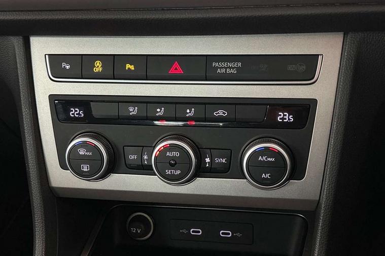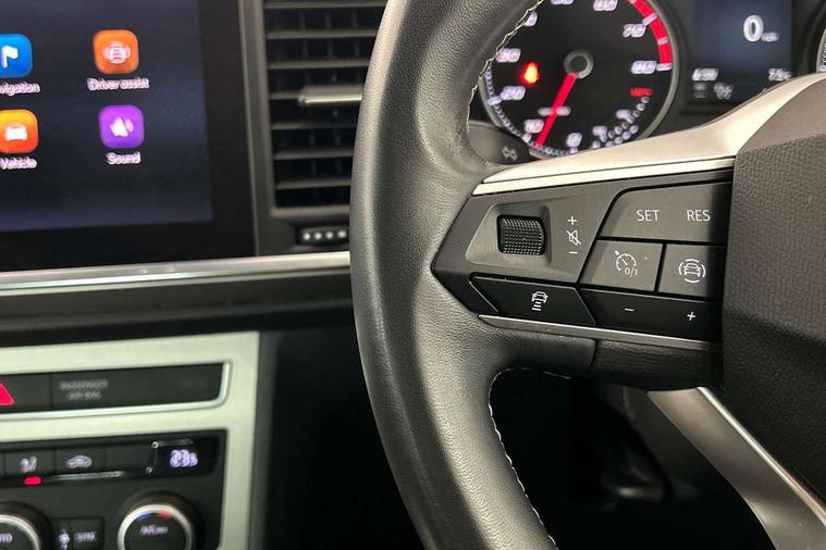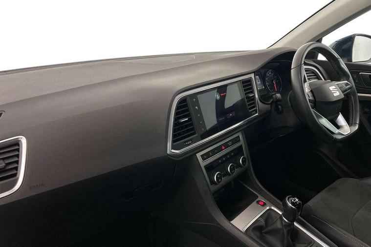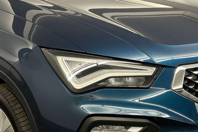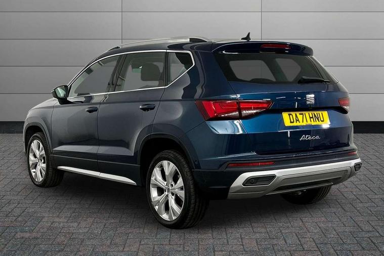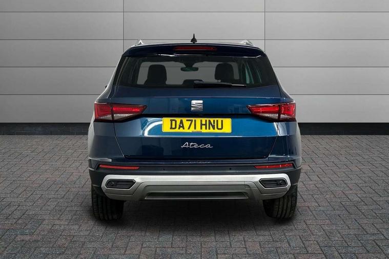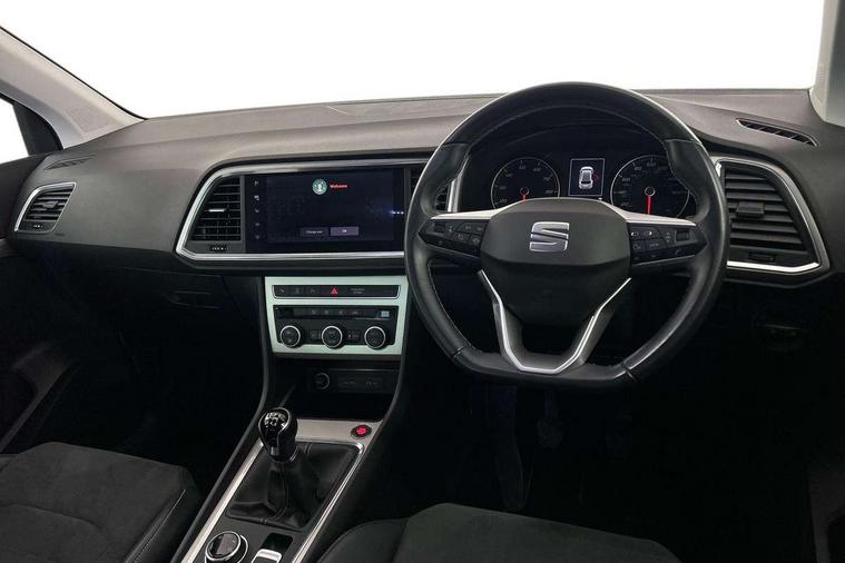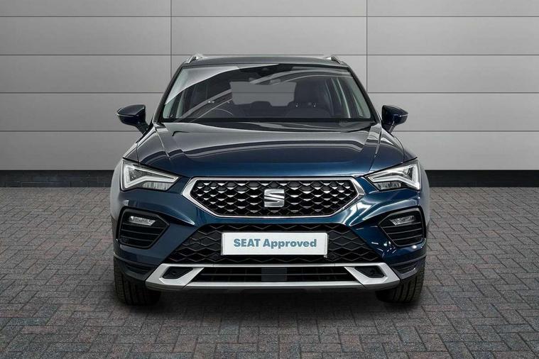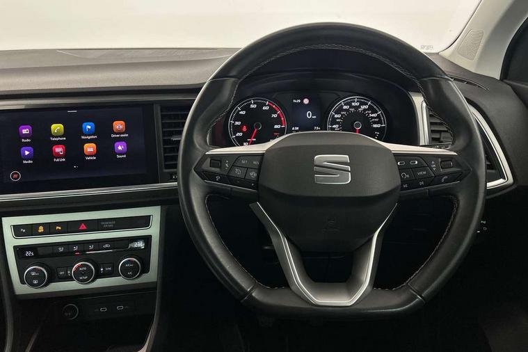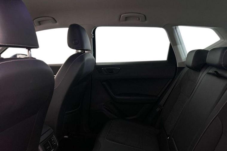 E-call, Outside temperature gauge, Progressive power assisted steering, Rear view camera, SEAT drive profile with driving experience button - Normal, Sport, Eco and Individual mode, steering and throttle response, Self parking functionality (includes front and rear parking sensors), Trip computer, Wireless full link smartphone integration, Wireless phone charger, Steering wheel mounted audio/phone controls, Black simulated exhaust pipes, Body colour bumpers, Body coloured wheel arch surrounds, Chrome front grille frame, Chrome roof rails, Chrome side window trim, Dark tinted rear windows, Daytime running lights, Door mirrors with welcome light silhouette, Dynamic headlight range control with self adjusting whilst driving, Electric adjustable/heated/folding door mirrors, Front and rear electric windows, Front grille hot stamping, Full LED headlamps with lens and LED front fog lamps with cornering function, Illuminated aluminium front door sill, LED rear tail lights with dynamic indicators, Rear fog lights, Rear side wing doors, Rear wash/wipe, Reflex silver side mouldings, 12V socket in front, 3 seat bench in 2nd row, 60/40 split folding rear seat, Dual zone climate control, Front and rear head restraints, Front centre armrest, Front seat back storage pockets, Height adjustable driver and passenger seat with lumbar adjustment, ISOFIX points in outer rear seats with top tether anchorage points, Leather steering wheel and gear knob, Microsuede upholstery with front comfort seats, Rear armrest and easy back seat release mechanism from boot, Single front passenger seat, Storage compartment under driver's seat, Convenience pack - Ateca, Interior lighting pack - Ateca, Navigation system pack with DAB - Ateca, Safe and driving pack - Ateca, 3x3 point rear seatbelts, ABS, Traction control system (TCS), Electronic stability control (ESC) and Electronic differential lock system (XDS), Airbags - Driver and front passenger airbag with deactivation, front side, two curtain and driver's knee airbags, Electric parking brake with auto hold function, Front and rear seatbelt reminder, Hill hold control, Manual rear child locks, Tiredness recognition system, Traction control, Tyre pressure monitoring system, Alarm, Keyless entry, Locking wheel bolts, Chrome interior detailing, 18" Brillaint silver alloy wheels,