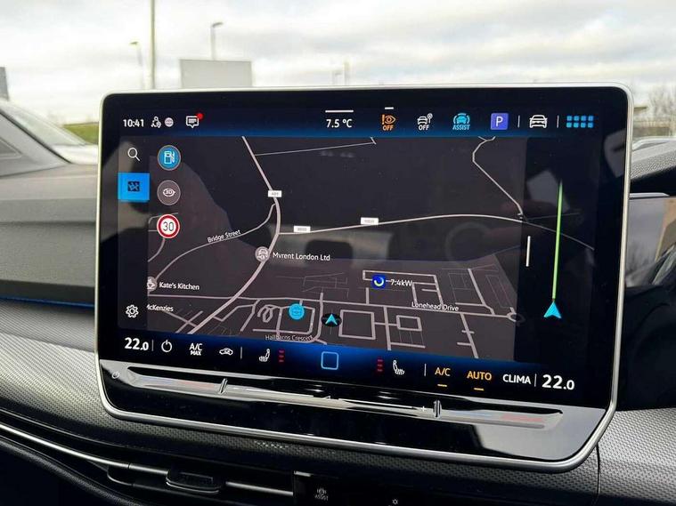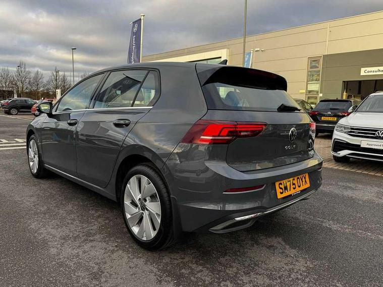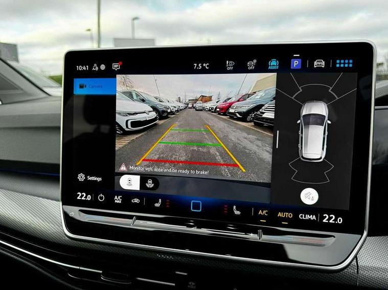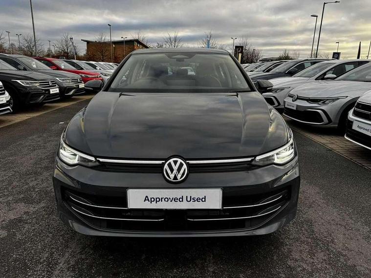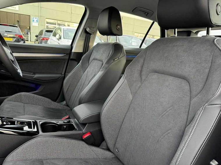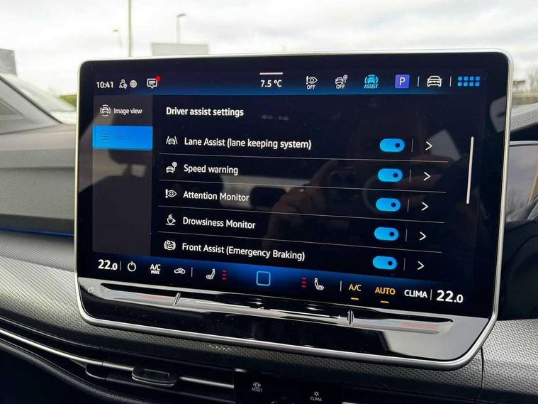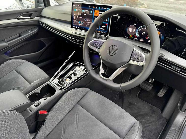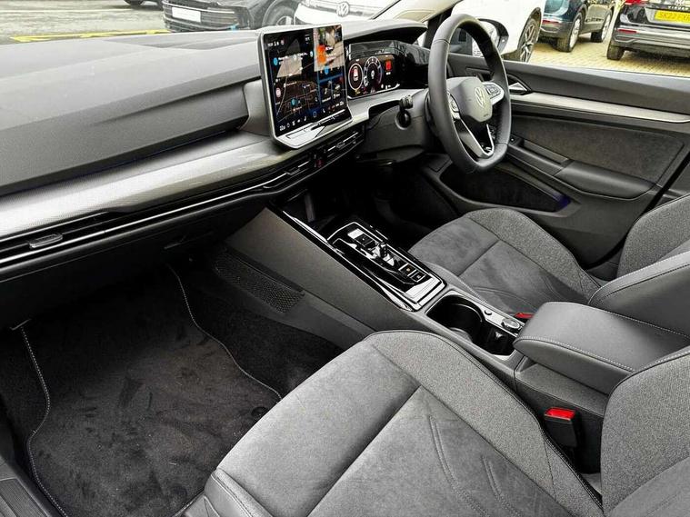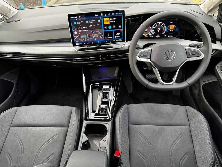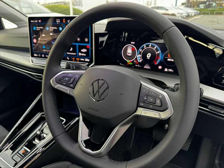 Activated carbon canister, Adaptive cruise control (ACC), Advanced driver attention and drowsiness monitor, Dynamic road sign display, E-Sim card for online connectivity, eCall emergency call system, Multi-color Digital cockpit pro, selection of different info profile possible, Multifunction front facing camera for distance control, Navigation system, Oncoming vehicle braking when turning including swerve support, Side assist blind spot lane change system, rear traffic alert and exit warning system, Speed limiter, Speedo, rev counter, electronic odometer, trip, service interval display, exterior temperature and fuel gauge, Traffic jam assist, Voice enhancer and voice control, Warning signal and warning light for front and rear seatbelts not fastened, We connect plus preparation, We connect preparation, Wireless app connect, Hybrid propulsion system, Petrol Particulate Filter, Start-stop system with battery regeneration (recuperation - energy recovery during braking), XDS electronic differential lock for improved traction and handling, 2 USB C ports in front, 2 USB charging sockets on the centre console in the rear charging capacity upto 45W, Digital radio reception (DAB), Diversity antenna for FM reception, Gaming platform via car app, Infotainment system with 12.9" display, Mobile phone interface with inductive charging feature, 3rd brake light, Automatic headlamp activation with Coming home and Leaving home feature, Body colour bumpers, Body colour door handles, Body colour door mirrors, Chrome trimmed front air intake surrounds, Chrome trims on the side window bottom, Exterior mirrors convex on the left and aspherical on the right, Front and rear electric windows, Heat insulating windshield made of laminated glass, LED separate daytime running light, Rear exhaust tailpipe, Rear fog light on one side and reversing lights on both sides, Rear side wing doors, Rear windscreen washer and wiper with interval delay, Remote electrically foldable door mirrors, puddle lights and reverse activated passenger's door mirror, Welcome light with surround lighting, 12V socket in front centre console, 12V socket in luggage compartment, 3 rear head restraints, 3 seat bench in 2nd row, Air care climatronic 3 Zone automatic climate control with rear air conditioning control panel, Ambient lighting with 30 colour including LED light unit in front footwell with selectable light colour, Art velours cloth upholstery, Chrome plated radiator grille inserts, air vent surrounds and light switch surrounds, Door insert, side trim panel and arm support in leatherette, Front + rear black carpet mats, Front centre armrest, Front head restraints, Front seat lumbar support adjuster, ISOFIX anchors for child seats on outer rear bench seats and on front passanger seat compatible for i-Size, Luggage compartment lighting, Manual height adjustable front passenger seat, Manually height adjustable driver seat, Plastic gear knob, Rear cupholder and loadthough, Single front passenger seat, Soul black instrument panel, Split folding backrest with centre armrest and unsplit rear seat bench, Sports comfort seats in front, Standard pedal cluster, Storm grey roof lining, Sun visors with illuminated vanity mirrors, Driver assistance pack - Golf Estate/Hatchback Auto, 3 point height adj front seatbelts + pretensioners, 3 rear three point seatbelts, ABS, Autonomous emergency braking front assist with pedestrian and cyclist monitoring, Child locks on rear doors, Driver and front passenger airbag with front passenger airbag deactivation, Electronic parking brake with auto hold, ESC (Electronic Stability Control), Extended pedestrian protection measures, Hill start assist, Rear disc brakes, Two tone horn, Tyre pressure loss indicator, Volkswagen roadside assistance, Anti theft wheel bolts, Preparation for alcohol interlock, New brushed dark metal decorative inserts for dashboard and front door panels,