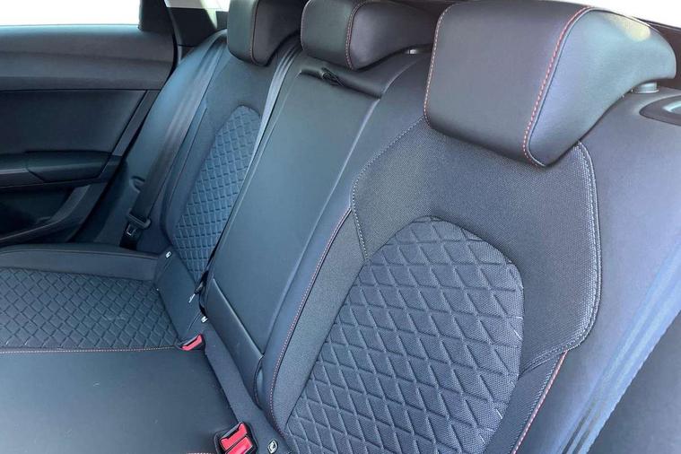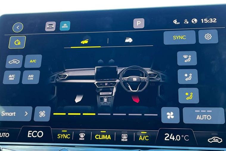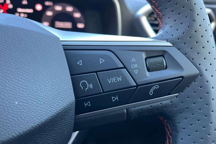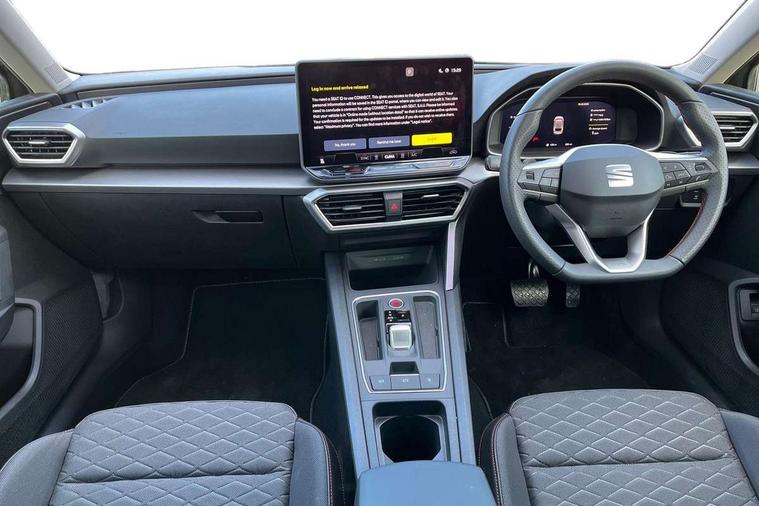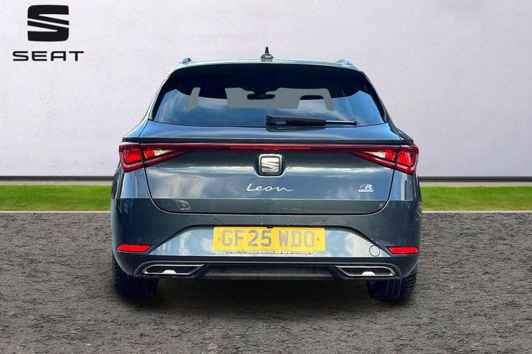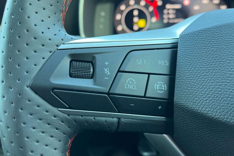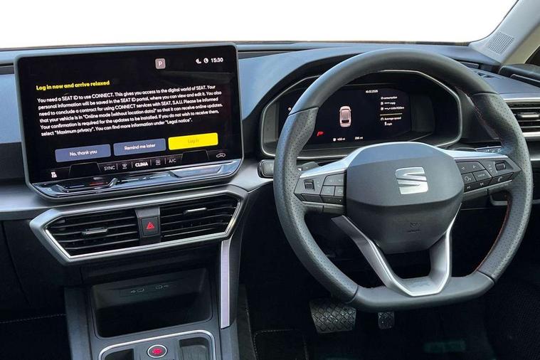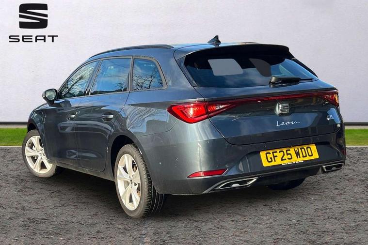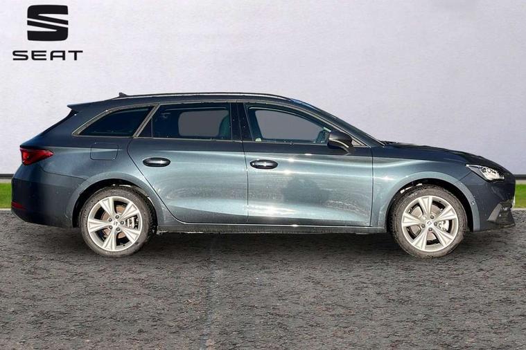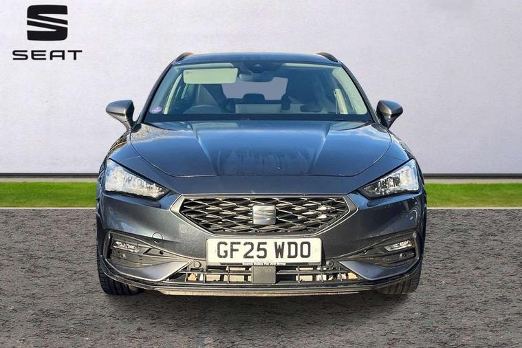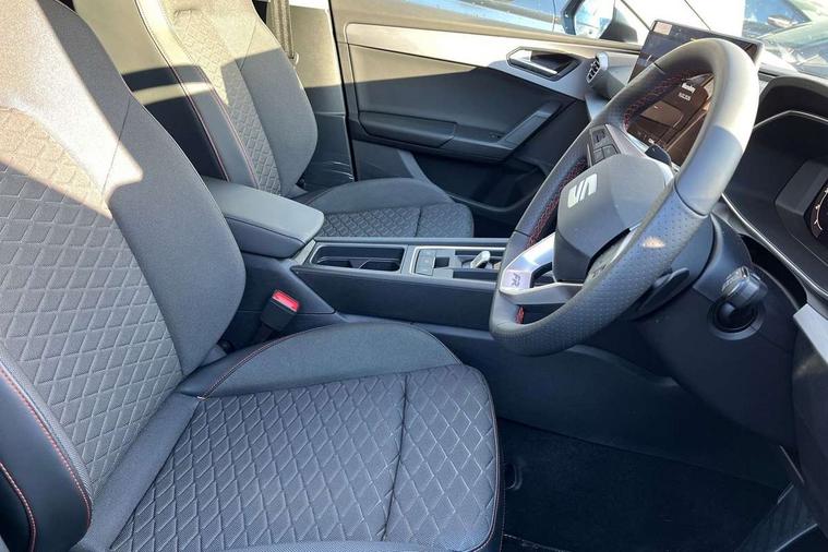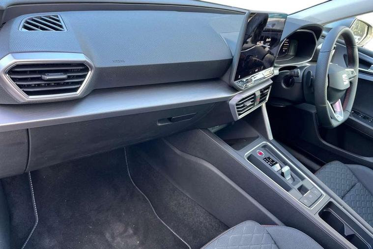 Digital cockpit with multifunction display, Driver attention alert with drowsiness warning, E-call, Front assist with forward collision warning braking reaction to vehicles, pedestrians and cyclists, Full link smartphone integration with Mirror Link, wireless Apple CarPlay and wired Google Android Auto, Intelligent speed assist, Lane assist, Lockable tailgate, Park assist (inc front/rear parking sensors), Power assisted speed sensitive electro-mechanical steering, Rear view camera, RPM, trip computer, outside temp gauge, instrument light brightness, low fuel warning light, lights on reminder, gearshift indicator, SEAT drive profile with 4 modes (Eco/Normal/Sport/Individual), throttle response and gearshift mode, Service interval indicator, Start/stop system with regenerative braking, 10 amp mode 2 charging cable, 16 amp mode 3 charging cable, XDS electronic differential lock and dynamic traction support, 2 front and 2 rear USB-C ports, Auxiliary input socket, Auto dimming rear view mirror, Black roof rails, Body colour door handles, Body coloured bumpers, Cosmo grey exterior mirrors with integrated LED indicators, Dark tinted rear windows, Dynamic headlight range control, Dynamic turn signal lights, Electric front/rear windows, Electrically adjustable, heated and folding door mirrors, FR sports bumper, Illuminated front door sill, LED front fog lamps, LED headlights and LED infinite rear tail lights, LED rear fog lamp with rear coast to coast light, Rear side wing doors, Rear wash/wipe, Separate daytime running light with automatic headlight control and coming home feature, Third brake light, Welcome light silhouette from exterior mirrors, Windshield wiper intermittent control with light/rain sensor, 12v power point in centre console, 3 seat bench in 2nd row, 60/40 split rear bench seat with armrest, Ambient lighting with glovebox, footwell and single monocolour, Driver/passenger manual seat height adjustment, Dust/pollen filter, Front and rear height adjustable headrests, Front and rear reading lights X 4, Front centre armrest, Front seatback storage pockets, Grey headlining, Height/reach adjust steering wheel, ISOFIX points in outer rear seats with top tether anchorage points, Luggage tie-down hooks, Lumbar adjustment for front seats, Single front passenger seat, Sliding boot cover, Sunvisors with covered illuminated mirror, Three zone climate control, Two tone cloth upholstery, Media system plus with navigation - Leon, 3 point seatbelts on all rear seats, ABS, Brake control system - ESC and brake booster, Child proof door locks, Driver and front passenger airbags with front passenger airbag de-activation, front side and curtain airbags, Electronic parking brake, Extended safety system - seat belt tensioner, window closure and hazard lights, Hill hold control, Rear disc brakes, Seat belt reminder for front and rear seats, Tyre pressure monitoring system, Anti theft alarm system with interior monitoring in cab, backup horn and towing protection, KESSY Go (Keyless start), Locking wheel bolts, Wireless phone charging, Chrome interior detailing, 17" Dynamic Bi-spoke alloy wheels with 91W tyres, Emergency tyre repair kit, Tool kit without jack,