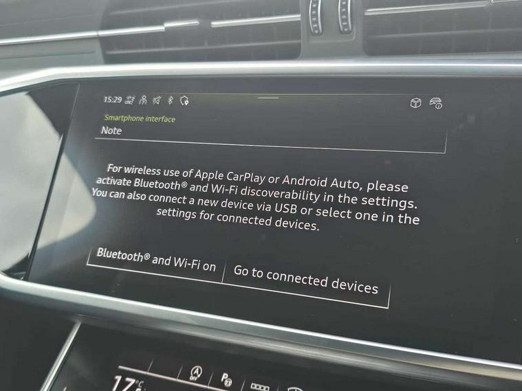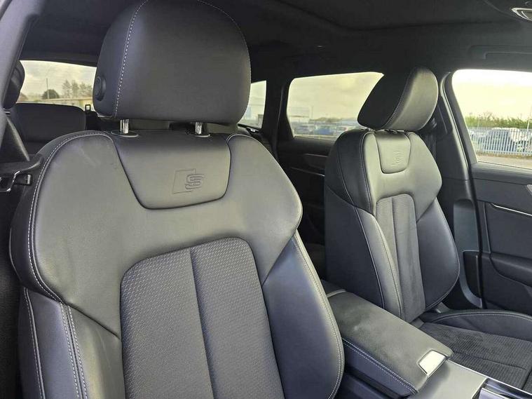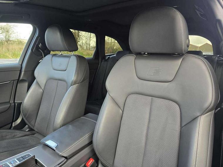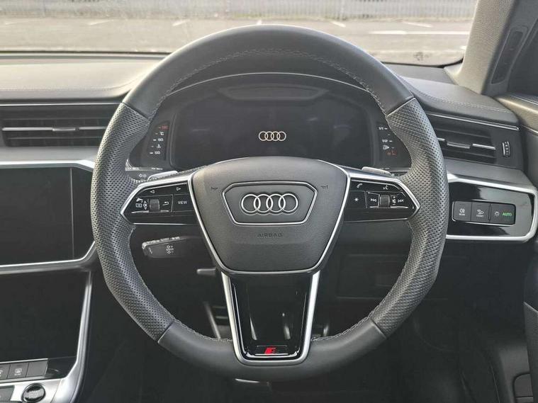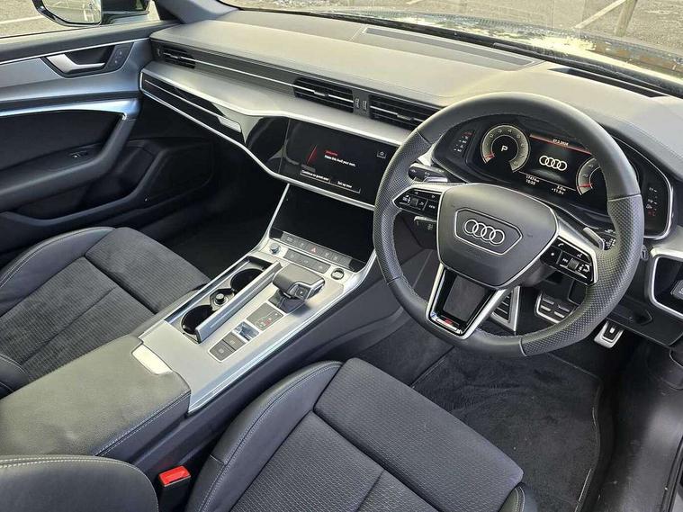 Audi connect safety and service (e-call), Audi connect with Amazon Alexa Integration, Audi drive select, Audi parking system plus - acoustic and visual park assist system for front and rear, Audi virtual cockpit, Automatic start/stop system with coasting functionality, Bluetooth interface, Camera based traffic sign recognition, Lane departure warning system, MMI navigation plus with 10.1" and 8.6" touch screens, Power operated tailgate, Progressive steering, Rear view camera, Service interval indicator, Smartphone interface includes wireless Apple carplay/Android Auto, Voice control system, Sports suspension, Audi front music interface, Audi sound system, Auxiliary input socket, DAB Digital radio, USB connection, Aluminium roof rails, Body colour rear roof spoiler, Body coloured door mirrors, Electric front/rear windows, Electrically adjustable heated and folding + automatically dimming exterior mirrors with memory function, Frameless auto dimming interior rear view mirror, Front intermittent wipers, Heat insulating darkened glass in side and rear windows, Heat insulating glass in windshield, LED rear lights with dynamic indicators, LED signature front daytime running light, LED third brake light, Matrix LED headlights, Matt black rear diffuser with diffuser strip and tailpipes in chrome, Matt black side air intake grille with inlay in matt aluminium, Privacy glass, Radiator grille in anthracite black matt, single frame in chrome and horizontal struts in matt aluminium silver, Rain and light sensors, Rear side wing doors, Rear wiper, 2 zone deluxe electronic climate control, 3 spoke high multi-function perforated leather steering wheel with contrast stitching and shift paddles, 40/20/40 split folding 3 rear seat bench in 3 parts with rear centre armrest, Audi phone box light, Black cloth headlining, Electrically adjustable front seats including seat height, fore/aft position, backrest angle and 4-way lumbar with memory for driver's seat, Front and rear floor mats, Front centre armrest, Front head restraints, Heated front seats, Height/reach adjust steering wheel, Illuminated door sill trims with S logo, Illuminated sun visors with vanity mirrors, ISOFIX child seat mounting and Top Tether with front passenger airbag deactivation, Leather gear knob, Luggage compartment system, Rear headrests, Single front passenger seat, Stainless steel pedals and foot rest, Tool kit and car jack, LED Interior Ambient Lighting Pack - A6, Non smoking pack - A6, S line exterior style pack - A6, 3 point seatbelts on all seats, Airbags - Front side, front and rear including head, Audi pre-sense front, EBD - Electronic brakeforce distribution, Electromechanical parking brake, Electronic Stability Control (ESC) including ABS, ASR and EDL, Extended pedestrian protection measures, Manual child proof rear door locks, Seatbelt monitoring, Tyre pressure warning light, Warning triangle and first aid kit, Anti theft alarm with tow away protection, Anti-theft wheel bolts and wheel loosening detection, Immobiliser, Keyless Go, Remote central locking, Matt brushed aluminium inlays,