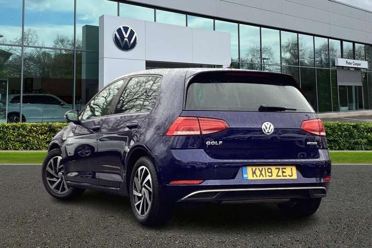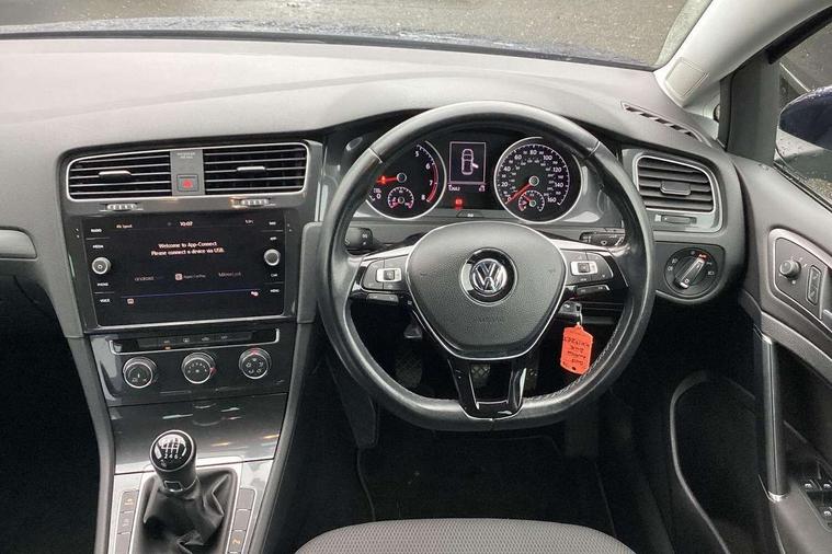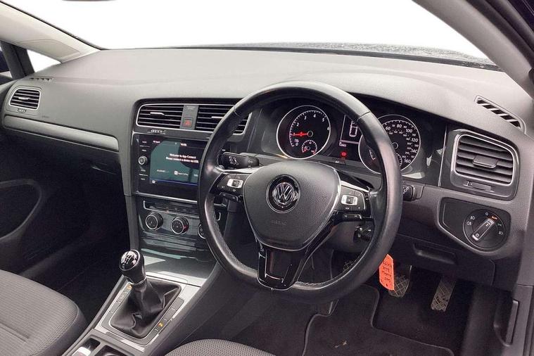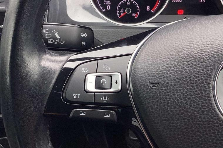 'Lights On' Reminder warning buzzer, ACC - Adaptive cruise control with front assist, forward collision warning, distance monitoring, city emergency brake and speed limiter, Bluetooth telephone and audio connection for compatible devices, Brake pad wear indicator warning light, Driver alert system, Driver profile selection, Driving Mode Selection with four preset modes - Eco, normal, sport or individual modes, Instrument cluster in white, Multifunction computer with visual gear change recommendation for fuel consumption, Power assisted speed sensitive electro-mechanical steering, Push tank flap, Speed limit display, Speedo, rev counter, electronic odometer, trip, service interval display, exterior temperature and fuel gauge, Stop/start system, Warning buzzer and light for front seatbelts unfastened, Battery regeneration during braking, XDS electronic differential lock, Composition media system, DAB Digital radio receiver, Driver Personalisation profile selection, MP3/WMA compatability, Multi device interface (MDI) with USB connection, Personalisation 1.1 profile for media, Premium USB cable in choice of either Apple or Android smartphone compatibility, SD card slot, SMS Functionality, USB and SD card connectivity, Black front air intake and radiator grille with chrome insert, Black rear diffuser, Body colour bumpers, Body colour door handles, Body colour door mirrors with integrated indicators, Dusk sensor + automatic driving lights, Electric front windows, Electric rear windows, Electrically adjustable and heated door mirrors, Fully galvanised body, Heated rear windscreen, Hidden exhaust pipe, High level 3rd brake light incorporating LED Technology, LED daytime running lights, LED front fog lights with static cornering light function, Rear fog lamp, Rear tinted glass 65% light absorbing from B pillar backwards, Rear window aerial, Rear window wash/wipe with intermittent wipe, Reflectors in all doors, Tailgate with integrated rear roof spoiler, Windscreen wipers/ intermittent wipe + 4 position delay, 12V socket in luggage compartment, 3 rear headrests, 4 load lashing points in luggage compartment, 60/40 split folding rear seat backrest, Auto fold down lever in rear seat backrest, Bag hook in luggage compartment x 2, Cooled glovebox, Cupholder cover, Dust/pollen filter, Front and rear reading lights incorporating LED technology, Front centre armrest with storage compartment and two rear air vents, Front seat back storage pockets, Grab handles front x 2, rear x 2 with integrated coat hooks, Height and reach adjustable steering wheel, Illuminated vanity mirrors, Instrument lighting white adjustable panel illumination, Interior light delay, Isofix preparation for 2 rear child seats, Load through provision with rear centre armrest and cupholders x2, Luggage compartment lighting, Overhead storage box, Passenger underseat drawer, Pearl grey headlining, Storage box in luggage compartment, Storage compartment in roof console with cover, Storage compartments in centre console, Storage compartments in front doors, Storage compartments in rear doors, Stowable luggage compartment cover, Sun visors, Variable boot floor, height adjustable and removable, Convenience Pack - Golf, Light and Sight pack - Golf, Mirror pack - Golf, 3 rear three point seatbelts, Airbags - Driver's and front passenger's, curtain airbag, Driver's knee, front side impact and passenger's airbag deactivation switch, Anti-lock Braking System (ABS) with Hydraulic Brake Assist (HBA), Automatic post collision braking system, Child locks on rear doors, Driver/Passenger optimised head restraints, Electronic parking brake with auto hold, Electronic stability control (ESC) including Electronic differential lock (EDL) and ASR (Traction control) with deactivation via infotainment system, Front ventilated disc brakes and rear disc brakes, Pre crash preventive occupant protection, Three point height adjustable front seatbelts with tensioners, Tyre pressure loss indicator, Alarm with interior protection and deactivation via infotainment system, Electronic engine immobiliser, Remote central locking with 2 remote folding keys, Brushed dark silver decorative inserts in dash and door panels, Chrome plated air vent surround, Chrome plated electric mirror adjustment light switch surround, Polar night black centre console, Steel space saver spare wheel,