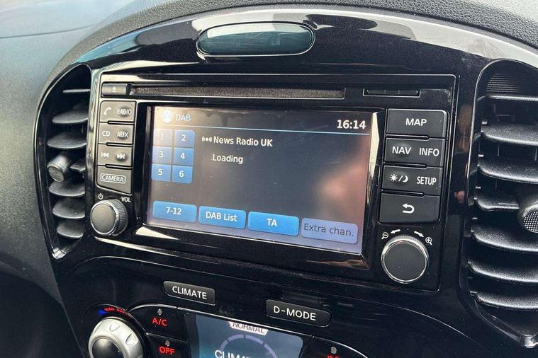 Bluetooth system, Colour rear view camera, Cruise control + speed limiter, Electric speed sensitive power steering, Nissan connect sat nav system, Push button starter, Service interval indicator, Trip computer, 6 speakers, Aux input, DAB Digital radio, Steering wheel mounted audio controls, Stereo radio/CD player and MP3 facility, USB port, 2 speed wipers+variable intermittent wipe, Automatic headlights, Body colour bumpers, Body colour door handles, Electric door mirrors, Electric folding door mirrors, Electric front/rear windows, Front fog lights, Heated door mirrors, LED daytime running lights, Privacy glass, Rain sensor, Rear wiper, 12V socket, 60/40 split folding rear seat, Artificial leather/suede upholstery, Climate control, Front armrest, Front cupholders x 2, Front door pockets with bottle holders, Front head restraints, Front seat belt pre-tensioners with load limiters, Gear shift indicator, Glovebox, Height adjustable driver's seat, Internal chrome door handles, Isofix child seat preparation, Leather steering wheel and gear knob, Luggage area under floor storage box, Map reading lamp, Passenger seat back pocket, Pollen filter, Rear headrests, Rear tonneau cover integrated into tailgate, Sports seats, Steering wheel rake adjustment, ABS + EBD + EBA, Child locks on rear doors, Driver and passenger airbags, Driver and passenger side airbags, ESP + traction control, Front and rear curtain airbags, Height adjustable front seatbelts, Passenger airbag deactivate switch, Three 3 point rear seatbelts, Tyre pressure monitoring system, VDC Dynamic Vehicle Control, Warning triangle and first aid kit, Alarm, Immobiliser, Intelligent Key, Remote central locking, 17" Sport alloy wheels, Tyre repair kit,