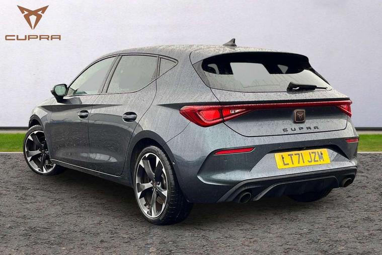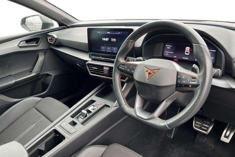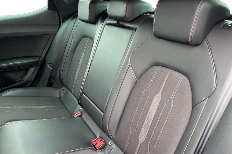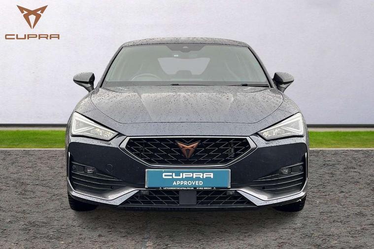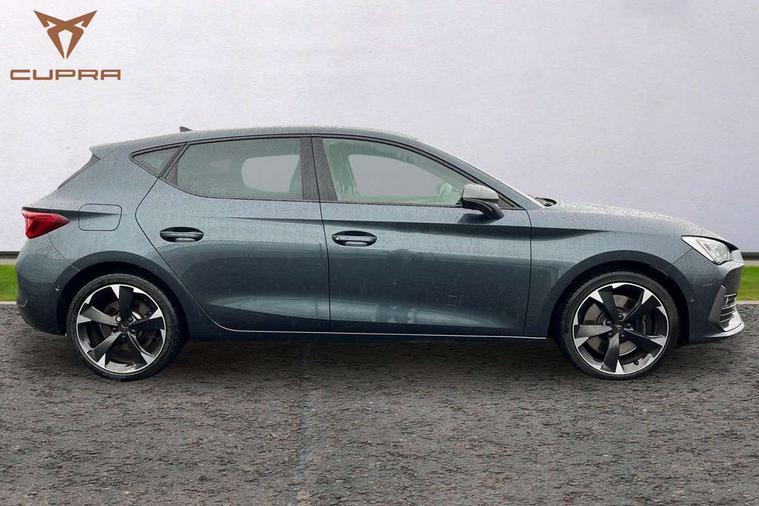 CUPRA drive profile selection with 4 modes (Comfort/Cupra/Sport/Individual), throttle response and gearshift mode, Digital cockpit, E-call, Electro mechanical speed sensitive power steering, Front assist with forward collision warning braking reaction to vehicles, pedestrians and cyclists, Full link smartphone integration with Mirror Link, wireless Apple CarPlay and wired Google Android Auto, Lane assist, Lockable tailgate, Park assist (inc front/rear parking sensors), Rear view camera, RPM, trip computer, outside temp gauge, instrument light brightness, low fuel warning light, lights on reminder, gearshift indicator, Service interval indicator, Start/stop system with regenerative braking, Sports suspension, XDS electronic differential lock and dynamic traction support, 7 speakers, Auxiliary input socket, Auto dimming rear view mirror, Body colour door handles, Body coloured bumpers, Cupra sports bumpers, Dark tinted rear windows, Electric front/rear windows, Electrically adjustable, heated and folding door mirrors, LED front fog lamps with cornering function, LED headlights and tail lights with dynamic turn signals, welcome light silhouette from exterior mirrors and dynamic headlight range control, LED rear fog lamp, Rain sensing wipers, Rear coast to coast lighting, Rear diffuser with twin exhaust pipe on each side, Rear side wing doors, Rear wash/wipe, Separate daytime running light with automatic headlight control and coming home feature, Third brake light, 12v power supply in centre console, 3 seat bench in 2nd row, 5 headrests, 60/40 split rear bench seat with armrest, Ambient lighting (glovebox, footwell, ambient lighting multicoloured), Black headlining, CUPRA Leather flat bottomed, heated, perforated steering and gearshift paddles, Cupra sports pedals, Driver/passenger manual seat height adjustment, Dust/pollen filter, Folding boot cover, Four x USB Type C ports, Front and rear reading lights X 4, Front centre armrest, Front seats manual lumbar adjustment, Height/reach adjust steering wheel, Illuminated interior front door sills, Interior wraparound lighting, ISOFIX points in outer rear seats with top tether anchorage points, Jack and tool kit, Luggage tie-down hooks, PVC/Cloth upholstery with copper stitching + Cupra embossed logo on headrest, Single front passenger seat, Sports bucket seats, Storage pockets on rear of front seats, Sunvisors with illuminated mirror, Three zone climate control, Media system plus with navigation pack - Leon Cupra, 3 point seatbelts on all rear seats, ABS, Brake control system - ESC and brake booster, Child proof door locks, Cupra black brake calipers, Driver and front passenger airbags with front passenger airbag de-activation, front side and curtain airbags, Electronic parking brake, Extended safety system - seat belt tensioner, window closure and hazard lights, Hill hold control, Rear disc brakes, Seat belt reminder for front and rear seats, Tiredness recognition system, Tyre pressure monitoring system, Anti theft alarm system with interior monitoring in cab, backup horn and towing protection, KESSY Advanced - Keyless start, keyless entry, Locking wheel bolts, Chrome and copper interior detailing, 18" Machined sport black and silver alloy wheels with 92Y tyres, Space saver spare wheel,