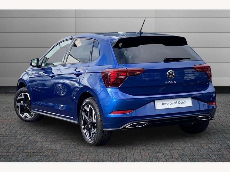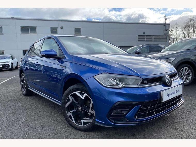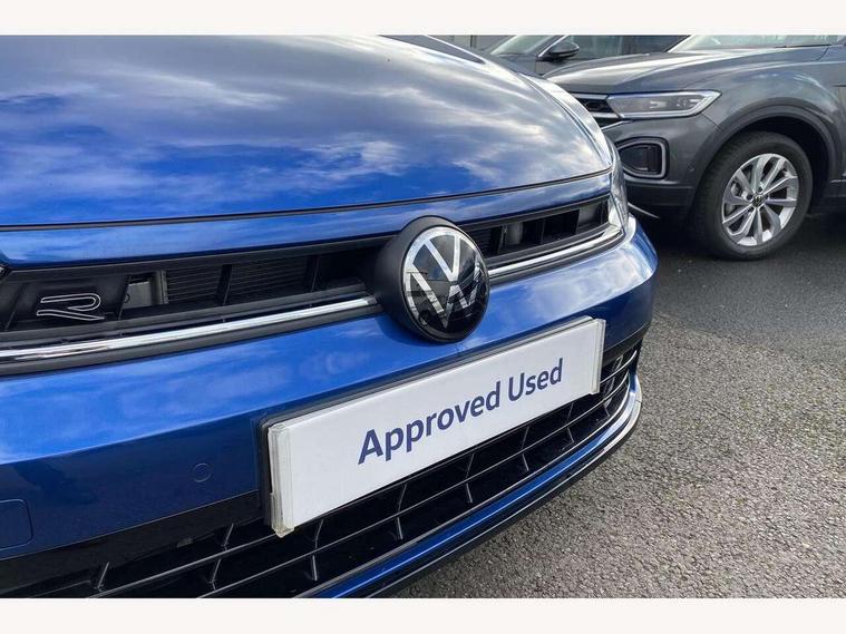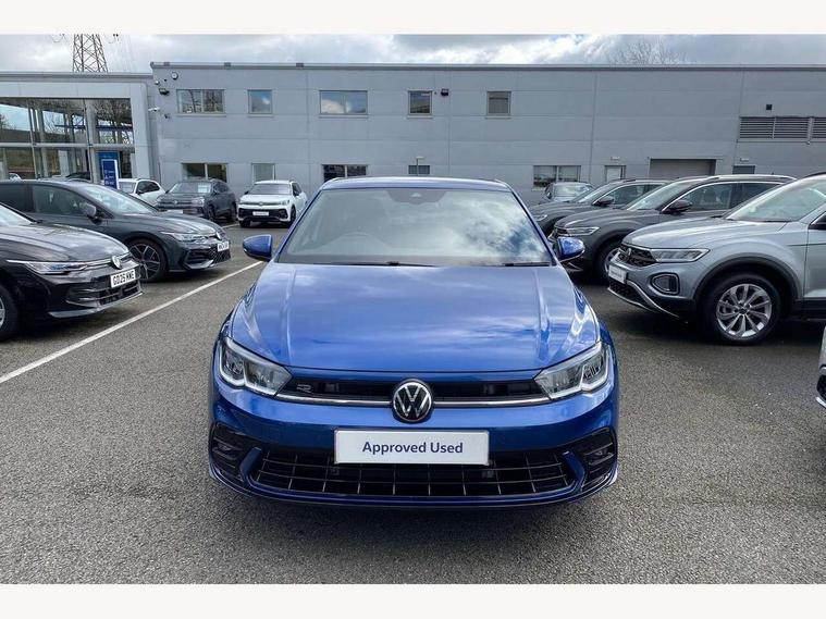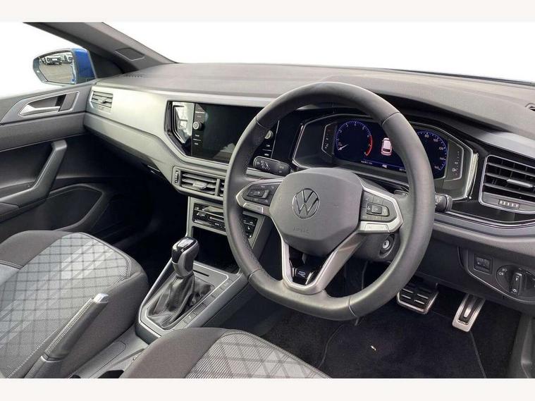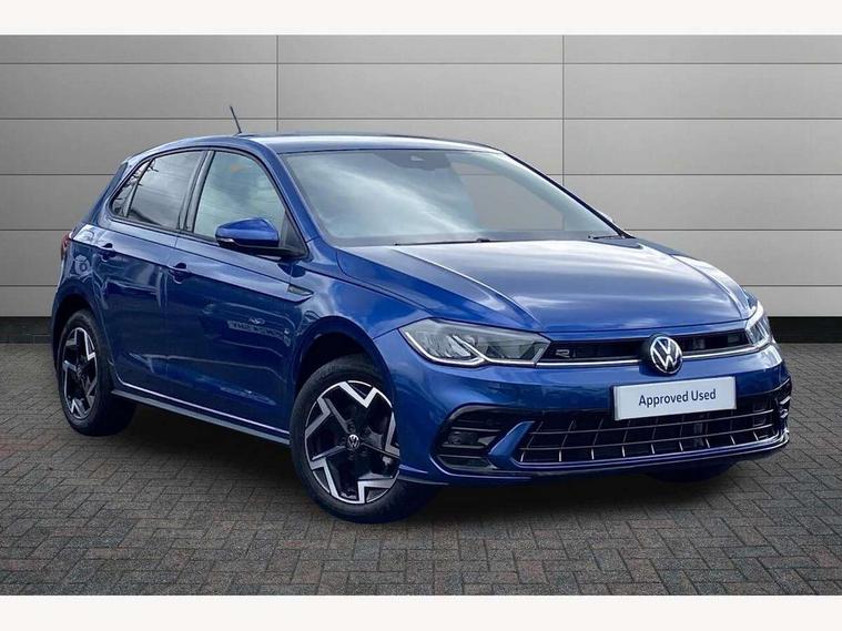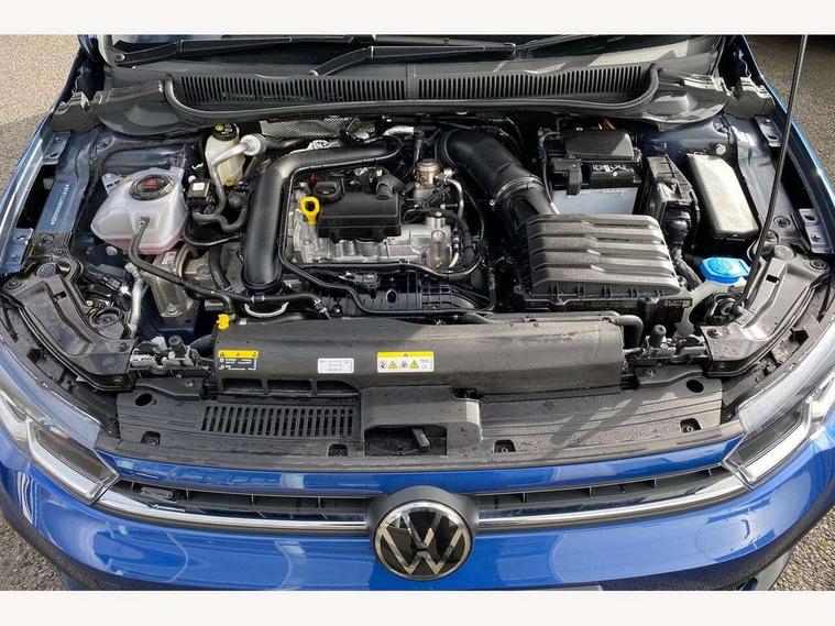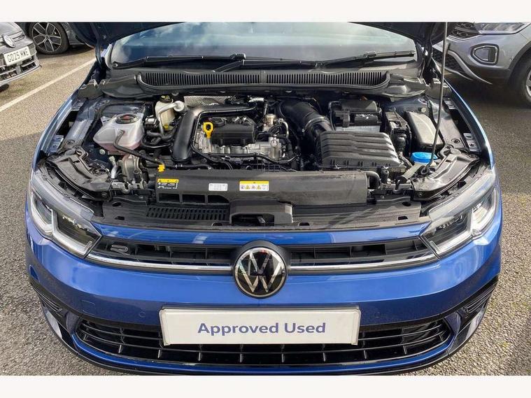 Adaptive cruise control with follow-to-stop and speed limiter, Advanced driver attention and drowsiness monitor, Bluetooth mobile phone interface, Digital Cockpit Pro with 10.25" Display, Dynamic road sign display, Emergency call service, Multifunction camera, Power assisted speed sensitive steering, Preparation for We connect and We connect plus, Speedo and rev counter, electronic odometer, trip, service interval display and fuel gauge, Standard rear axle, Travel Assist - Lane keeping system and traffic jam assist, Travel assist including emergency assist, Trip computer, Warning signal and warning light for front and rear seatbelts not fastened, Washer fluid level indicator, Wireless app connect, Front wheel drive, Rear shock absorpion, Start-stop system with battery regeneration (recuperation - energy recovery during braking), DAB Digital radio, Diversity antenna for FM reception, Front and rear 6 speakers, Body colour bumpers, Body colour door handles, Electric front windows, Front scuff plates with R-Line logo, Heat insulating glass windscreen, Power folding adjustable/heated exterior mirrors and front passenger exterior mirror lowering function, Rear electric windows, Rear fog light, Rear side wing doors, Rear windscreen washer and wiper with interval delay, Third brake light, 12V power socket in centre console, 2 USB-C ports in the front, 2 USB-C charging sockets on the center console in the rear, 3 rear head restraints, 60/40 split folding rear seat and rear seat bench not split, Air care climatronic air conditoning system with active combination filter and 2-zone temperature control, Black roof lining, Carpet mats, front and rear, Chrome plated radiator grille inserts, air vent surrounds and light switch surrounds, Door and side trim panel, Driver and front passenger seat height adjustment, Driver/passenger sunvisors with illuminated vanity mirrors, Front centre armrest, Front footwell illumination, Front seat backrest storage pockets, Front sports comfort seats, Handbrake lever handle in leather, Headliner in recycled material, Isofix child seat preparation easy-fit (for two outer rear seats, and front passenger seat) compatible with I-size, Karoso artvelours cloth upholstery, Leather trimmed gear knob, LED interior light with switch off delay and dimmer, 2 reading lights front and rear, Luggage compartment cover, Luggage compartment floor, Luggage compartment lighting, Lumbar adjustment for front seats, Single front passenger seat, Stainless steel pedals, Standard pedal cluster, Three spoke leather wrapped multifunction steering wheel with shifting paddles, Light and sight pack - Polo R-Line/Black Edition, 3 point height adj front seatbelts + pretensioners, 3x3 point rear seatbelts, ABS, Driver and front passenger airbag with front passenger airbag deactivation, Drivers and front passengers safety optimised head restraints, ESC (Electronic stability control) + EDL (Electronic Differntial lock) and ASR (Traction control), Extended and predictive pedestrian/ cyclist protection, Front curtain and side airbags with center airbag, Front/rear disc brakes, Hill hold control, Manual child lock in rear doors, Single tone horn, Tyre pressure loss indicator, Alarm with interior protection, Anti-theft alarm system with interior monitoring, backup horn, and towing protection, Anti-theft wheel bolts, Electronic engine immobiliser, Chrome applications on rotary light, mirror adjustment, window regulator switches, outlet with frame in black, Dark grey anodised matt decorative inserts in dash and front door panels, 16" Coventry alloy wheels, Low rolling resistance tyres,