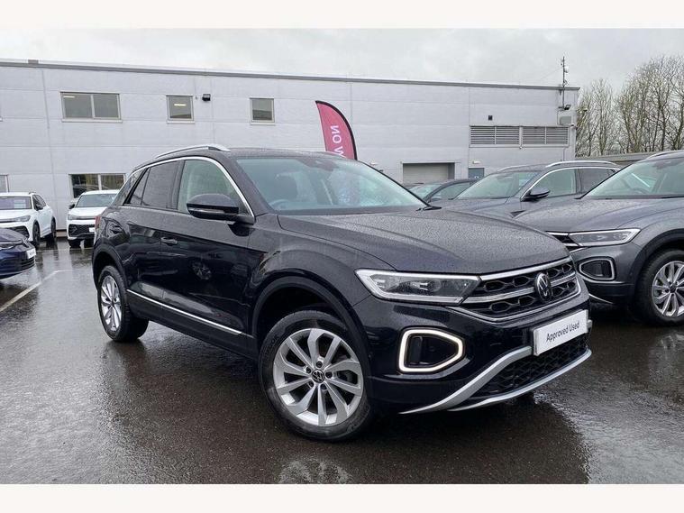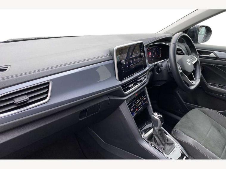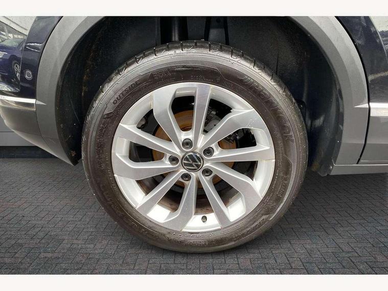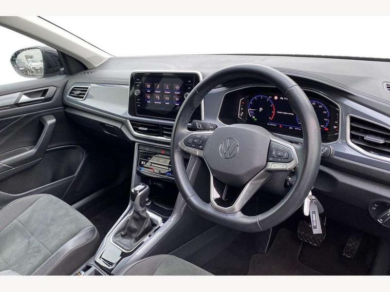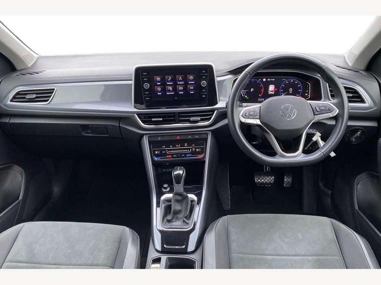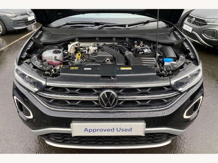 10.25" Digital cockpit pro, Advanced driver attention and drowsiness monitor, Emergency call service, Lane keeping system Lane Assist, Mobile phone interface, Modified key software - reduce switch off time for key status change to Long no motion, Online services, Park assist including front and rear parking sensors, Power assisted speed sensitive steering, Service interval indicator, Tailgate/trunk lid release from outside, Think blue trainer driver tips and journey analysis, Warning sound and light for front seatbelts unfastened, Wireless app connect, Wireless Smartphone charger, Battery regeneration during braking, Start/stop function with battery regeneration, DAB Digital radio, Diversity antenna for FM reception, Front and rear 6 speakers, Music playback - MP3, WMA and AAC files, Premium USB cable in choice of either Apple or Android smartphone compatibility, SD card slot, Simultaneous pairing of 2 compatible mobile devices, Title and cover art display, We Connect and We Connect Plus functionality, Auto dimming interior rear view mirror, Automatic hazard lights activation under emergency braking, Automatic headlight control with LED separate daytime running lights with coming/leaving home function, Body colour sports bumpers with silver metallic underbody fascia, Dynamic headlight range control with self adjusting whilst driving, Electrically adjustable and heated door mirrors, Extended roof spoiler, Exterior mirrors aspherical on driver side, convex on front passenger side, External USB type C socket and charging sockets, Front windscreen wiper with intermittent wipe and 4 position delay, Heated rear window, LED 3rd brake light, LED rear combination lamps, LED rear number plate lights, Light mode for poor weather, rain, fog or snow, Power windows with comfort operation and circuit breaker, Rain sensor, Rear exhaust tailpipe, Rear fog light on one side and reversing lights on both sides, Rear side wing doors, Rear wash/wipe with intermittent wipe setting, Remote electrically foldable door mirrors, puddle lights and reverse activated passenger's door mirror, 12V power socket in centre console, 3 rear head restraints, 3 seat bench in 2nd row, 4 load lashing points in luggage compartment, Air care climatronic air conditoning system with active combination filter and 2-zone temperature control, Chrome plated radiator grille inserts, air vent surrounds and light switch surrounds, Door and side trim panel with leatherette insert, Drawer under drivers seat, Front + rear carpet mats, Front centre armrest, Front comfort sports seats, Front cupholders x 2, Front footwell illumination, Front seat back storage pockets, Glove compartment door with light, Instrument lighting, white adjustable panel illumination, Interior ambient lighting and surround lighting, Interior light delay, Isofix child seat preparation, Leather gearshift handle, LED interior light with switch off delay/dimmer and 2 front/rear LED reading lights, Load-through provision with cup holder when folded down ('Unsplit rear seat bench, split folding backrest, with centre armrest), Luggage compartment lighting, Non-folding front passenger seat backrest, Single front passenger seat, Storage compartment in left and right luggage area, Storage compartment in rear doors, Storage compartments in driver and front passenger doors, Sunvisors with illuminated vanity mirrors, Variable boot floor, height adjustable and removable, Driver assistance pack without proactive passenger protection - T-Roc, 3 point height adj front seatbelts + pretensioners, 3 point seatbelts in outer rear with ECE label, ABS, Child locks on rear doors, City emergency braking and pedestrian monitoring, Driver and front passenger airbag with front passenger airbag deactivation, Driver and front passenger safety-optimised head restraints, Drivers seatbelt reminder, Electronic parking brake, Electronic Stability Control (ESC) inc EDL (Electronic Differential Lock) and ASR (Traction Control), Front and rear passengers curtain airbag system including front side airbags, Predictive pedestrian protection, Rear disc brakes, Two tone horn, Tyre pressure loss indicator, Volkswagen roadside assistance, Trims for alloy wheels,