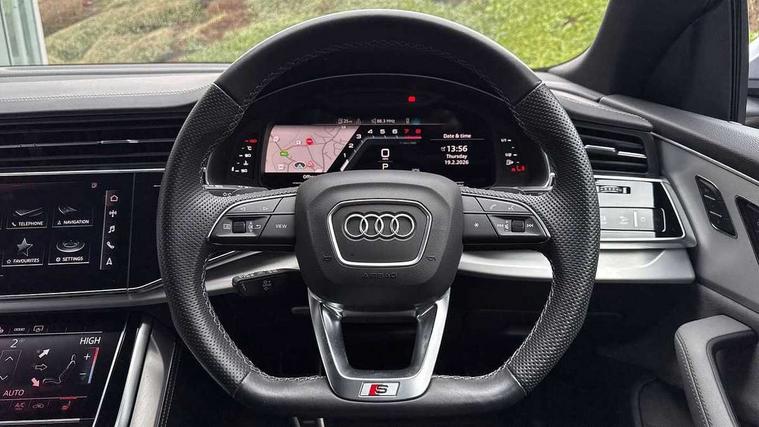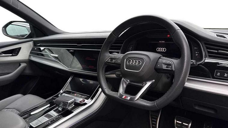 10.1" and 8.6" Dual colour touchscreens, All wheel steering, Audi connect safety and service (e-call), Audi connect with Amazon Alexa Integration, Audi drive select, Audi parking system plus includes 360 degree display with front and rear sensors, Audi virtual cockpit - 12.3" high resolution LCD display with fully customisable instrument cluster, Automatic start/stop system, Electro-mechanical PAS, Low washer fluid indicator, MMI - Multi Media Interface control system, MMI navigation plus with MMI touch, Natural voice recognition, On board computer, Operating buttons in black, glass look with haptic feedback, Power operated tailgate, Rear view camera, Service interval indicator, Smartphone interface includes wireless Apple carplay/Android Auto, 48V Mild hybrid technology, 85 litre fuel tank, Quattro all wheel drive with self locking centre differential, S specific Adaptive air suspension, Audi music interface with 2 USB ports with charge and data functions, Audi sound system with 6 channel amplifier, 180 watt amplifying capacity and 10 loudspeakers including subwoofer, Aux-in socket, DAB Digital radio, 3rd brake light, Acoustic windscreen, Aluminium look door mirrors, Aluminium window trim, Audi Beam uses LEDs to project the Audi logo, Audi HD Matrix LED headlights with dynamic front and rear indicators, Auto dimming frameless rear view mirror, Body coloured bumpers, Coming/leaving home lighting function, Electric front+rear windows, Electrically folding auto dimming/adjustable/heated door mirrors with memory function, LED side indicators and kerb view function for passenger side, Headlight washers, Heat insulating glass in windshield, LED signature daytime running lights, Platinum grey front spoiler lip and diffuser insert, Privacy glass - dark tinted rear and rear side windows from B-pillar backwards, Rain and light sensors, Rear side wing doors, Rear wiper, S specific dual brach chrome tailpipes on both the left and right, S specific front and rear bumpers, S specific radiator grille frame in matt selenite silver, S specific side skirts in matt selenite silver, Side air inlet grilles in matt titanium black, Trim and underbody protection in matt selenite silver, 2 zone automatic climate control, 3 bench rear seats in 2nd row, 4-way lumbar support for front seats, 40:20:40 split folding rear bench seat, Black cloth headlining, Comfort front centre armrest, Driver seat memory function, Electrically adjustable front seats, Front head restraints, Front/rear floor mats, Heated front seats, Illuminated door sill trims, ISOFIX child seat mounting for front passenger seat and 2 outer rear seats with top tether child seat mounting for all 3 rear seats, LED interior ambient lighting, Luggage compartment sill protection in stainless steel, Rear centre armrest with 2 cupholders, Rear headrests, Single front passenger seat, Stainless steel pedals, Sunvisors with illuminated vanity mirrors, Upper and lower interior elements in leather, leather door armrests, Valcona leather upholstery + super sports seats with S embossed logo, 3 point seatbelts on all seats, Audi pre sense front, Child locks on rear doors, Driver and front passenger, front side and curtain airbags, Electromechanical parking brake, Electronic Stability Control (ESC) including ABS, ASR and EDL, Front passenger airbag deactivation, Hill descent control, Hill hold assist, Predictive pedestrian protection, Seatbelt monitoring, Traction control, Tyre pressure loss indicator, Warning triangle and first aid kit, Anti theft alarm with tow away protection, Anti-theft wheel bolts and wheel loosening detection, Immobiliser, Keyless go with remote central locking, Tool kit, Tyre repair kit,