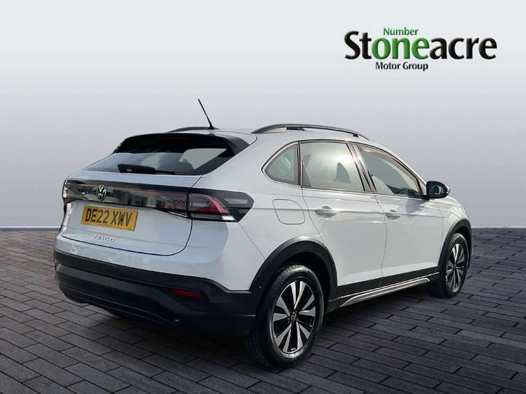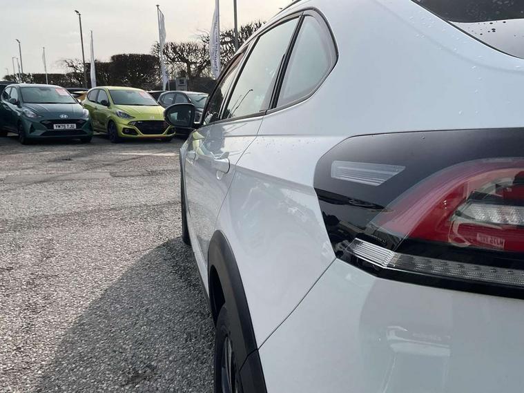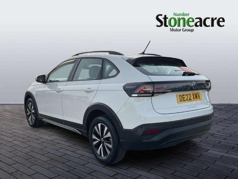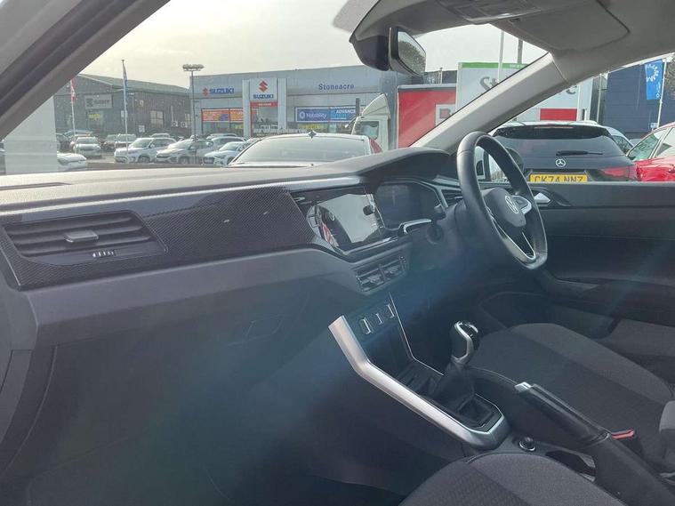 App-Connect including App-Connect Wireless, Driver alert system, e-Call (emergency call), Power Steering, Travel assist including emergency assist, Washer fluid level indicator, Wireless Charging including Bluetooth, Start-stop system with battery regeneration (recuperation - energy recovery during braking), Digital radio reception (DAB+), Diversity antenna for FM reception, WeConnect plus, Ambient lighting with logo projection, Aspherical driver's exterior mirror, Auto headlights, Body coloured bumpers, Body coloured exterior mirror housings and door handles, Electric windows, External USB type C socket and charging sockets, Front fog lamps with cornering function, Headlight range control, Heat insulating glass windscreen, LED headlamps, LED rear combination lamp, LED third brake light, Left convex exterior mirror, Power folding adjustable/heated exterior mirrors and front passenger exterior mirror lowering function, Rear fog light on one side, reversing light on both sides, Rear side wing doors, Rear wash/wipe with intermittent wipe setting, 'Slash/ Austin' Cloth upholstery, 12V socket in centre console, 2 front reading lights, 3 rear head restraints, 3 seat bench in 2nd row, Black carpets, Child seat anchor for child seat system i-Size, 2x top tether and child seat anchor in front on front passenger side, Door and side trim panels in titan black, Driver and front passenger seat height adjustment, Front centre armrest, Handbrake lever handle in leather, Height and reach adjustable steering wheel, Leather trimmed gear knob, Leather wrapped multifunction steering wheel, Luggage compartment floor, Luggage compartment light, Lumbar support for driver's and front passengers seat, Seat covers in titanium black, Single front passenger seat, Split folding backrest with centre armrest and unsplit rear seat bench, Storage compartment under front seats, Sun visors with illuminated vanity mirrors, Chrome Package - Taigo, Drivers assistance pack - Taigo, Light and Sight pack including High beam assist - Taigo, 2 x 3-point seatbelts/outer rear seats with ECE label, 3-point seat belts in front with pretensioner and height adjustment, 3-point seatbelt for centre rear seat, Driver and front passenger airbags with front passenger airbag de-activation, front side and curtain airbags, Driver and front passenger safety-optimised head restraints, Electronic stability control, Extended and predictive pedestrian/ cyclist protection, Front and rear disc brakes, Front curtain and side airbags with center airbag, Hill start assist, Manual rear child locks, Single tone horn, Tyre pressure loss indicator, Anti-theft alarm system with interior monitoring, backup horn, and towing protection, Anti-theft wheel bolts, Lava stone black gloss/matt decorative inserts in dash and front door panels, Low rolling resistance tyres,