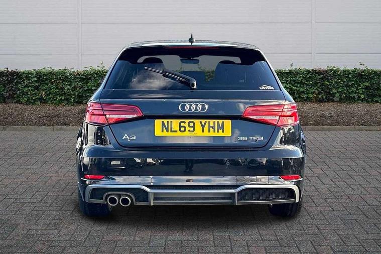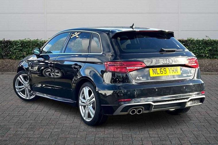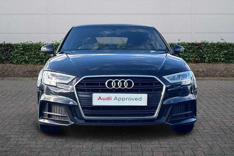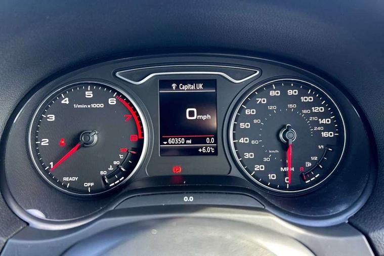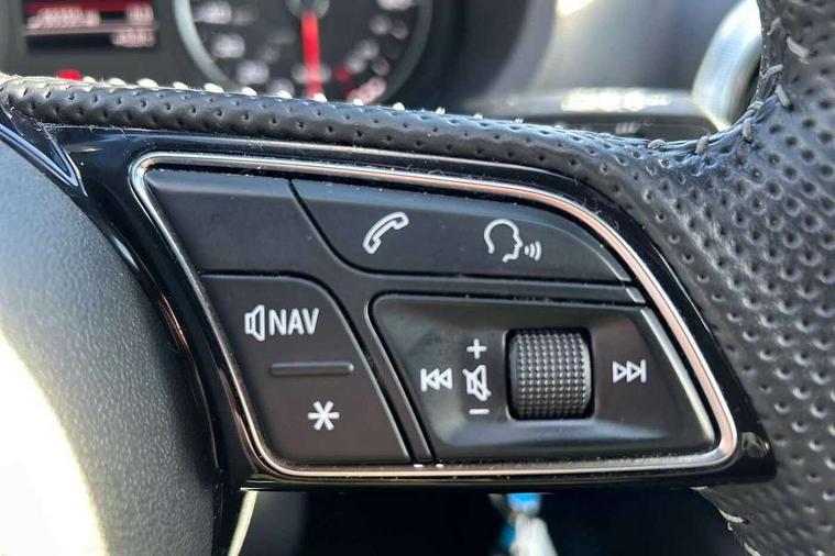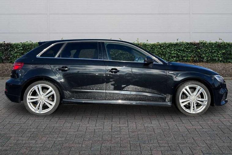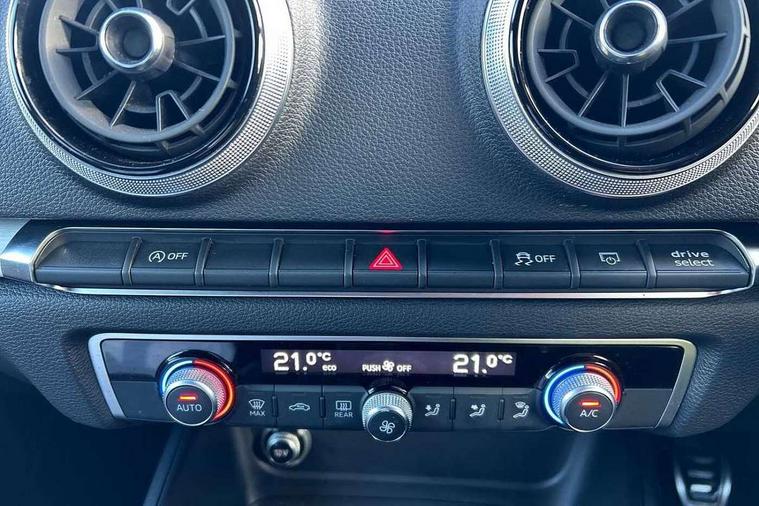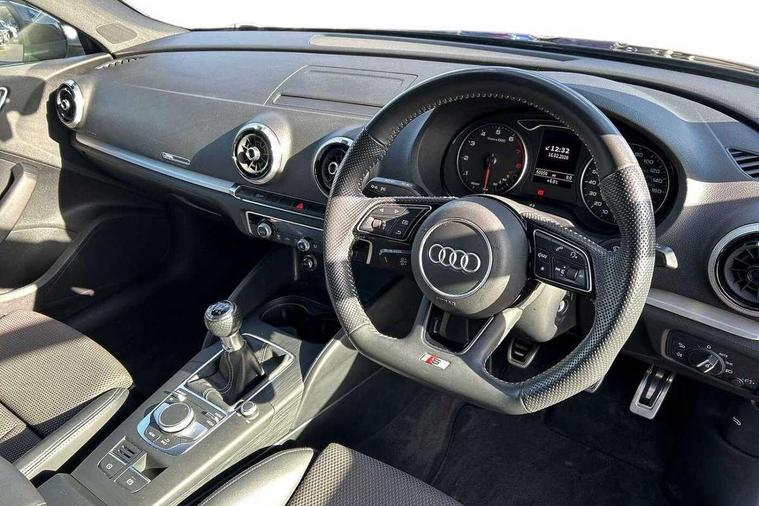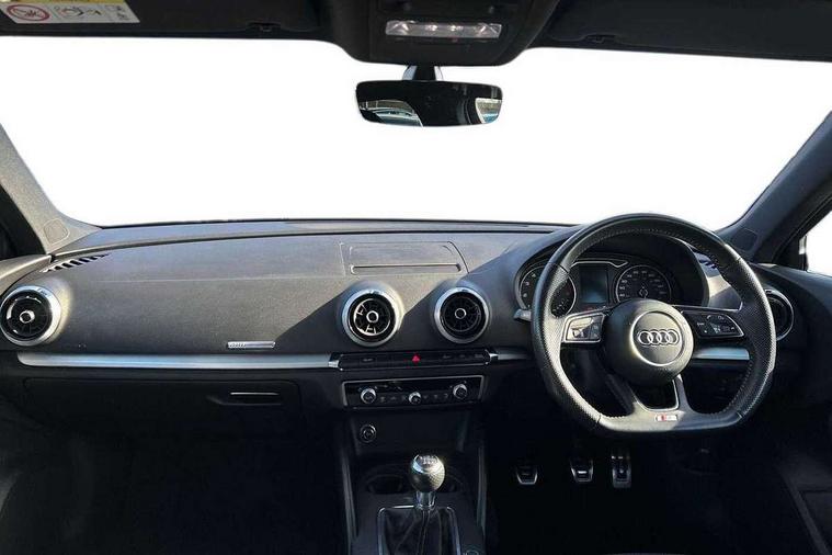 Audi drive select, Audi smartphone interface, Automatic start/stop system, Colour driver's information system display, Electro - mechanical power assisted steering, Mobile telephone preparation - bluetooth interface, SD card based MMI navigation, Service interval indicator, Speed limit display, Voice control system, Voice recognition for navigation system, Sports suspension, 2 USB interfaces and Aux-In jack, Audi music interface, CD player, DAB Digital radio, MMI radio plus with 7" colour MMI screen and MMI controller, Online entertainment, Aluminium window trim, Auto dimming interior rear view mirror, Body colour door mirrors, Chrome exhaust tailpipes, Electric front windows, Electric rear windows, Electrically adjustable and heated door mirrors with integrated LED side indicators, Heated windscreen washer jets, LED daytime running lights, Light and rain sensors, Matt black radiator grille, Rear wiper, S line badges on front wings, S Line body styling with front & rear bumpers and side skirts, radiator grille and rear diffuser insert, roof spoiler, Sport specific side air inlet grille and diffuser insert, 3 adjustable rear headrests, 3 spoke flat bottomed multi-function leather sport steering wheel, 60/40 split folding rear seat, Adjustable front centre armrest, Black cloth headlining, Dual zone electronic climate control, Front and rear interior lights with delay, Front/rear floor mats, Height and reach adjustable steering wheel, Illuminated door sill trims with S logo, Isofix child seat preparation for front passenger/outer rear seats inc passenger airbag deactivation including top tether, Lashing point in luggage compartment, Manual height adjustable front seats, Stainless steel pedals, Storage compartments in doors side trims, centre console and under front drivers seat, LED interior light pack - A3/RS3, Non smoking pack - A3, Storage and luggage pack - A3/RS3, 3 point seatbelts on all seats, ABS/EBD, Active bonnet, Active front headrests, Airbags - front driver/passenger, front & rear side, curtain, drivers knee, ASR, EDL, Electromechanical parking brake, ESC - Electronic Stability Control + traction control, Front passenger airbag deactivation, Hill hold assist, Manual rear child locks, Multi-Collision braking, Seatbelt warning, Tyre pressure warning, Warning triangle and first aid kit, Anti theft alarm, Anti-theft wheel bolts, Remote control central locking, Thatcham category 1 alarm + immobiliser, Aluminium air vent surrounds, Aluminium trim elements, Matt brushed aluminium inlays, Tool kit, Tyre repair kit,