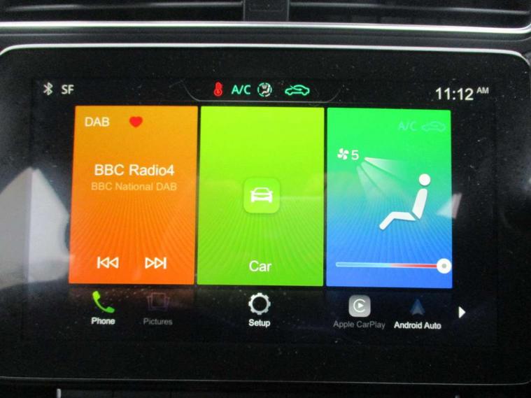 'Lights On' Reminder warning buzzer, 10.1" colour touchscreen, Android Auto, Apple CarPlay, Bluetooth connectivity, Cruise control with speed limiter, eCall emergency call system, PAS, Rear parking sensors, Trip computer, USB mobile phone charging function, 4 speaker audio system, DAB audio, Radio/MP3 player, USB/aux input socket, Auto headlights, Body colour bumpers, Body colour door handles, Body colour electric adjustable folding heated door mirrors, Chrome side window trim, Follow me home headlights, Front and rear aero wiper, Front and rear electric windows with driver's one-touch up/down, LED Bi-Function headlights, LED centre brake light, LED daytime running lights, Rain sensor, Rear side wing doors, Rear spoiler, Rear wiper, Silver roof rails, 12V power sockets, 2nd row 60/40 split/fold, 3 rear headrests, 3 seat bench in 2nd row, 4 way manually adjustable passenger seat, 6-way manually adjustable driver's seat, Adjustable dual height boot floor, Air conditioning, Boot light, Driver's footrest, Front cupholders x 2, Front grab handles, Front headrests, Front reading lights, Front seat back map pockets, Glovebox, Houndstooth fabric upholstery, Illuminated switches and controls, Internal chrome door handles, ISOFIX restraints on outer rear seats x2, Leather steering wheel, Rake/reach adjustable steering wheel, Rear grab handle, Single front passenger seat, 3x3 point rear seatbelts, ABS/EBD, Anti rolling protection, Automatic unlocking of doors in case of impact, Child locks on rear doors, Dual front airbags, EBA, ESP, Front passenger airbag deactivation switch, Front seatbelts (3-point + pretensioner + load limiter), Front side airbags, Fuel cut off safety device, Hill launch assist, Rear door child safety locks, Rear passenger seatbelt alert, Seatbelt reminder for driver and front passenger, Side curtain airbags, Tyre pressure monitoring system, Alarm system and engine immobiliser, Automatic latching door, Remote central locking, Second remote key, Speed sensing door locks, Superlocking, 17" Typhoon diamond cut alloy wheels, Tyre repair kit,