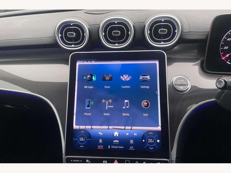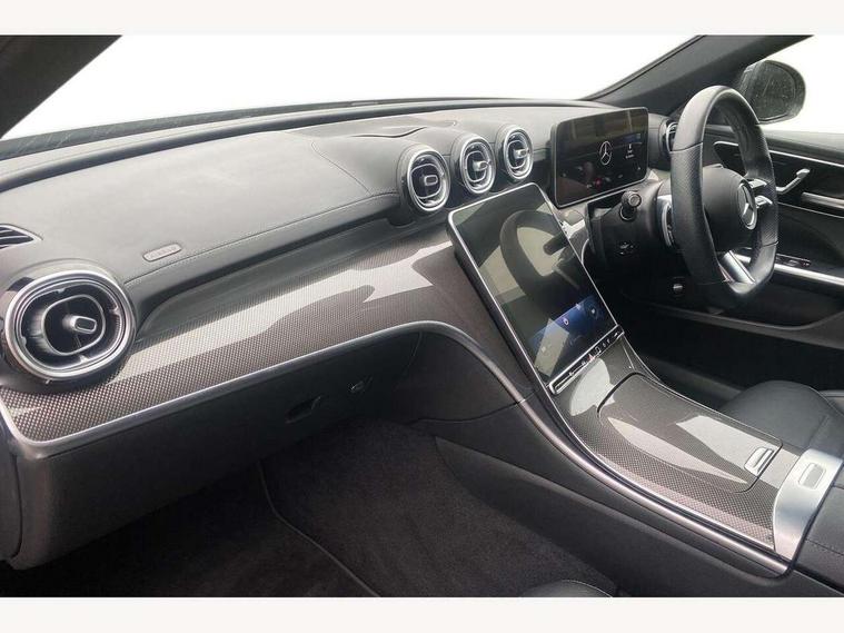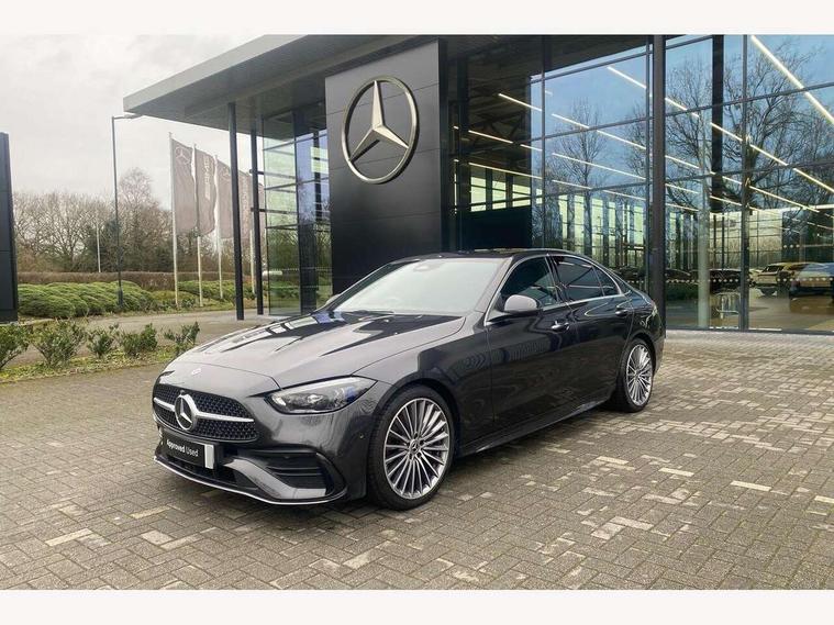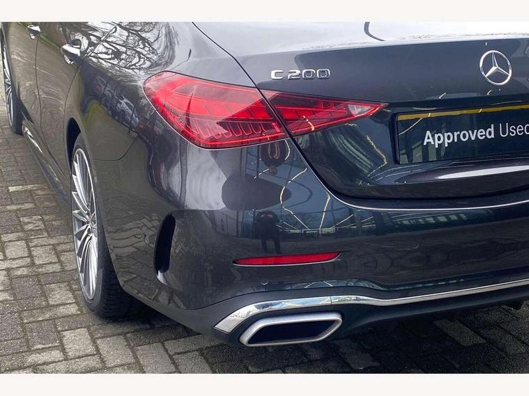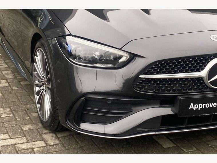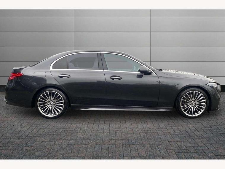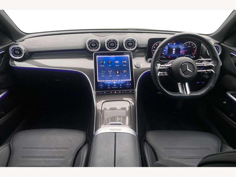 11.9" high resolution multimedia colour display, 12.3" digital instrument cluster display, Active blind spot assist, Active brake assist plus, Active lane keeping assist, AMG DYNAMIC SELECT with a choice of driving modes (Slippery, Comfort, Sport, Sport+, Individual), Attention assist, Cruise control with speedtronic variable speed limiter, E-call, Extended MBUX functions, Finger print sensor, Fluorescent jacket for driver, MBUX augmented reality for navigation, MBUX navigation premium, MBUX voice control activated by keywords "Hey Mercedes", Mercedes connect me, Mercedes me remote services, Outside temperature gauge, Pre-installation for digital key transfer, Remote boot release, Service indicator (ASSYST), Smartphone integration, Sports direct steer speed sensitive steering, Status display for rear seat belts in instrument cluster, Wireless charging system for mobile devices, 66l fuel tank with increased capacity, 9G TRONIC 9 speed automatic transmission, Agility control sports suspension and lowered by 15 mm, Petrol Particulate Filter, Sporty engine sound system, DAB Digital radio, MBUX multimedia system, Adaptive brake lights, Adaptive high beam assist plus, AMG body styling front apron, rear apron and side skirts, AMG front bumper with sporty air intakes and chrome elements, AMG rear bumper with high gloss chrome elements, AMG side skirts in vehicle colour, B-pillar trim in glossy black, Body coloured bumpers, Body coloured door mirrors, Chrome beltline trim, Daytime running lights, Digital light LED headlamps, Electric windows with one touch opening/closing and obstruction sensors, Electrically adjustable and heated door mirrors, Green tinted glass, LED Indicators, LED tail lights, LED third brake light, Powerdomes on bonnet, Privacy glass, Radiator diamond grille with integrated Mercedes Benz star and louvre silver with chrome pins, Radio aerial integrated into rear window, Rain sensor with automatic windscreen wiper activation, Rear boot, Rear side wing doors, Two visible exhaust pipes integrated into rear bumper, 3 spoke flattened bottom AMG multifunction steering wheel in black nappa leather with chrome inserts and perforated leather in grip area, 40:20:40 split folding rear bench seat, AMG Leather upholstery, AMG sports seats, Audio and onboard settings control on multifunction steering wheel, Auto Mercedes-Benz child seat recognition sensor, Black air vents with silver chrome elements, Black floor mats with AMG lettering, Black roof liner, Door trim elements high gloss black with silver chrome surroundings and switches, Double cupholder in centre console, Electrically height/reach adjustable steering column, Folding rear seat backrest, Front and rear head restraints, Front centre armrest with storage compartment, Gearshift paddles on steering wheel, Heated front seats, Illuminated door sills with Mercedes Benz lettering, Illuminated glove compartment stowage, Interior lighting - 64 colour Ambient lighting, Overhead control unit in high gloss black, Rear top tether child seat ISOFIX attachment, Single front passenger seat, Sports pedals with stainless steel surfaces and rubber studs, Sunvisors with illuminated vanity mirrors, THERMATIC 2 zone automatic climate control, Interior lighting package - C Class, Memory package - C Class, Mirror pack - C Class, Parking package with 360 degree camera - C Class, Seat comfort pack - C Class, Stowage space pack - C Class, USB package - C Class, 3 rear 3 point seatbelts, Active bonnet pedestrian safety measure which detects an impact and raises bonnet, Adaptive brake system with HOLD function and brake drying in the wet, Anti-lock braking system (ABS), Black seat belts, Brake calipers with Mercedes-Benz lettering + perforated front brake discs, Child proof door locks, Drivers knee airbag, Drivers pelvis airbag, Dual stage driver/passenger airbags, Electric parking brake, Electronic Stability Programme (ESP), Front centre airbag between driver and front passenger seats, Front side airbags, Larger brake discs on front axle, Rear passenger airbag, Rear seatbelt warning indicator, Sports braking system with perforated front disc brakes, Tyre pressure monitoring system, Warning triangle and first aid kit, Window airbags, Central locking with interior switch, automatic locking and crash sensor with emergency opening function, Chrome surround in electric key, Keyless Go comfort access, URBAN GUARD vehicle protection (Thatcham Category 1) consisting of break-in, anti-theft alarm system (ATA), interior monitoring and tow-away protection, Artico man-made leather dashboard with contrast stitching, Centre console trim in metal weave, 19" AMG multi spoke design alloy wheels painted in black with high sheen finish, Summer tyres, TIREFIT with tyre inflation compressor,
