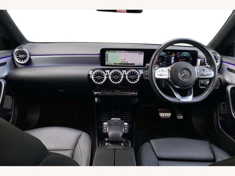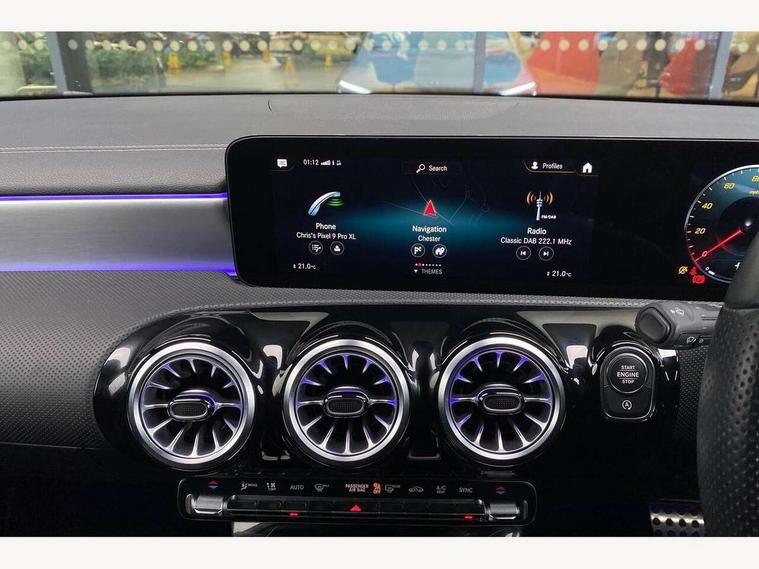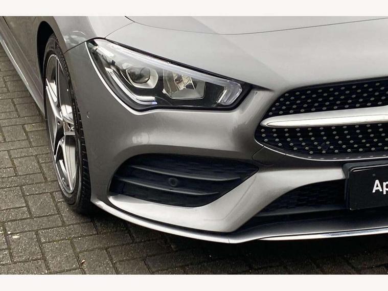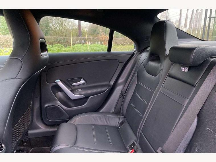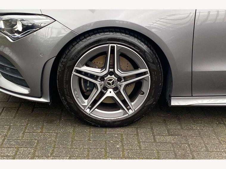 10.25 inch Instrument display with digital cockpit, 10.25 inch touchscreen central media display, Active lane keeping assist, Attention assist - Monitors steering behaviour and long journey fatigue, Bluetooth connection, Car wash mode, Cruise control with limiter, Direct steer system with speed sensitive power steering, DYNAMIC SELECT with a choice of driving modes (ECO, Comfort, Sport and Individual), ECO start/stop function, Fluid level warning indicator for fuel, oil, coolant and washer fluid, Hard-disk navigation, Hey Mercedes Voice activation, Lamp failure indicator, Mercedes me connect including emergency call system, accident recovery, breakdown and maintenance management, Mercedes me remote services, Outside temperature gauge, Owners manual and service booklet in English, Pre-installation of private car share, Preinstallation for Mercedes Benz link, Radio aerial integrated into front and rear windshields, Service indicator (ASSYST), Smartphone integration with Apple CarPlay and Android auto, Speed limit assist, Trip computer in multifunction display with current consumption indicator, Lowered comfort suspension, Rear axle multi-link, DAB digital radio tuner, MBUX multimedia system with DAB digital radio and touchpad including satellite navigation, Mid-range sound system, USB (type C) ports (2) in stowage compartment and 1 in front of centre console, Adaptive brake lights, AMG body styling with AMG front apron and rear apron and visible exhaust tailpipe in chrome trim elements, AMG bodystyling side skirts, Body colour bumpers, Body colour door handles, Chrome beltline strips, Chrome weather strip, Diamond radiator grille pins in chrome with silver painted louvres and chrome insert, Electric windows, Electrically adjustable and heated door mirrors with integrated LED indicators, Exhaust system with 2 Visible tailpipe trim elements and rear apron with trim in chrome, Headlamp assist automatic headlamp activation, Heated glass rear windscreen + timer control, High level LED third brake light, Interior mirror with black reading lamps and frameless, LED high performance headlamps with integrated LED daytime running lights, LED tail lamp, Privacy glass with dark tinting on rear side windows and rear window, Rain sensing windscreen wipers with two sensitivity settings, Rear boot, Rear fog lamp, Rear side wing doors, Window line trim strip in chrome, 3 seat bench in 2nd row, 3 spoke flattened bottom nappa leather multifunction steering wheel with perforated leather in grip area, 40:20:40 split folding rear seat backrests, Air conditioning - Two zone thermotronic luxury automatic climate control with display, Air vents with surround in silver chrome, Automatic child seat recognition sensor, Black roof lining, Brushed stainless steel sports pedals with rubber studs, Floor mats with stitched AMG lettering, Front centre armrest with stowage, Galvanished gear shift paddles on steering wheel, Heated front seats, Illuminated front door sills with changeable cover, Illuminated glove compartment stowage, Interior lighting - 64 colour Ambient lighting, Luggage net on driver/front passenger seat backrest, Manually adjustable front seats, Manually height and reach adjustable steering column, Rear armrest with two integral cup holders for drinks, Rear head restraints, Single front passenger seat, Sport seats with fixed head restraints, Stowage compartment in centre console with retractable cover, Sunvisors with illuminated vanity mirrors, Touchpad on center console, Twin front cupholders, Two outer rear seat isofix and top tether child seat fixing points, Keyless go pack - CLA, Light and sight pack - CLA, Mirror pack - CLA, Parking package - CLA, Seat comfort pack - CLA, Active bonnet pedestrain safety measure which detects an impact and raises bonnet by 65mm, Active brake assist includes forward collision warning system with autonomous braking, Adaptive brake assist with hold function and hill start assist, Anti-lock braking system (ABS), Black seat belts, Bonnet with power domes, Brake pad wear warning indicator, Childproof locks manually operated for rear doors and electrically operated for rear power windows, Crash responsive emergency lighting, Driver and front passenger head and sidebags, Driver and front passenger windowbags, Drivers knee airbag, Dual stage driver and front passenger airbags, Electric parking brake, Electronic stability programme with acceleration skid control, ESP curve dynamic assist, Front and rear seatbelt reminder, Front passenger seat occupancy sensor, Three point rear seat belts, Tyre pressure monitoring system, Warning triangle and first aid kit, Remote central locking and crash sensor with emergency opening function, Urban guard vehicle protection system with immobiliser and interior protection, Light aluminium with longitudinal grain interior trim, 18" 5 twin spoke design alloy wheels painted in titanium grey with high sheen finish, Summer tyres, Tirefit tyre sealant kit,
