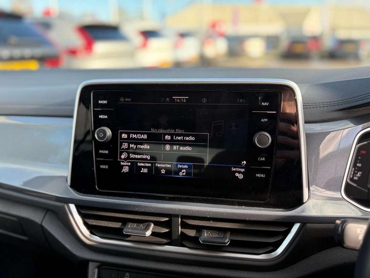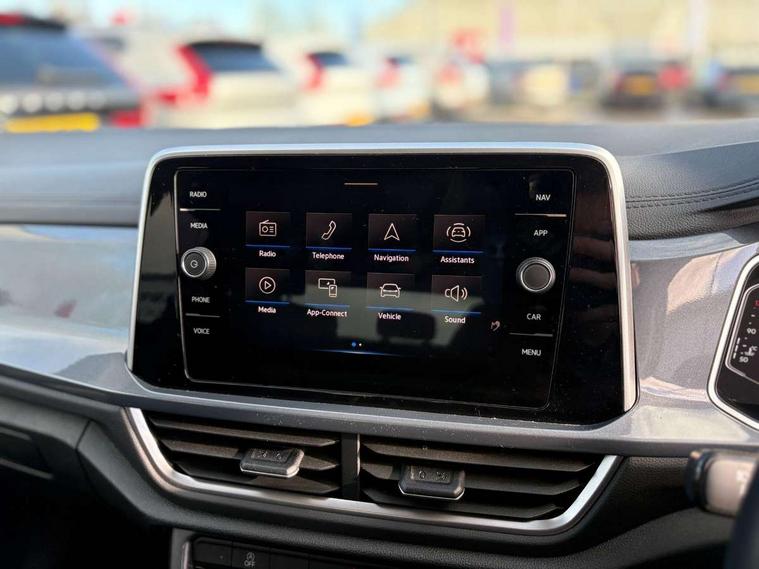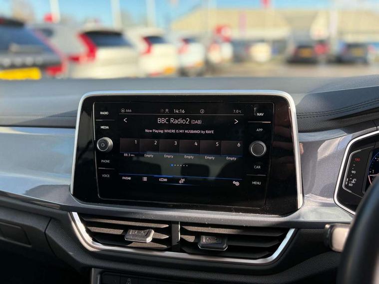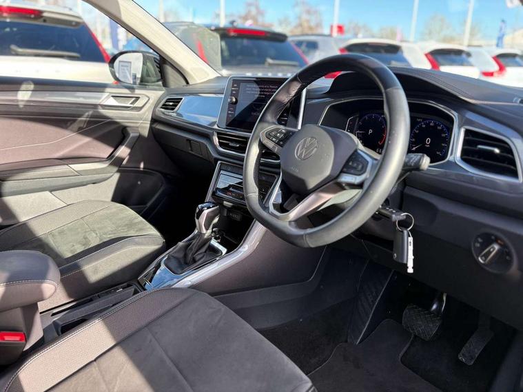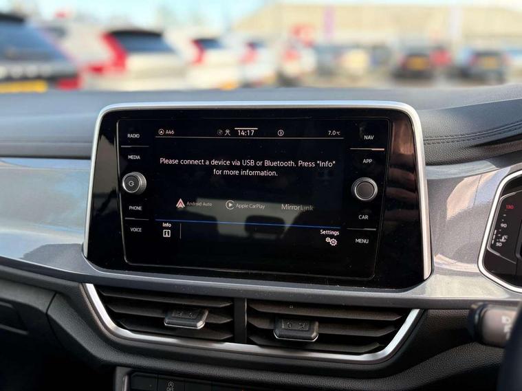 10.25" Digital cockpit pro, Bluetooth mobile phone interface, Driver alert system with fatigue detection, Driver tips and journey analysis, Emergency call service, Lane keeping system Lane Assist, Modified key software - reduce switch off time for key status change to Long no motion, Online services, Park assist including front and rear parking sensors, Service interval indicator, Tailgate/trunk lid release from outside, Think blue trainer driver tips and journey analysis, Warning sound and light for front seatbelts unfastened, Wireless app connect, Battery regeneration during braking, Start/stop function with battery regeneration, Diversity antenna for FM reception, Front and rear 6 speakers, Music playback - MP3, WMA and AAC files, Premium USB cable in choice of either Apple or Android smartphone compatibility, SD card slot, Simultaneous pairing of 2 compatible mobile devices, Title and cover art display, We Connect and We Connect Plus functionality, 3rd brake light, Auto dimming interior rear view mirror, Automatic hazard lights activation under emergency braking, Automatic headlight control with LED separate daytime running lights with coming/leaving home function, Body colour sports bumpers with silver metallic underbody fascia, Dynamic headlight range control with self adjusting whilst driving, Extended roof spoiler, Exterior mirrors aspherical on driver side, convex on front passenger side, External USB type C socket and charging sockets, Front windscreen wiper with intermittent wipe and 4 position delay, Heated rear window, LED Plus headlamps, LED rear combination lamps, LED rear number plate lights, LED tail lamp rear comination lamps, Light mode for poor weather, rain, fog or snow, Power windows with comfort operation and circuit breaker, Rain sensor, Rear exhaust tailpipe, Rear fog light on one side and reversing lights on both sides, Rear side wing doors, Rear wash/wipe with intermittent wipe setting, Remote electrically foldable door mirrors, puddle lights and reverse activated passenger's door mirror, 12V power socket in centre console, 3 rear head restraints, 3 seat bench in 2nd row, 4 load lashing points in luggage compartment, Air care climatronic air conditoning system with active combination filter and 2-zone temperature control, Chrome plated radiator grille inserts, air vent surrounds and light switch surrounds, Door and side trim panel with leatherette insert, Drawer under drivers seat, Front + rear carpet mats, Front centre armrest, Front comfort sports seats, Front cupholders x 2, Front footwell illumination, Instrument lighting, white adjustable panel illumination, Interior ambient lighting and surround lighting, Interior light delay, Isofix child seat preparation, Leather gearshift handle, LED interior light with switch off delay/dimmer and 2 front/rear LED reading lights, Load-through provision with cup holder when folded down ('Unsplit rear seat bench, split folding backrest, with centre armrest), Luggage compartment lighting, Non-folding front passenger seat backrest, Single front passenger seat, Storage compartment in left and right luggage area, Storage compartment in rear doors, Storage compartments in driver and front passenger doors, Sunvisors with illuminated vanity mirrors, Variable boot floor, height adjustable and removable, Driver assistance pack without proactive passenger protection - T-Roc, 3 point height adj front seatbelts + pretensioners, 3 point seatbelts in outer rear with ECE label, ABS, Child locks on rear doors, Driver and front passenger airbag with front passenger airbag deactivation, Driver and front passenger safety-optimised head restraints, Drivers seatbelt reminder, Electronic parking brake, Electronic Stability Control (ESC) inc EDL (Electronic Differential Lock) and ASR (Traction Control), Front and rear passengers curtain airbag system including front side airbags, Front assist with city emergency braking and pedestrian monitoring, Front seat side impact airbags, Predictive pedestrian protection, Rear disc brakes, Single tone horn, Tyre pressure loss indicator, Volkswagen roadside assistance, Alarm with interior protection, Anti-theft alarm system with interior monitoring, backup horn, and towing protection, Remote central locking with SAFELOCK, radio remote control with 2 remote control folding keys, Trims for alloy wheels,