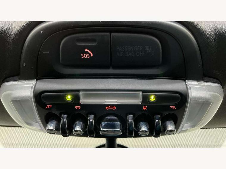 Acoustic seat-belt warning, Basic bluetooth function with USB audio, Brake fluid level warning light, Brake pad wear indicator warning light, DTC - Dynamic traction control, Exterior temperature gauge, Intelligent emergency call, MINI TeleServices, Oil level indicator, On board computer, Personal Profile, Service interval indicator, Servotronic PAS, Stop/start button, Electronic differential lock, 6.5" touchscreen, Auxiliary input socket, DAB digital radio module, Anti dazzle mirror, Anti trapping/one touch open close front windows, Body coloured bumpers, Chrome bezels around rear lights and headlights, Chrome door handles, Chrome exhaust tailpipe, Chrome plated radiator grille, Electric front windows, Electrically adjustable door mirrors, Follow me home headlights, Heated door mirrors, Heated rear window with auto timer, Heated windscreen washer jets, High gloss black tailgate handle, LED fog lights, LED rear lights, Metal look door sill finishers, White indicator lights, 2 rear head restraints, 4 boot load lashing points, 50/50 split folding rear seats, 6-way manually adjustable driver's seat, Active carbon filter, Auxiliary socket in centre console storage compartment, Centre console storage, Driver/passenger sunvisors and vanity mirrors, Easy entry seats, Front and rear cupholders, Front head restraints, Gear/selector and handbrake in artificial leather, Glovebox, Internal chrome door handles, Isofix child seat preparation, Luggage compartment lighting, Multifunction steering wheel, Reach + rake adjustable steering column, Stainless steel pedals with rubber inserts, Storage compartments in doors, Toolkit in luggage compartment, 3 point seatbelts, ABS/EBD, ASC+T, Cornering brake control (CBC), Crash Sensor - activates hazard/interior lighting + unlocks doors, Driver and passenger airbags, Driver/front passenger side airbags, DSC - Dynamic Stability Control, Fuel cut off safety device, Head airbags, Hill start assist, Manual passenger airbag deactivation function, Seatbelt pretensioners, Tyre pressure warning, Drive away door locking, Keyless start, Locking wheel bolts, Remote central locking/doors+fuel cap+tailgate, Second remote key, Thatcham category 1 alarm + immobiliser,