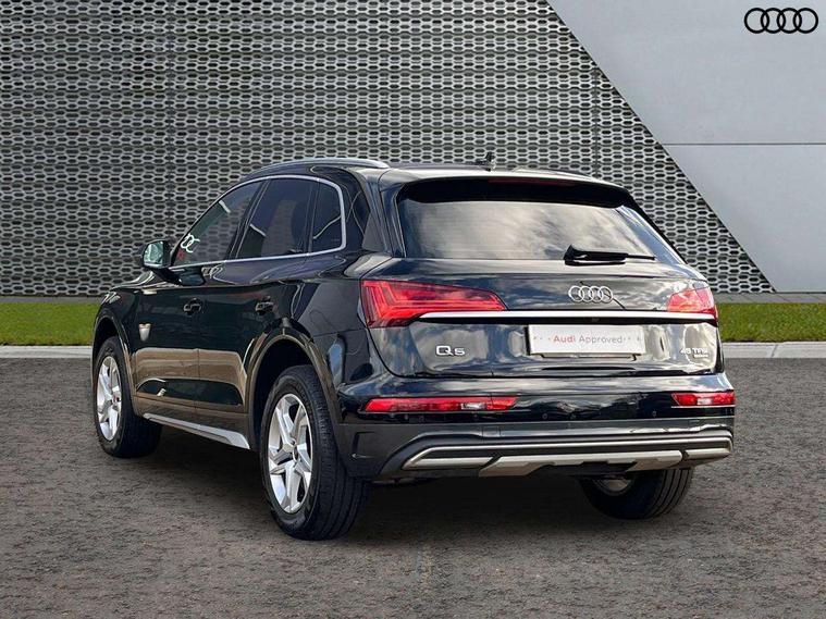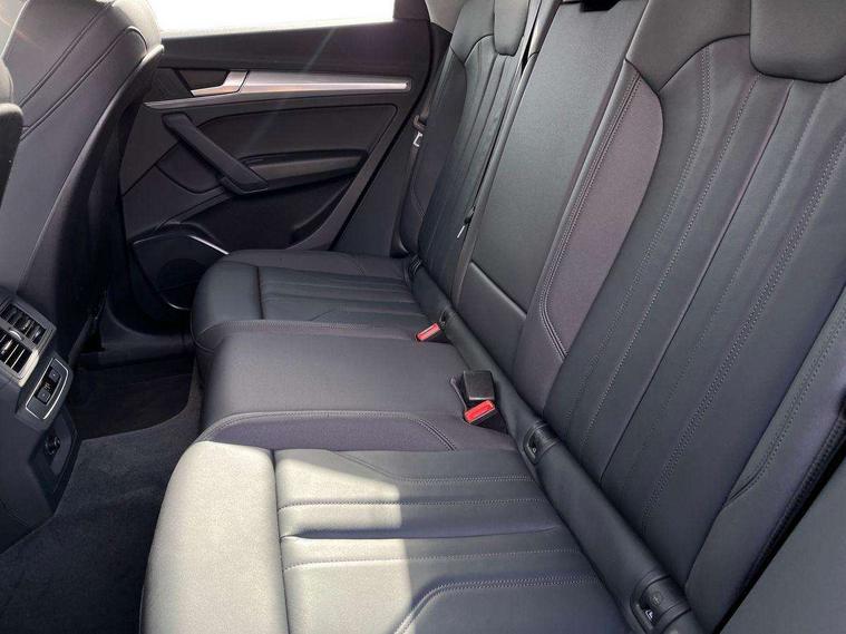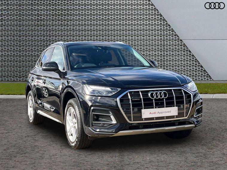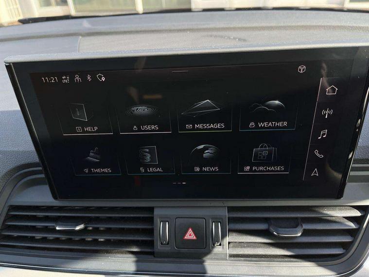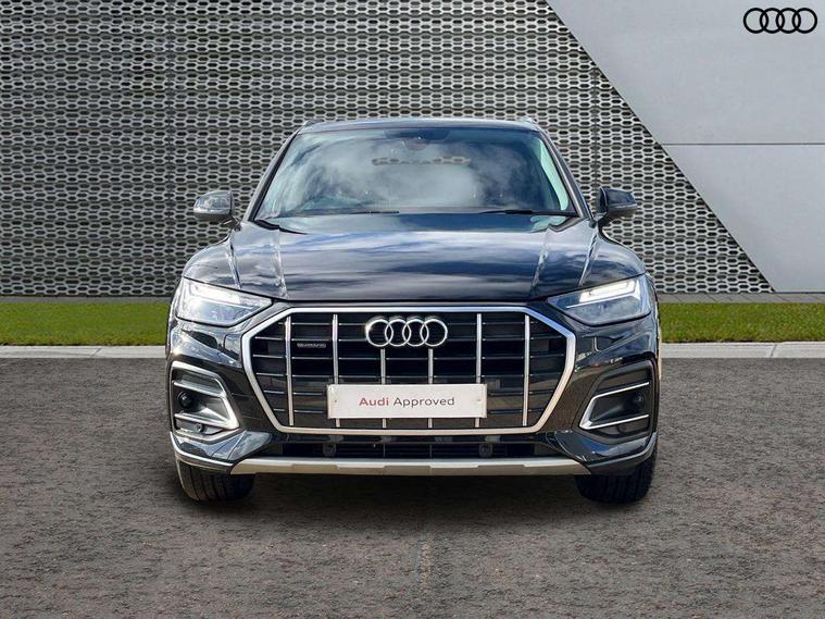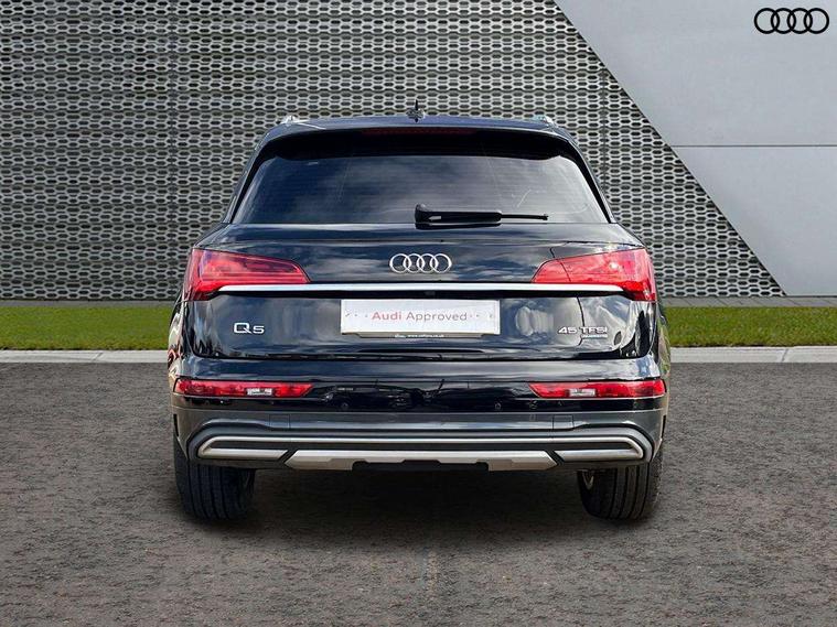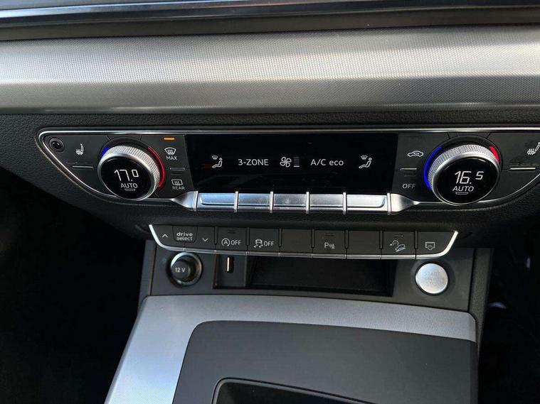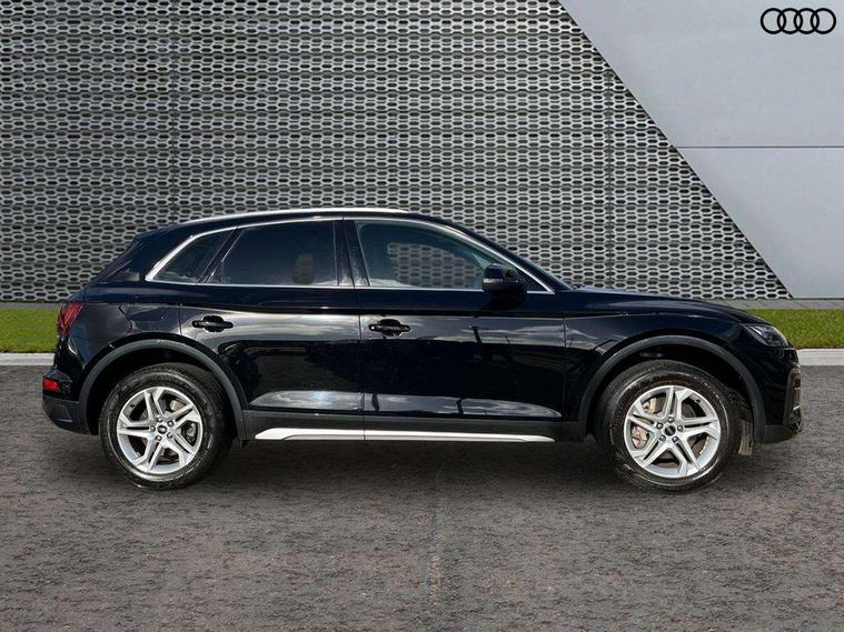 Acoustic front and rear parking sensor, Audi connect safety and service (e-call), Audi drive select, Audi virtual cockpit plus with 12.3" screen and three different layout designs, Audi wireless smartphone interface, Automatic start-stop system with coasting functionality and efficiency programme, Bluetooth interface, Camera based traffic sign recognition, Electro - mechanical power assisted steering, Lane departure warning, MMI navigation plus with 10.1" touch screen, Power tailgate, Reversing camera, Service interval indicator, Voice control system with Audi hotword activation "Hey Audi", Dynamic suspension, Quattro on demand, 2 x USB charging port with aux input socket, 8 loudspeakers, DAB Digital radio, Acoustic windscreen, Air inlets in matt anthracite black with blades in matt aluminium silver, Aluminium roof rails, Auto dimming door mirrors, Auto dimming frameless rear view mirror, Automatic headlight adjustment, Automatic headlights and windscreen wipers, Body colour bumpers, Body colour door mirrors, Chrome plated exhaust trims, Daytime running lights, Door sills in Selenite silver, Electric adjustable/heated/folding door mirrors, Front and rear electric windows, LED 3rd brake light, LED headlights and LED tail lights, Loading edge protection in stainless steel, Lower bumpers painted in contrast Manhattan grey, Matt selenite silver underbody protection, Matt twilight grey radiator grille with chrome vertical struts, Rear chrome trim strip below lights, Rear diffuser strip in selenite silver, Rear side wing doors, Rear spoiler, Rear wiper, Roof bars, 3 rear headrests, 3 spoke multifunction leather steering wheel with shift paddles, Comfort front centre armrest, Deluxe 3 zone electronic climate control, Door sills trims with aluminium inlays, Front head restraints, Front sport seats, Front/rear floor mats, Heated front seats, Height/reach adjustable steering column, Luggage compartment cover, Manual seat adjustment with 4-way electric lumbar support, Single front passenger seat, Split folding 3 seater rear seat bench in 3 parts (40/20/40), Sunvisors with vanity mirrors, Twin leather upholstery, High gloss pack - Q5, LED interior light pack - Q5, 3 point seatbelts on all seats, 6 airbags - Driver, front passenger, curtain and side airbags, Attention and drowsiness assist, Electrically operated child locks on rear doors, Electromechanical parking brake, Electronic stabilisation control including ABS, ASR and EDL, First aid kit with warning triangle and vests, Front passenger airbag deactivation, Hill descent control, Hill hold assist, ISOFIX child seat mounting for front passenger seat and ISOFIX child seat mounting with Top Tether for outer rear seats, Multi collision brake assist, Pop-up bonnet for pedestrian protection, Pre sense city, Seatbelt monitoring, Tyre pressure warning, Anti theft alarm, Anti-theft wheel bolts, Remote central locking, Remote control key with SAFELOCK and keyless go, Air vents inserts and centre console in matte black, Aluminium rhombus inlay, Tool kit, Tyre repair kit,
