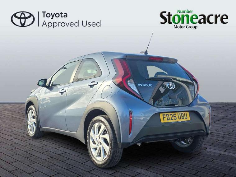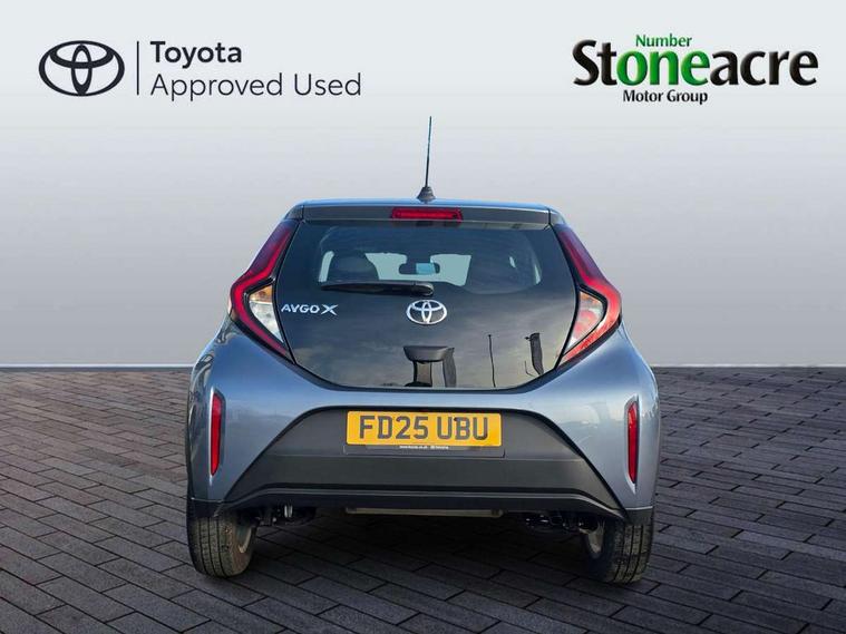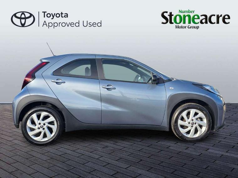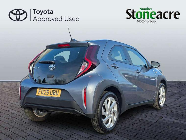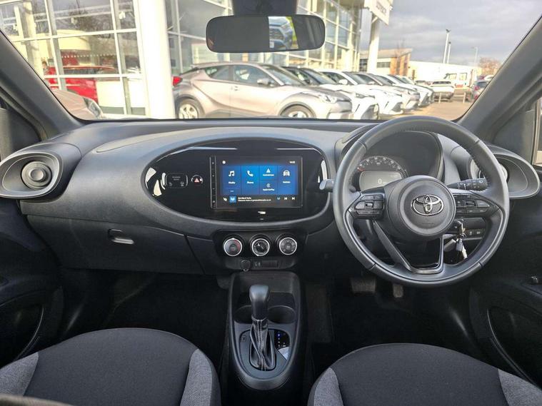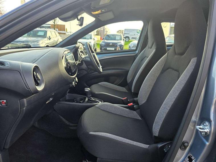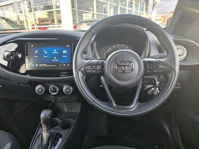 4.2" TFT colour screen, Adjustable speed limiter, Analogue speedometer, Bluetooth connectivity, Digital tachograph, Driver attention alert system, eCall emergency call system, ECO-driving indicator, Electric power steering, Intersection turn assist, Key reminder warning, Noise reduction kit, Pre collision system with emergency steering assist, Reversing camera with static guide lines, Smart phone integration with Apple car play/Android Auto, Speed limit display, Start and stop, Vehicle Stability Control (VSC), 4 speakers, 9" HD multimedia display touch screen with Toyota smart connect, DAB digital audio broadcast, USB connector, Auto headlights, Automatic headlights cut-off, Bicycle towing hook, Black lower front grille, Black rear bumper, Black side protection mouldings, Black upper front grille, Black wheel arch mouldings, Body colour door handles, Body coloured front bumper, Boot door scuff plate, Electric heated door mirrors, Follow me home headlights, Front power windows, Gloss black door mirrors, Headlight cut-off reminder, LED daytime running lights, LED front light guide, LED High mounted stop lamp, Manual day/night rear view mirror, Manual headlight levelling, Pagoda roof, Power adjustable door mirrors, Power back door, Projector halogen headlights, Rain sensor, Rear combination lights LED bulb type, Rear side wing doors, Rear windscreen defogger, Rear windscreen wiper, Short antenna, Variable intermittent windscreen wipers, 12v power outlet - front, 2 seat bench in 2nd row, 3 spoke leather steering wheel, 50/50 split folding rear seat, Adhesive roof headlining, Adjustable speed limiter switch on steering wheel, Audio and telephone switches on steering wheel, Black insert on steering wheel, Boot light, Centre room light, Chrome interior door handles, Chrome surround on air conditioning buttons, Clean air filter, Fabric upholstery, Floor mats, Front and rear cup holders, Front head rest deco art, Front head restraints, Gear shift indicator, Height adjustable driver seat, Intelligent adaptive cruise control switch on steering wheel, ISOFIX child restraint system on rear seats, Lane departure alert switch on steering wheel, Leather gearshift knob, Light grey roof lining, Manual air conditioning, Manual tilt steering wheel, Manually reclining and sliding driver seat, Manually reclining and sliding front passenger seat, Multimedia switches on steering wheel, Pollen filter, Rear door pockets, Rear head restraints, Resin console box storage, Satin silver insert on gear shift knob, Silver stitching on gear shift knob, Single compartment glovebox with lights, Single front passenger seat, Soft tonneau cover, Sun visors with mirror on driver and passenger side, Voice recognition switch on steering wheel, Toyota safety sense pack - Aygo X, Anti lock braking system + Electronic brake force distribution, Child safety door lock, Emergency brake light signal (EBS), Hill start assist control (HAC), Passenger airbag on/off switch, Seat belt reminder for front and rear seats, Supplement restraints system (SRS) - 6 airbags, Traction control, Tyre pressure warning system, Immobiliser, Remote power door locks, Black air vent surround, Black wheel centre caps, Tyre repair kit,