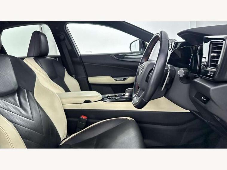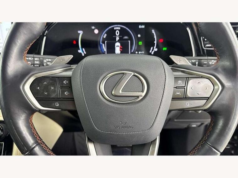 4 driving modes EV/Eco/Normal/Sport, 7" display in instrument binnacle, Blind spot monitoring with rear cross traffic alert, Bluetooth telephone connectivity, eCall emergency system, Electric speed sensitive power steering, Intelligent parking sensors - 4 front and 4 rear, Lane change flasher function, Lexus link connect - Cloud based navigation, cloud based voice assistant, always online and 9.8" VGA touchscreen, Push button starter, Reversing camera with back guidelines, Service interval indicator, Wireless Apple CarPlay and wired Android Auto, Wireless Smartphone charger, 6.6 kW onboard charger, All Wheel Drive (AWD), Hybrid automatic transmission, Vehicle Dynamics Integrated Management (VDIM), Vehicle Stability Control (VSC), 10 speakers, 4 USB ports - 2 front, one USB C, 2 rear USB C, DAB Digital radio, Auto dimming interior rear view mirror, Automatic headlights, Bi LED headlights, Double hidden exhaust pipes, Front and rear one touch power windows, with anti-jam protection, Heated, auto-folding, auto-dimming outside mirrors with reverse tilt function and turn indicators, Illuminated door handles with puddle light, LED brake lights and rear lights with emergency brake signal, LED daytime running lights, LED front fog lights, LED Indicators, Power back door with kick sensor, Privacy glass, rear doors and tailgate, Rain sensor windscreen wipers, Rear side wing doors, Rear wiper, Roof rails, 12V accessory port centre console and luggage compartment, 2 cupholders in front centre console, 2 way electrical lumbar adjustment for driver, 2 x fixed shopping bag hooks in boot, 2 x sun visors with vanity mirror and lamp, 3 seat bench in 2nd row, 4 x tie down hooks in the boot, 6 way manually adjustable front seats, 60/40 split folding rear seat, Adjustable rear seat backrest, Card holder installed in driver and passengers sun visors, Centre armrest with storage box, Dual climate control air conditioning system, Front and rear head restraints, Front and rear textile carpet mats, Front passenger seat, Heated front seats, Heated steering wheel, Leather gear lever, LED interior illumination, Power adjustable leather steering wheel with paddle shifts, Rear centre armrest with 2 cupholders, Tahara leather upholstery, Whiplash Injury Lessening (WIL) feature (active headrest) for seats, 2 x Isofix child rear seat restraints, 3 point ELR front seatbelts with pretensioners, 3x3 point rear seat belts, ABS, Adjustable seat belt anchor points, Driver and front passenger 2 stage airbag, Driver/front passenger side airbags, Drivers knee airbag, E-Latch with safe exit assist, EBD + Brake Assist, ECB (Electronically Controlled Brake System), Electronic parking brake, Front and rear curtain shield airbags, Front center airbag, Front passenger seat cushion airbag, Hill assist control, Lexus safety system - dynamic radar cruise control, pre collision system day and night, lane tracing assist, road sign, automatic high beam, OTA, Manual rear child locks, Passenger airbag cut-off device, Traction control, Tyre pressure warning, 2 x remote key fobs, Anti-theft system with alarm, intrusion sensor, glass breakage sensor, tilt sensor and engine immobiliser, Locking wheel nuts, Smart keyless entry, Speed sensitive auto door locking, Two motion door lock with double lock, VIN Window etching, 3D prism black Inlay, Tyre repair kit,