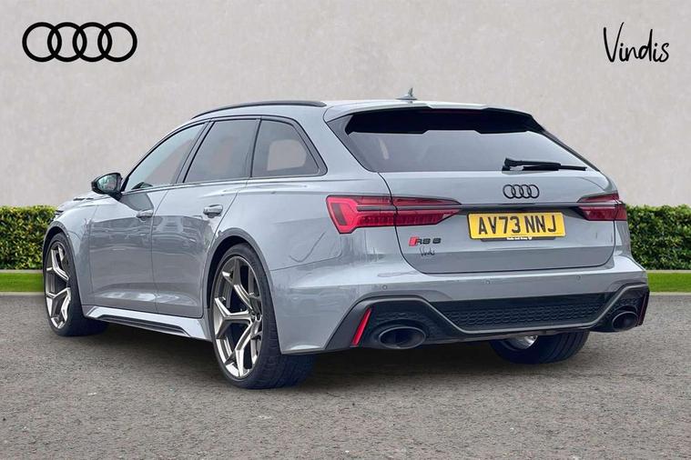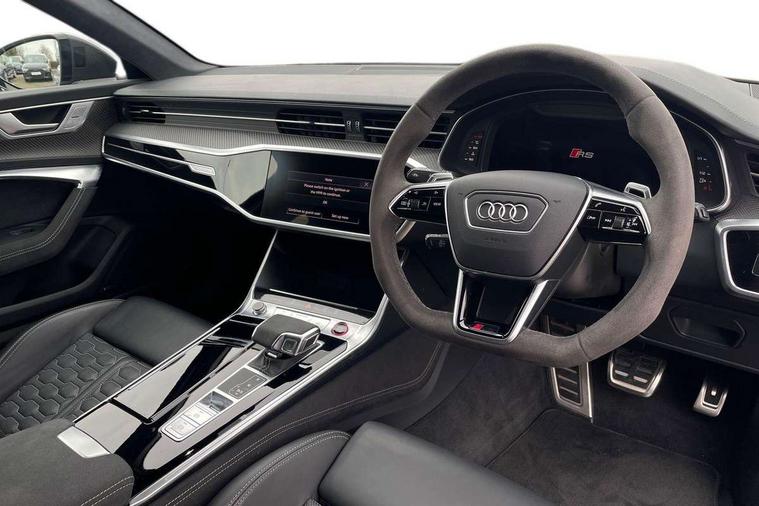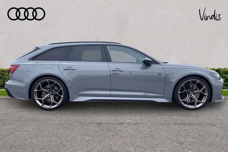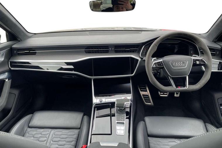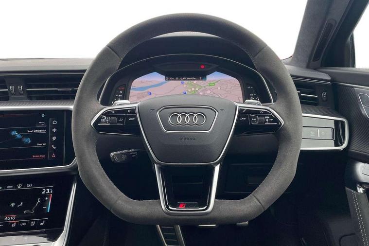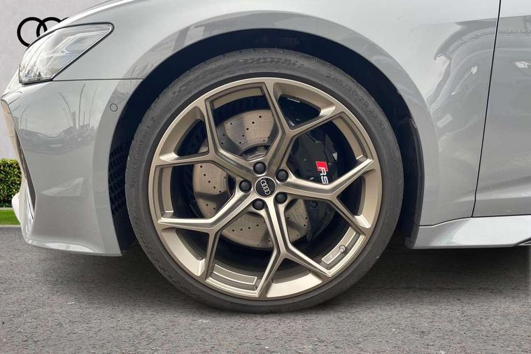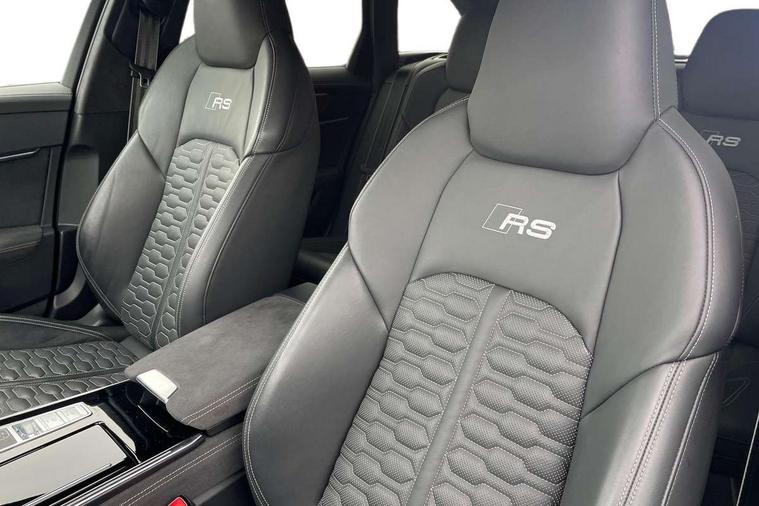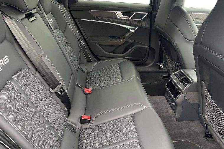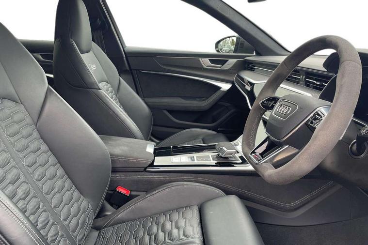 Audi connect safety and service (e-call), Audi connect with Amazon Alexa Integration, Audi drive select with 2 configurable RS modes, Audi smartphone interface with app store includes wireless Apple carplay, Android auto and Amazon alexa integration, Audi virtual cockpit plus with RS specific design and 12.3" display with additional graphic display options, Automatic start/stop system, Bluetooth interface, Dynamic all wheel steering, Head up Display, Lane departure warning system, MMI navigation with MMI touch + twin touch screens 10.1" and 8.6" with haptic and acoustic feedback, Night vision assistant, Operating buttons in black, glass look with haptic feedback including extended aluminium look, Power door closure, Power operated tailgate, Service interval indicator, Surround view camera system, Voice control system, 48V Mild hybrid technology, 73 litre fuel tank, Increased top speed to 174mph, Quattro sports differential, RS Sports suspension plus with dynamic ride control, 2 USB-C ports with charging functionality in the rear, Audi music interface, Bang & Olufsen 3D Premium Sound System, DAB Digital radio, 3rd brake light, Adaptive windscreen wipers with integrated washer jets, Black window trims, Electric front/rear windows, Electrically adjustable, heated and folding door mirrors with integrated LED indicators and kerb view function for passenger side, Frameless auto dimming interior rear view mirror, HD Matrix LED headlights with Audi laser light with dynamic light design and dynamic turn signal, Headlight washers, Heat insulating darkened glass in side and rear windows, LED daytime running lights, LED rear combination lamps with dynamic light design and dynamic turn signal, Panoramic glass sunroof, Privacy glass with rear/side windows and acoustic glazing side windows, Radiator grille in honeycomb structure, large front air inlets and rear diffuser in gloss black, Rain and light sensors, Rear side wing doors, Rear wiper, RS front bumper with air inlets on both side, RS rear spoiler in body colour, RS sports exhaust system with high gloss black oval tailpipe trims, 3 seat bench in 2nd row, 4 way electric lumbar support for driver and front passenger, 4 zone deluxe automatic climate control, Audi phone box light, Electric steering wheel adjustment, Electrically adjustable front seats with driver memory, Entry LED with RS Performance projection (Audi Beam) in front and rear, Front and rear headrests, Front centre armrest, Front seat ventilation, Heated front and rear seats, Illuminated front and rear door sill trims with aluminium inlays and RS6 logo, ISOFIX and Top Tether child seat mounting for the outer rear seats, ISOFIX child seat mounting and Top Tether with front passenger airbag deactivation, RS sports seat plus, Single passenger seat, Stainless steel pedals and foot rest, Valcona leather upholstery with perforated honeycomb and coloured RS logo, Air quality pack - RS6, Ambient lighting pack plus - RS6, City assist pack - RS6 Performance/carbon/vorsprung, Park assist pack with park assist plus - RS6, Storage pack - RS6, Tour pack - RS6 Performance/carbon/vorsprung, 3 point rear seatbelts, Airbags - Front side, front and rear including head, Direct tyre pressure monitoring system, EBD - Electronic brakeforce distribution, Electromechanical parking brake, Electronic Stability Control (ESC) including ABS, ASR and EDL, Extended pedestrian protection measures, Manual child lock in rear doors, Rear side airbags, Warning triangle and first aid kit, Anti theft alarm with tow away protection, Immobiliser, Keyless Go, Remote central locking, Performance tyres, Tyre repair kit,