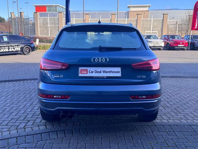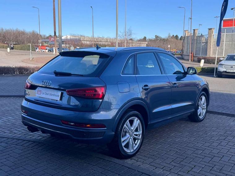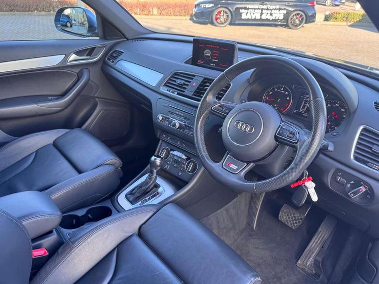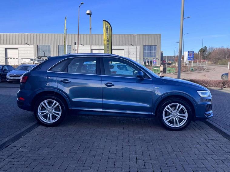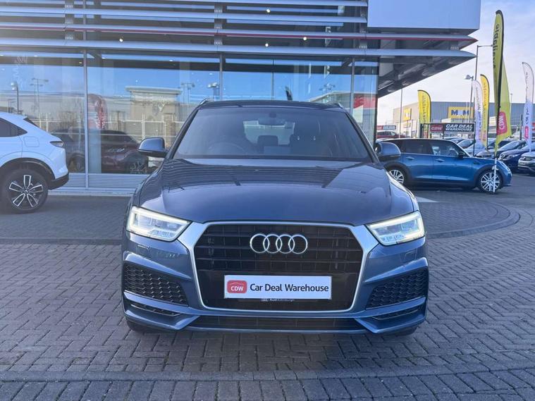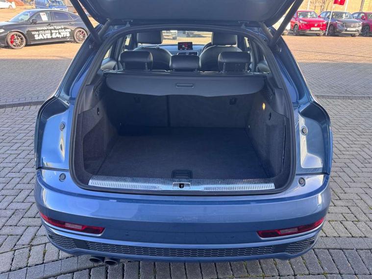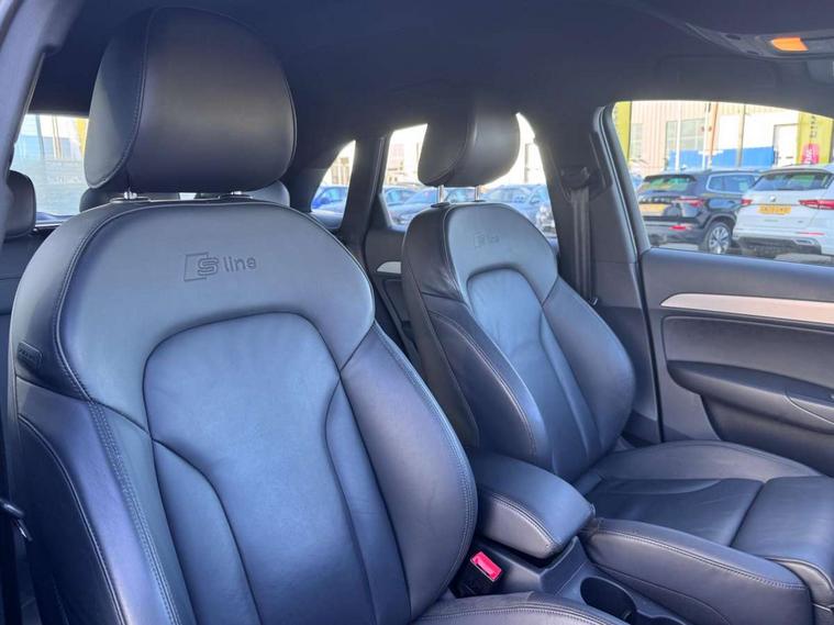 6.5" colour display screen, Audi drive select, Cruise control, Electro-mechanical PAS, Low washer fluid indicator, MMI - Multi Media Interface control system, On board computer, Remote electric boot opening/closing, Service interval indicator, Voice control system, Dynamic suspension, Audi music interface, DAB digital radio module, Acoustic windscreen, Aluminium window surround, Auto dimming rear view mirror, Body colour door mirrors, Body coloured bumpers, Chrome exhaust tailpipe, Coming home function, Door mirror integrated indicators, Front and rear electric windows, Front fog lights, Front lip spoiler, Heated windscreen washer jets, LED daytime running lights, LED headlights with headlight washers, LED rear lights, Light and rain sensor for auto activation of lights and windscreen wipers, Loading sill protector in stainless steel, Rear diffuser with platinum insert, Rear wiper, S Line body styling, Sunband for windscreen, 12V socket in rear centre console, 3 spoke multi-function Q design steering wheel with paddle shift, Aluminium door sill trims, Black cloth headlining, Door sill trim strips, Dual zone climate control, Electric front lumbar adjustment, Front and rear headrests, Front and rear velour floor mats, Front centre armrest with storage compartment and angle adjustment, Front sports seats, Height/reach adjust steering wheel, ISOFIX on front passenger and rear outer seats, Jack and tool kit, Perforated leather gearknob, Retractable luggage cover, Split fold rear seat, Storage compartment and 12V socket, Under floor storage in luggage area, 3x3 point rear seatbelts, ABS+Electronic Brake force Distribution, Curtain airbags, Driver and passenger airbags, Driver and passenger side airbags, EDL + ASR, Electrically operated child locks on rear doors, Electromechanical parking brake, ESP, First aid kit, Front passenger airbag deactivation, Head airbags, Seatbelt warning light, Tyre pressure monitoring system, Warning triangle, Locking wheel bolts, Remote central locking, Thatcham category 1 alarm + immobiliser, Matt brushed aluminium fascia and door trim inlays,