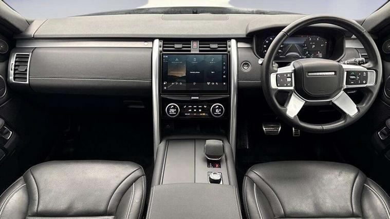 11.4" touchscreen, 3D surround camera, Adaptive cruise control, Android Auto, Apple car play, Blind spot assist, Driver condition monitor, Electric power assisted steering (EPAS), Emergency services call system, Front and rear parking aid, Interactive driver display, Lane keep assist, Power inner tailgate, Power tailgate/boot lid, Push button start, Rear collision monitor, Rear traffic monitor, Remote, Remote boot release, Service interval indicator, Speed proportional steering, Sportshift selector, Stop/start system, Traffic sign recognition with adaptive speed limiter, Trip computer, Wade Sensing, Adaptive dynamics, Dynamic stability control, Electronic air suspension, Front axle open differential, Digital Audio Broadcast radio-DAB, Dynamic volume control, Pivi pro connected, USB/aux input socket, Acoustic laminated windscreen, Animated directional indicators, Auto dimming interior rear view mirror, Automatic headlight levelling, Automatic headlights, Body colour bumpers, Body colour door handles, Centre high mounted stop light, D300 badge, Electric heated/power fold memory door mirrors with approach lights and auto dimming driver side, Electric windows with one touch open/close and anti-trap, Heated rear window, Heated windscreen, LED darkend tail lights, Matrix LED headlights with signature DRL, Narvik black Discovery script, Privacy glass, Puddle lights, Rain sensing windscreen wipers, Rear fog lights, Rear side wing doors, Rear wash/wipe, Trailer stability assist, Variable intermittent wiper, 12V power sockets, 12V USB charging socket in loadspace, 2 seat bench in 3rd row, 3 seat bench in 2nd row, 60/40 electric heated folding rear seats with manual slide and powered recline, centre headrest and armrest, Central hinged twin lidded storage, Configurable cabin lighting, Ebony morzine headlining, Electric adjustable steering column, First and second row door bins, Footwell lights, Front and rear 12V with front USB, Front passenger seat isofix location point, In-facia storage, Isofix child seat preparation for front passenger seat, Leather steering wheel, Loadspace cover, Loadspace Hook, Loadspace light, Lockable glovebox, Lower centre console storage, Luggage tie downs in loadspace, Multi function steering wheel, Overhead lighting console, Premium carpet mats, Rear ISOFIX, Shopping bag hook, Single front passenger seat, Storage glovebox, Sunvisors with illuminated vanity mirrors, Third row storage, Treadplates with metal inserts, Twin front cupholders with cover, USB with 12V socket in centre console, Black exterior pack - Discovery Dynamic SE/HSE, Online pack with data plan - Discovery, 3x3 point rear seatbelts, Anti-lock braking system (ABS), Brake pre-fill technology, Cornering brake control, Curtain airbags, Customer configurable autolock, Driver and passenger airbags, EBD - Electronic brakeforce distribution, Electronic traction control, Emergency brake assist, Emergency braking, ESP, Front side airbags, Gradient acceleration control, Hill descent control, Hill launch assist, Power operated child locks, Rear airbags, Roll stability control, Seat belt reminder, Torque vectoring brake, Tyre pressure monitoring system, Immobiliser, Intrusion sensor, Keyless entry, Locking wheel nuts, Remote central locking, All terrain tyres,