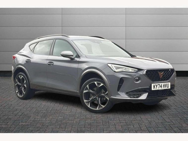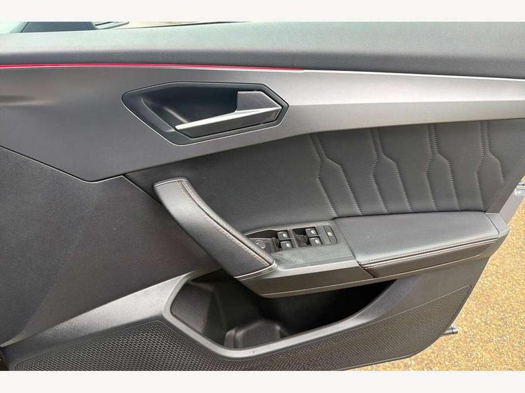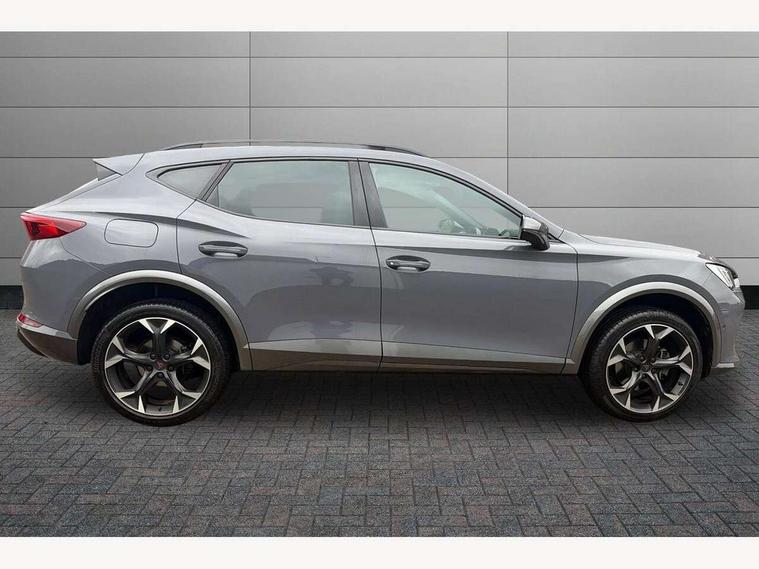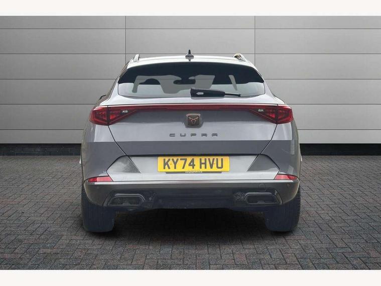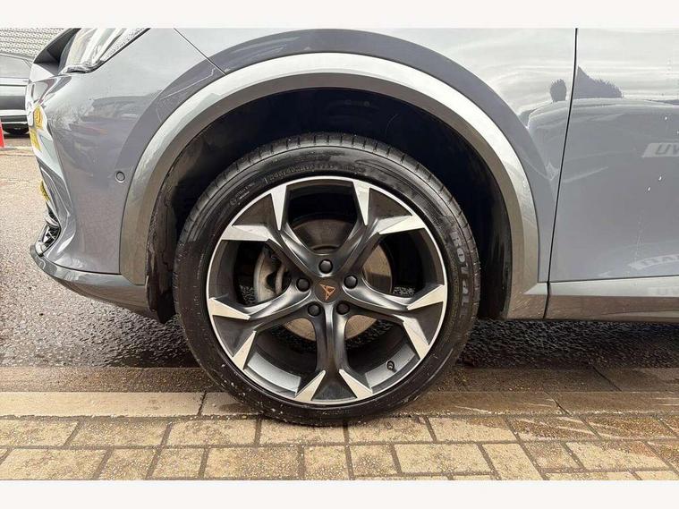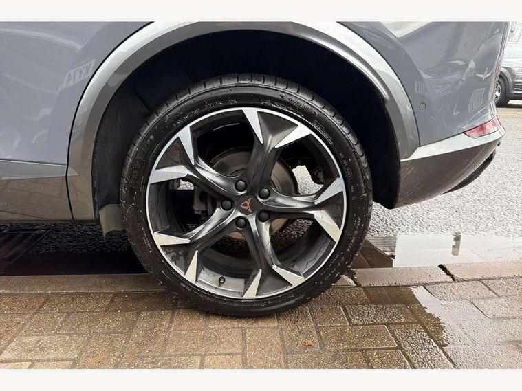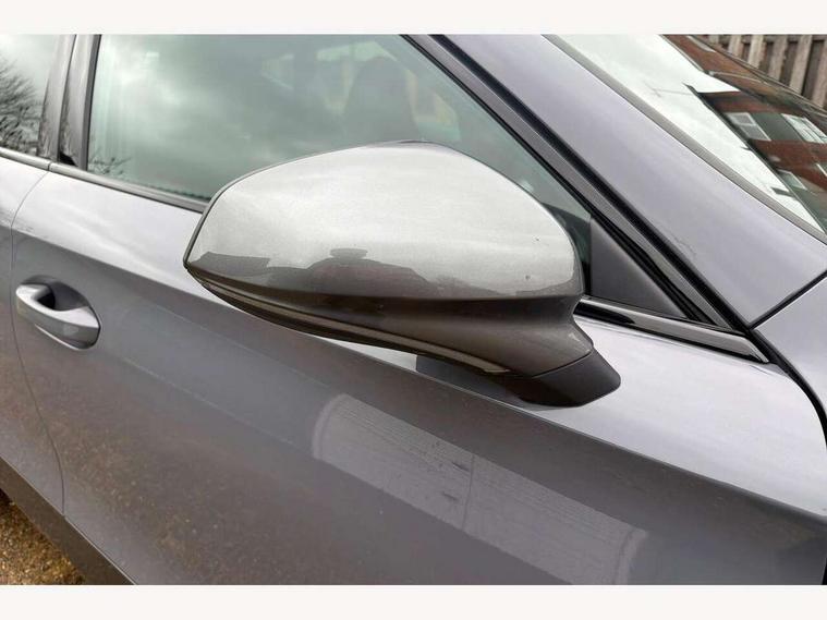 Digital cockpit and configurable dashboard, Driver alert system, Driving profile selection, Forward collision warning with automatic braking, Lane assist, Navigation system with 12'' Touchscreen Display, Park assist (inc front/rear parking sensors), PAS, Predictive adaptive cruise control with speed limiter, Rear view camera, RPM, trip computer, outside temp gauge, instrument light brightness, low fuel warning light, lights on reminder, gearshift indicator, Service interval indicator, Start/stop system with regenerative braking, Voice control system, Wired Android Auto, Wireless apple carplay, Wireless phone charger, Electronic locking differential and dynamic traction support, Standard suspension, 2 front and 2 rear USB type C sockets, Auxiliary input socket, DAB radio, Auto dimming rear view mirror, Body colour door handles, Body coloured bumpers, Dark grey wing mirror, Daytime running light with automatic headlight control and coming home feature, Dynamic headlight range control, Electric front/rear windows, Electrically adjustable heated and folding door mirrors with memory function, Front fog lamps with cornering function, Gloss black roof rails and window surrounds, LED Headlights, LED Taillights with dynamic indicator, Rain sensing wipers, Rear diffuser with black simulated exhaust pipes, Rear side wing doors, Rear wash/wipe, Third brake light, Tinted rear windows, Welcome lights, 12v power supply in centre console, 12V socket, 12v socket in loadspace, 2 front and 2 rear reading lights, 230V socket, 3 seat bench in 2nd row, 60/40 split rear bench seat with armrest and mechanical seat release, Black headlining, Dust/pollen filter, Front and rear head restraints, Front centre armrest, Height/reach adjust steering wheel, Illuminated interior front door sills, Illuminated sunvisor with mirror, Isofix, Leather multi function heated steering wheel with gear shift paddles, Luggage tie-down hooks, Single front passenger seat, Three zone climate control with control panel in rear, Variable luggage/load compartment floor, Wraparound lighting, Genuine Nappa leather Pack - Cupra, 3 point seatbelts on all rear seats, ABS, Brake control system - ESC and brake booster, Child proof door locks, Driver and front passenger airbags with front passenger airbag de-activation, Electronic parking brake, Front and rear disc brakes, Front side curtain airbags, Hill hold control, Public e-call, Seat belt reminder for front and rear seats, Tyre pressure monitoring system, Anti theft alarm system, Keyless entry and start system (KESSY), Locking wheel bolts, Copper and aluminium interior detailing, 19" 'Exclusive' machined sport matte black and silver alloy wheels,