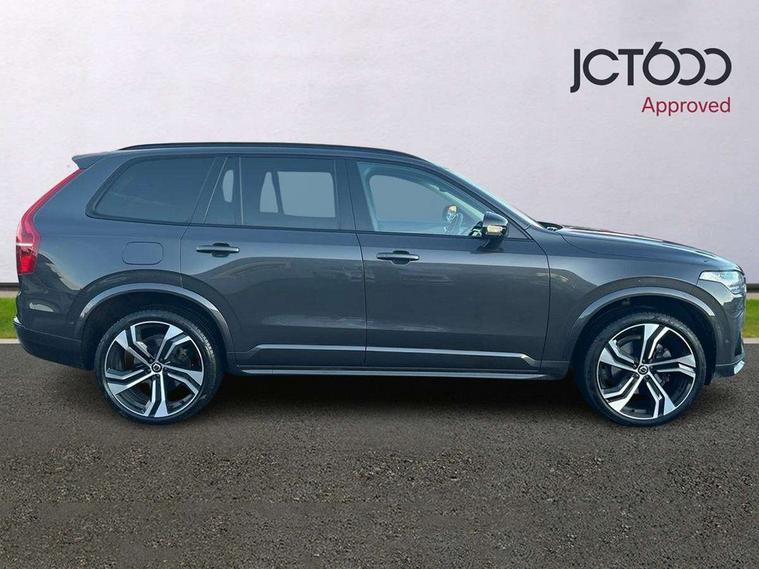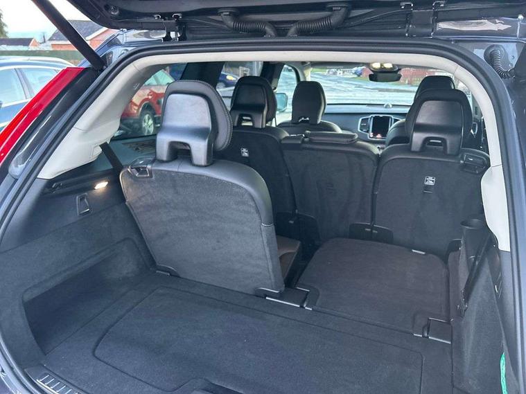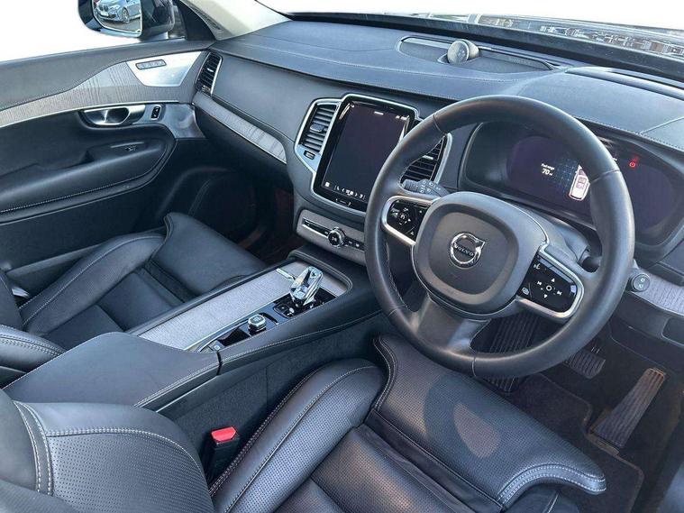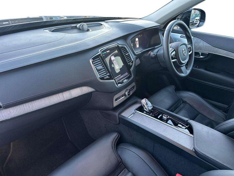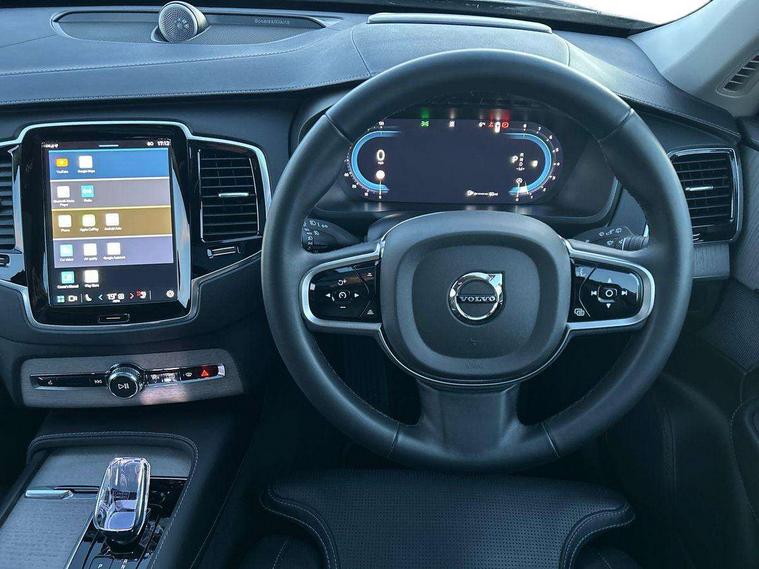12.3" Progressive Driver Display, 360 degree surround view parking camera with side proximity sensors, 9" centre console portrait touch screen, Adjustable steering wheel force, Bluetooth hands free telephone connection, Driver alert control with lane keeping aid, Driver assistance (pilot assist and adaptive cruise control), Driver awareness - Blind spot information system with steer assist, cross traffic alert with autobrake and rear collision warning and mitigation, Emergency call service, Front and rear park assist, Google Automotive Services - Navigation with Voice recoginition and google assistant, Handsfree power tailgate opening and closing, Oncoming Lane Mitigation, Power operated tailgate, Service interval indicator, Speed limiter, Speed sensitive steering, Trip computer, Volvo on call, Wireless Mobile Phone Charger, 8 speed automatic transmission with start/stop + manual change functions, Active four C chassis - four corner adaptive dampers with electronic air suspension, DAB Radio (Digital Audio Broadcasting), Premium Sound by Bowers and Wilkins, dirac live, dolby pro logic II surround sound, 18 speakers/1400W output and fresh air subwoofer, Steering wheel remote infotainment controls, Active bending headlights with adaptive shadow technology, Adaptive brake lights with high level LED brake lights, Auto dimming interior + exterior mirrors, Auto folding and heated power door mirrors, Automatic headlight levelling system, Automatic LED Headlights + Active high beam incorporating daytime running lights, Body colour bumpers, Dark tinted windows - rear side windows and rear screen, Front and rear power windows, Headlight cleaning system, High gloss black door mirrors and window surround, High gloss black front and rear bumper deco, High gloss black mesh front grille with surround, Home safe and approach lighting, Integrated roof rails in high gloss black, LED front fog lights with cornering light function, Power glass tilt and slide panoramic sunroof with sun curtain, Puddle lights, Rain sensor with automatic windscreen wiper activation, Rear side wing doors, Rear wash/wipe with intermittent wipe setting, Roof antenna, Roof spoiler, Visible VIN plate, 12V socket front tunnel console, rear passenger compartment and cargo area, 2 seat bench in 3rd row, 2nd Row centre armrest with and cupholders, 3 seat bench in 2nd row, 4 zone electronic climate control with Clean zone air quality system + pollen filter, A-pillar parking ticket holder, Advanced interior air cleaner PM2.5, Air conditioning for 3rd row of seats, Ambient door and instrument panel lighting, B Pillar ventilation, Bright metal luggage threshold, Centre console cupholders and storage, Floor mats, Front and rear door pocket and front cupholder illumination, Front and rear reading lights, Theatre lighting and centre armrest storage illumination, Front footwell and side step illumination, Front headrests, Front seat cushion extensions, Heated front seats, Heated rear seats, Heated steering wheel, Height/reach adjustable steering column, Illuminated front and rear tread plates, Illuminated luggage compartment, Illuminated tailgate, Illuminated vanity mirrors + ticket holder, Illumination lockable glovebox compartment, Integrated sun curtains in rear doors, Isofix outer rear child seat preparation in 2nd row, Load protection net, Luggage compartment divider with grocery bag holder, Outboard armrest with cupholder and storage for third row passengers, Power driver seat with multi directional lumbar support and memory for seat and exterior mirrors, Power folding 2nd row headrests, Power passenger seat with multi directional lumbar support and memory, Rear footwell and side step illumination, Rear headrests, Semi automatic load cover, Single front passenger seat, Underfloor luggage compartment storage, 7 three point seatbelts, City safety with steering support includes pedestrian, cyclist and large animal detection and front collision warning with full auto brake, Drivers knee airbag, Dual stage driver/passenger airbags, First aid kit, Front seats SIPS airbags, Hill descent control - off drive mode, Hill start assist, IC (Inflatable Curtains) - Full Length, Passenger airbag cut-off switch, Power child locks on rear doors, Power parking brake with auto hold function, Road sign information display, Run off Road Mitigation, Run off Road Protection, Seatbelt reminder and pretensioners for all seats, SIPS (Side Impact Protection System), Slippery road and hazard light alert, Stability and Traction Control with Spin control, Engine Drag Control and Corner Traction Control, Tyre pressure monitoring system, Vehicle deceleration control with Anti-lock Brake System, Electronic Brake Distribution and Emergency Brake Assist, Warning triangle, WHIPS whiplash protection system - front, Anti-theft alarm including immobiliser/volume sensor + level sensor, Care key with user defined top speed, Key integrated remote control central locking + fuel flap with deadlocking system and auto open/close power windows, Keyless drive includes keyless entry and keyless start, Locking wheel nuts, Private locking for glovebox and tailgate, Tailored Instrument Panel and Door Tops with Contrast Stitching, Tempa spare wheel and jack,