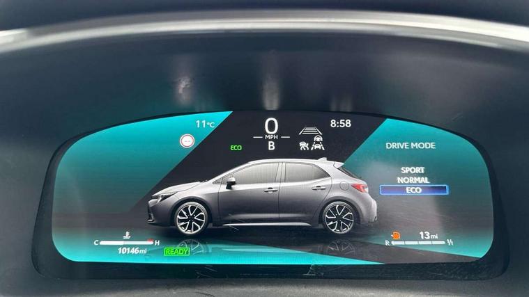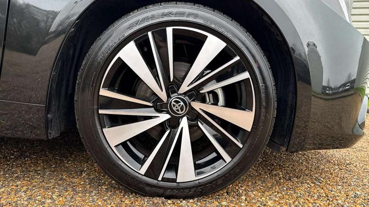 10.5" Multimedia display screen, Bluetooth telephone connectivity, Connected car functionality upgrade, tracker, remote status and e-care, Drive mode select (Eco, Normal), E-call, Electrically assisted power steering, EV drive indicator, Front and rear parking sensors, Full Digital 12.3" TFT Digital Combimeter, Intelligent clearance sonar, Key reminder warning, Lane Departure Alert (LDA) switch on steering wheel, Memory on adjustable speed limiter, MyT connected services, Proactive driving assist (PDA), Reversing camera, Smart entry and push button start, Smartphone integration with Apple CarPlay and wired android auto, Tailgate, Toyota remote services, Toyota smart connect navigation, Wireless charger, Gasoline particulate filter, Vehicle Stability Control (VSC), 6 speakers, AM/FM radio, DAB Digital radio, Front USB-C in dashboard, Smart voice assist/ Voice recognition, USB and Aux in connectors + 12V front outlet, Anti-jam protection on power windows, Auto up and down function on all power windows, Automatic folding mirrors, Automatic headlights with high beam assist, Black centre and side air vents, Black metallic meshed front grille, Black toyota logo in front, Body coloured bumpers, Body coloured door mirrors, Body coloured front spoiler, Body coloured outside door handles, COROLLA alloy door scuff plates, Electrochromatic mirror, Follow me home headlights, LED daytime running lights, LED dual beam projector headlights, LED front fog lights, LED High mounted stop light, LED rear combi lights with LED lightguide, Manual headlight levelling system, New grille pattern, Noise reduction layer on windscreen, Piano black diffuser, Power adjustable heated door mirrors, Power front windows, Power rear windows, Privacy glass with UV filter, Rain sensing wipers, Rear bumper decoration with chrome plated inserts, Rear side wing doors, Rear under guard with chrome ornament, Rear window defogger, Rear window wiper, Reverse tilting door mirrors, Roof spoiler, Satin chrome insert on front air vents, Satin chrome insert on front door assist grips, Shark fin antenna, Tailgate release with push button, Time adjustment on intermittent wiper, Turning signal integrated indicators in door mirrors, Unique lower skirt, Unique side rocker with black insert, UV-filter on driver and passenger windows, 2 Shopping bag hooks in luggage compartment, 3 rear headrests, 3 seat bench in 2nd row, 3 spoke steering wheel with satin insert, 4 tie down hooks in luggage compartment, 60/40 split folding rear seat, Adaptive cruise control (ACC) switch on steering wheel, Adjustable speed limiter switch on steering wheel, Audio, multimedia and telephone switches on steering wheel, Black armrest on centre console box, Black gear shift console, Boot light, Centre room light, Driver and front passenger personal light, Driver and passenger assist grip, Driver and passenger sun visor with mirror and light, Dual zone automatic air conditioning with ECO mode switch, Electric lumbar support for passenger, Fabric upholstery, Front and rear cup and bottle holders, Front door pockets, Front head restraints, Front passenger seat, Front sliding synthetic leather armrest, Gear knob, Heated front seats, Illuminated entry system in room lamp, ISOFIX seat fixing (2 fixings on rear outer seats), Leather gear shift with satin chrome on gear shift console, Manual height adjustable for driver and front passenger seat, Manually tilt with sliding driver and front passenger seat, Nanoe-X air purifier, Parcel shelf, Passenger seat back pocket, Pollen filter, Power adjustable lumbar support on driver seat, Power window switches with satin chrome inserts, Rear armrest with 2 cupholders, Rear passenger coat hooks (2), Remote air conditioning, Satin chrome inside door handles, Satin chrome surround on heater control panel, Satin chrome surround on speedometer, Sliding armrest on centre console box, Slow opening glovebox with lights, Textile floor mats, Tilt/telescopic steering column, Voice recognition switch on steering wheel, Whiplash Injury Lessening (WIL) feature (active headrest) for seats, White ambient lighting on open tray and front cup holder, Toyota safety sense 3 pack - Corolla, 3x3 point rear seatbelts, Adjustable driver and front passenger seat belt extender to top anchor point, Anti lock braking system + Electronic brake force distribution, Brake assist function, Child locks on rear doors, Downhill Assist Control (DAC), Electronic parking brake, Emergency brake light signal (EBS), Front passenger airbag on/off switch, Front seatbelt reminder, HAC - Hill start assist control, Rear seat belt reminder, Seatbelt pretensioners and force limiters, Supplemental restraint system (SRS) 7 airbags - dual driver, dual side curtain, side impact and driver knee airbags, Traction control, Tyre pressure warning system, Acoustic vehicle alert system (AVAS), Alarm with motion sensor and immobilizer, Power passenger window lock, Remote central locking + deadlocks, Satin chrome dash trim, Soft touch texture on upper dashboard, Stitching on lower dashboard, 17" 5 spoke alloy wheels, Tyre repair kit, Unique wheel finish with red wheel cap,