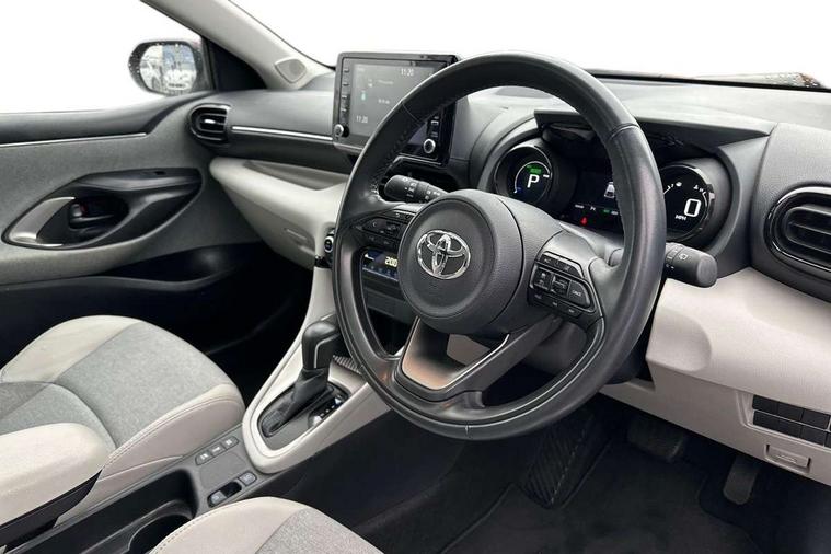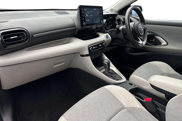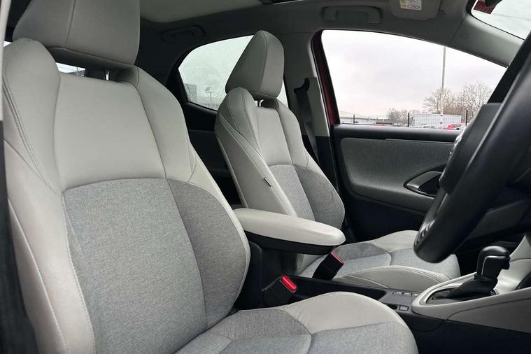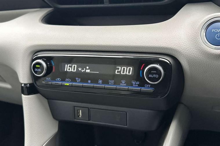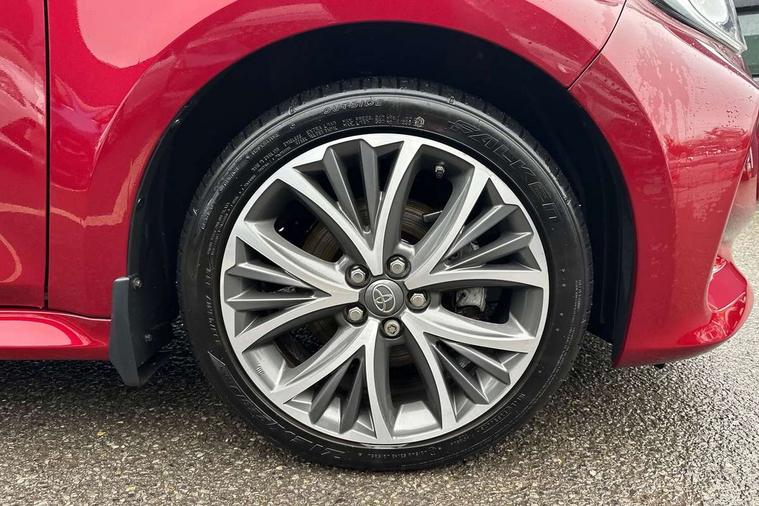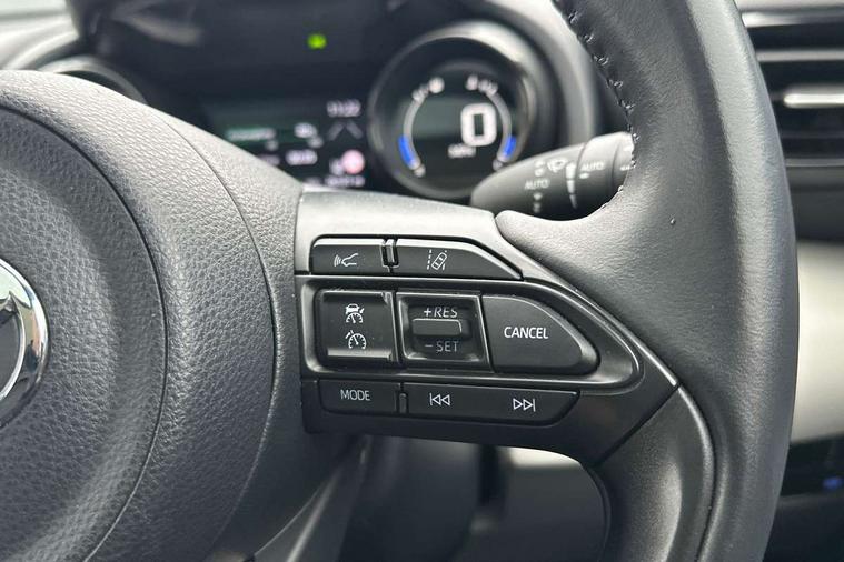 Adaptive cruise control, Adjustable speed limit with speed warning, Blind spot monitoring, Bluetooth connectivity, Colour binocular inspired displays with digital speedometer, E-call, Electric power steering, Front and rear parking sensors with intelligent clearance sonar and automatic braking, Hybrid energy display, Multi information display switches on steering wheel, Reversing camera, Smartphone integration with Apple CarPlay and Android auto, Vehicle Stability Control (VSC), 6 speakers, 8" Multimedia display touch screen, USB connection, Acoustic windscreen glass, Auto windscreen wipers, Automatic headlights, Automatically retractable door mirrors, Body coloured door mirrors, Electric adjustable heated door mirrors, Follow me home headlights, Front auto power windows with anti jam protection, Full LED rear lights, LED daytime running lights, LED front fog lights, LED Headlights, LED High mounted stop lamp, Painted front grille, Rear auto power windows with anti jam protection, Rear privacy glass, Rear spoiler, Satin lower front grille, Shark fin antenna, Turning signal integrated indicators in door mirrors, 3 adjustable rear headrests, 3 spoke leather steering wheel, 60/40 split folding rear seat, Active headrests, Adjustable boot height, Coat hooks in rear grab handles, Cup holders (2 front & door), Data Communication Module (DCM) connected services, Dual zone automatic air conditioning, Fabric seat with partial synthetic leather upholstery, Front armrest, Front sport seats, Glovebox, Height adjustable driver's seat, Height adjustable passenger seat, Isofix seat fixing, Leather gearshift, Map pockets on the backs of the front seats, Pollen filter, Shopping bag hooks, Tilt/telescopic steering column, 3 point seatbelts on all rear seats, ABS+EBD+Brake assist, Electronic parking brake, Emergency brake light system (EBS), Front passenger airbag on/off switch, Front seatbelt reminder, Hill start assist control (HAC), Rear child proof door locks, Rear seat belt reminder, Supplemental Restraint System (SRS) 8 airbags: Driver & passenger's airbags, dual side curtain airbags, side impact airbags, front centre airbag, Toyota Safety Sense 2, Precollison + Night time Pedestrian & Cyclist Detection, Lane Trace Assist, Auto High Beam, Intelligent ACC & Road Sign Assist, Tyre pressure warning system, Alarm/immobiliser, Keyless smart entry with push button start, Remote powered central double locking doors, Satin chrome interior styling, Soft touch instrument panel, Space saver spare wheel,